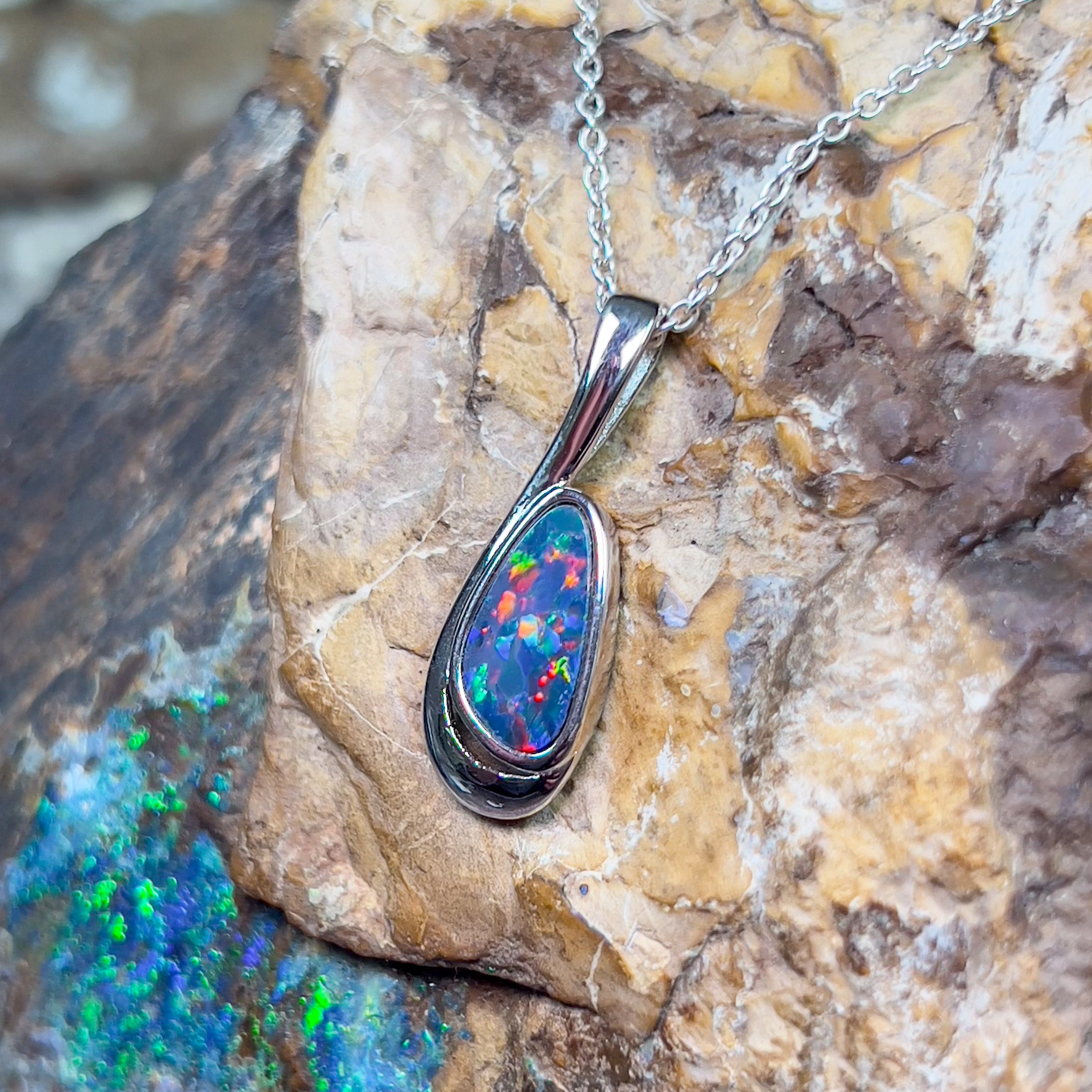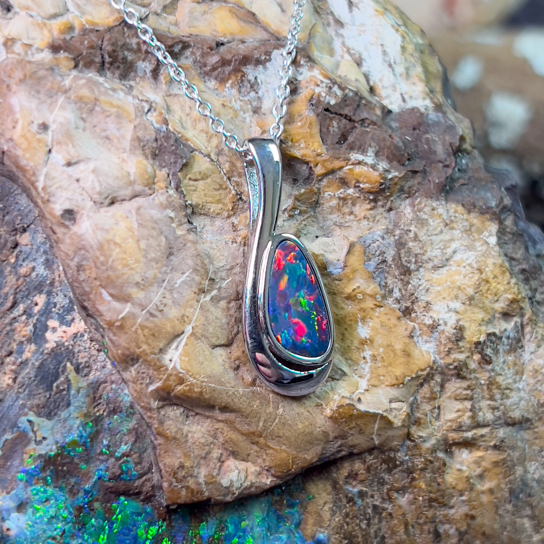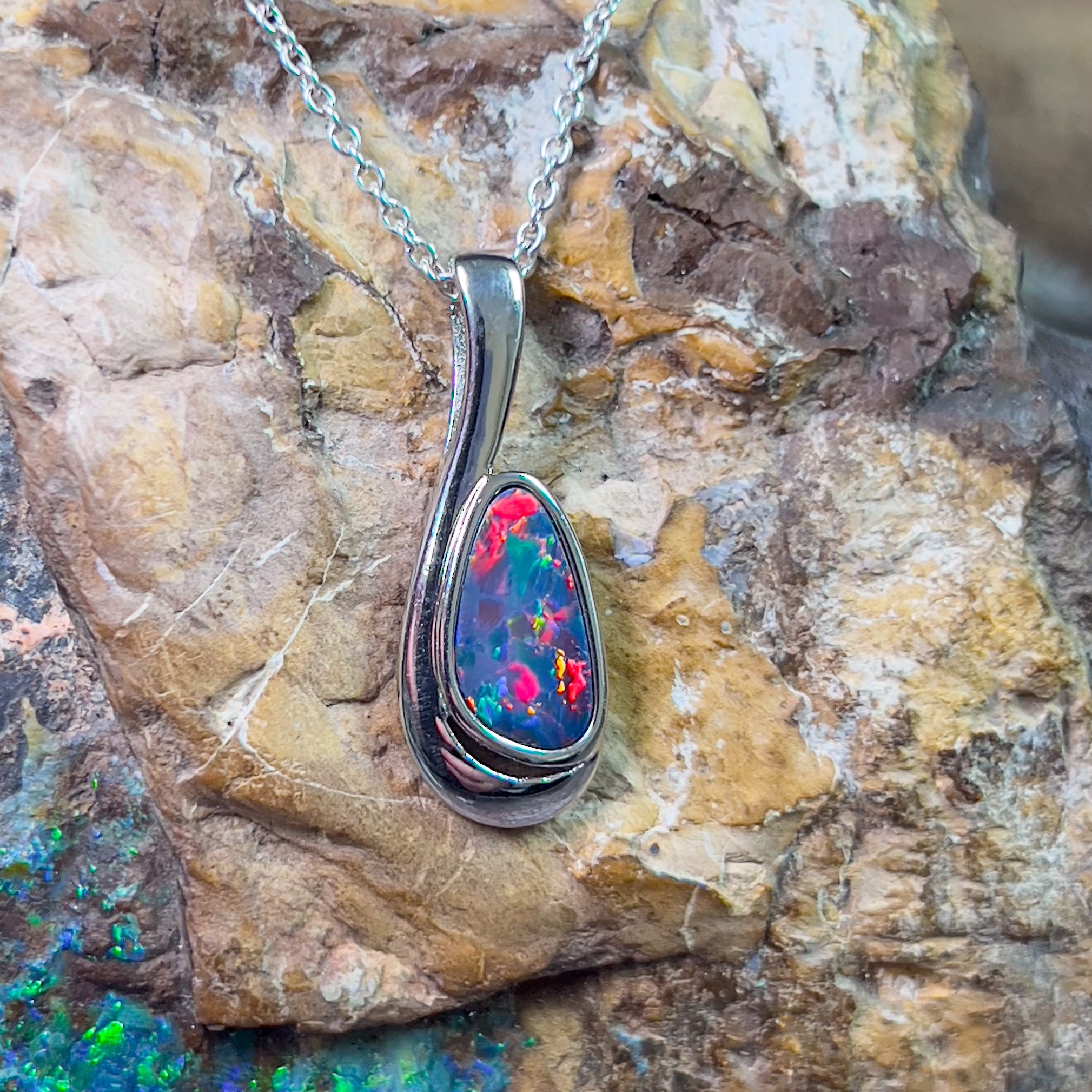 Sterling Silver Opal doublet loop pendant