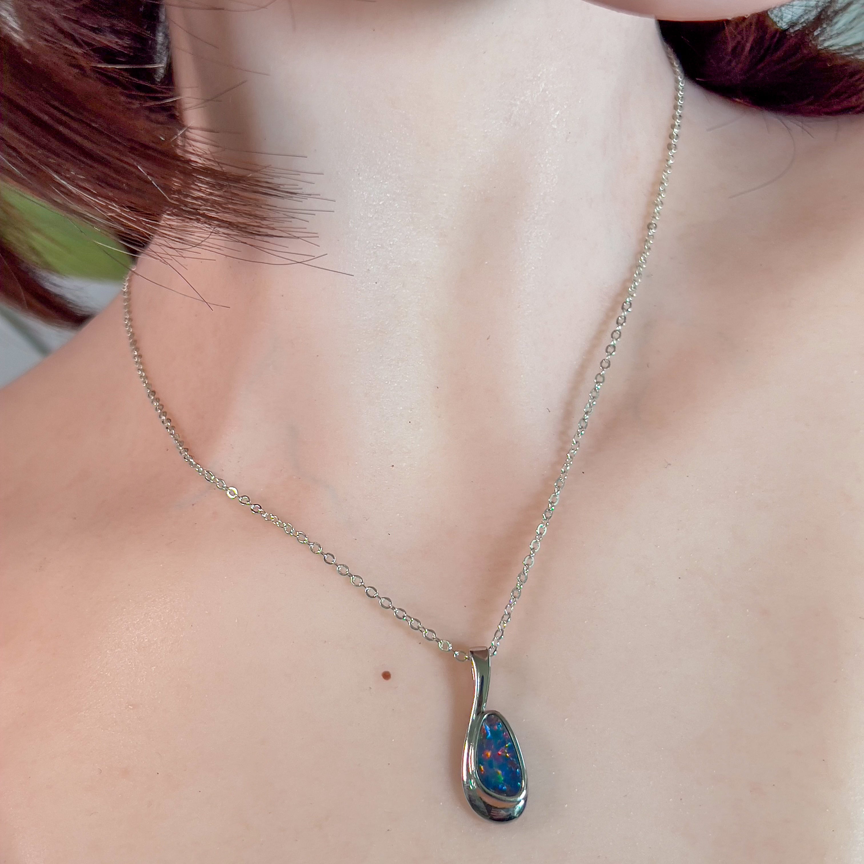 Add a touch of elegance to your outfit with our stunning Sterling Silver Opal doublet loop pendant! The double loop design adds a unique twist to this timeless piece, making it the perfect accessory for any occasion. Elevate your style and make a statement with this beautiful pendant!