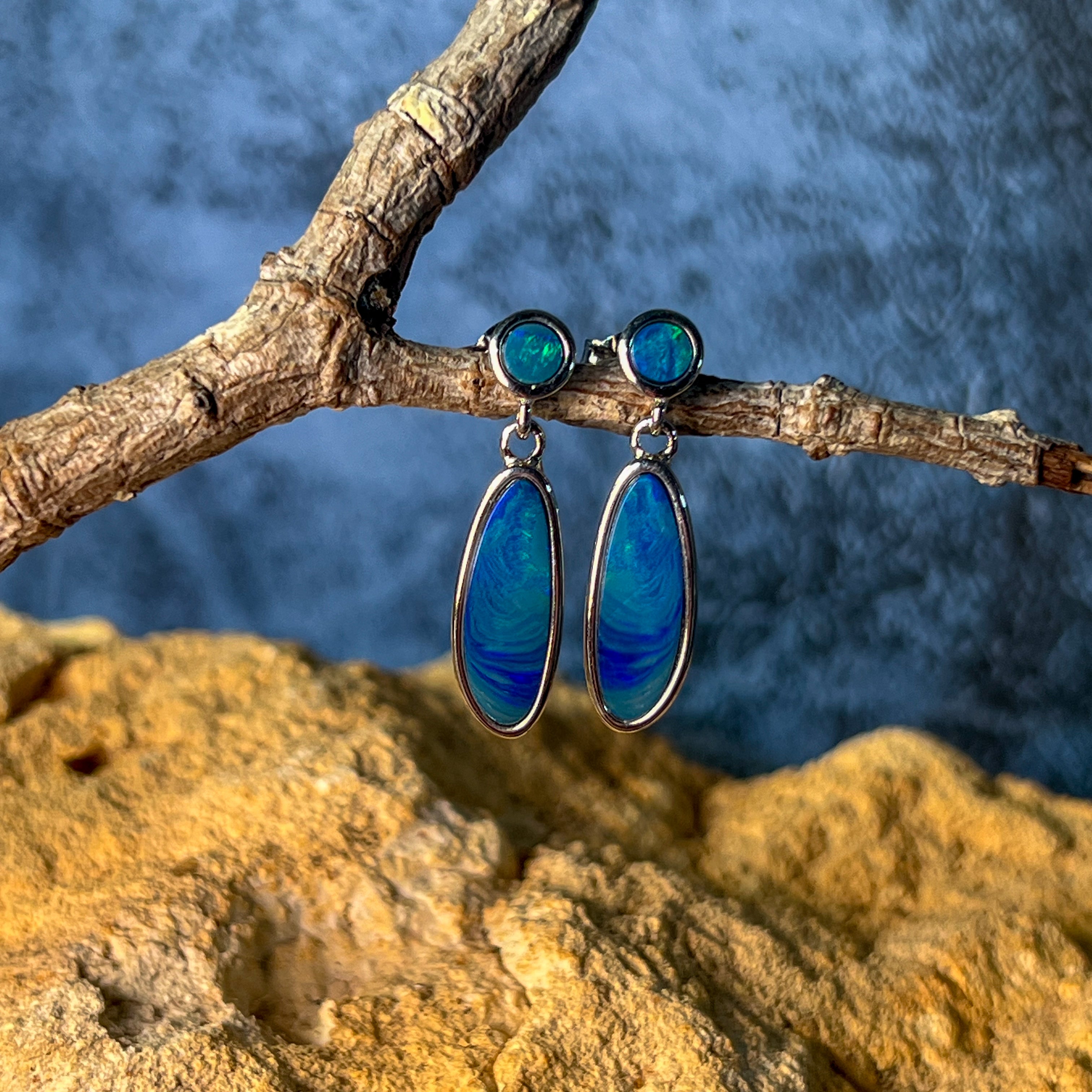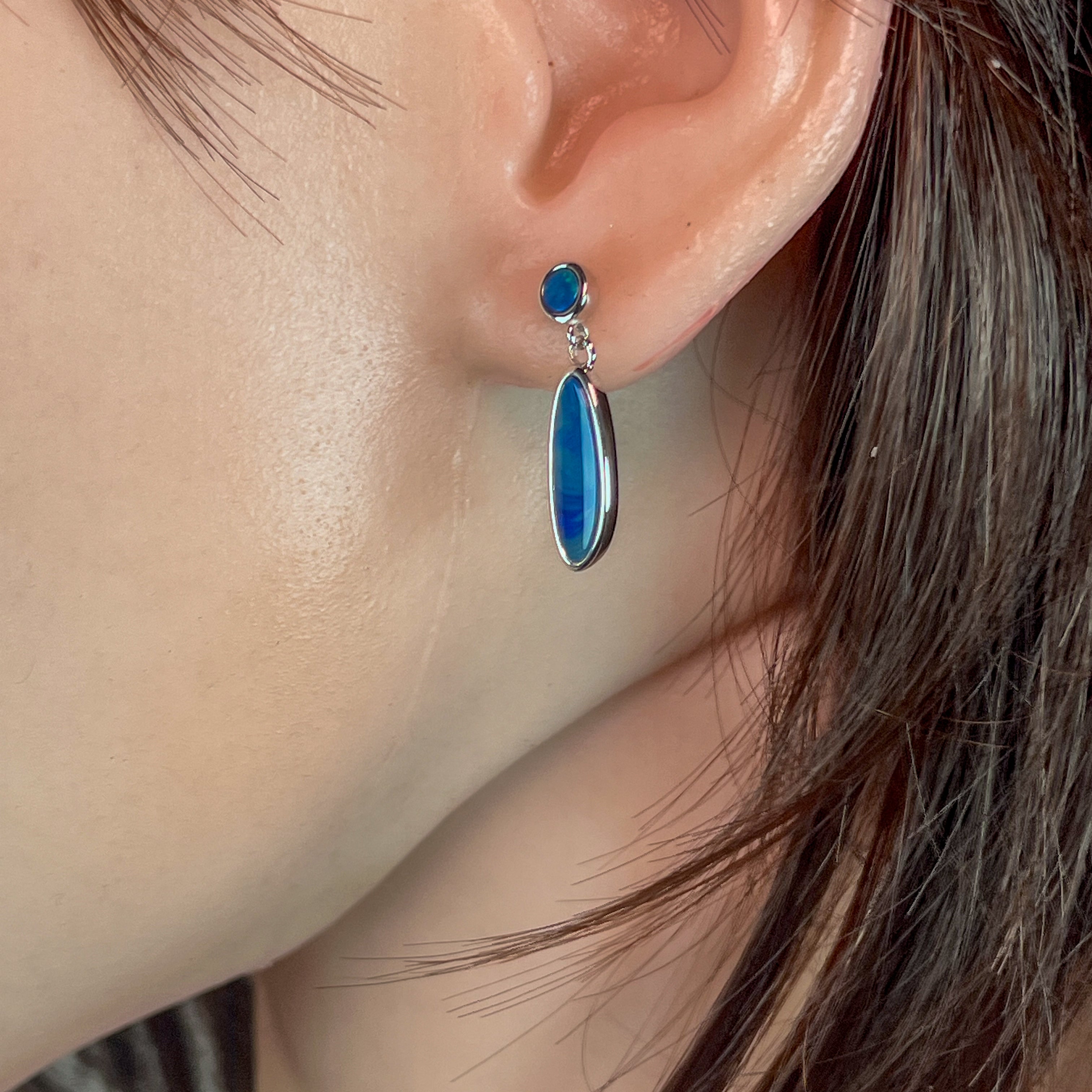 Sterling Silver Opal drop earrings Blue Green satin colours