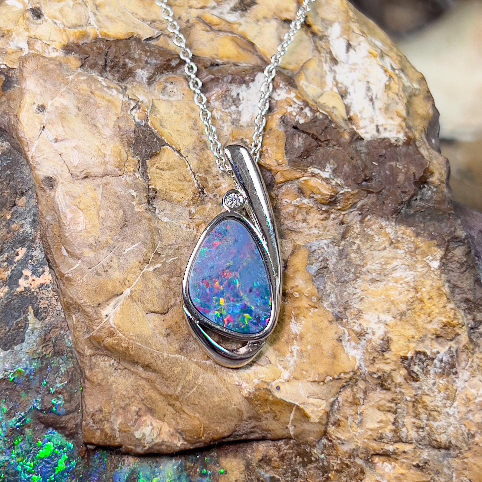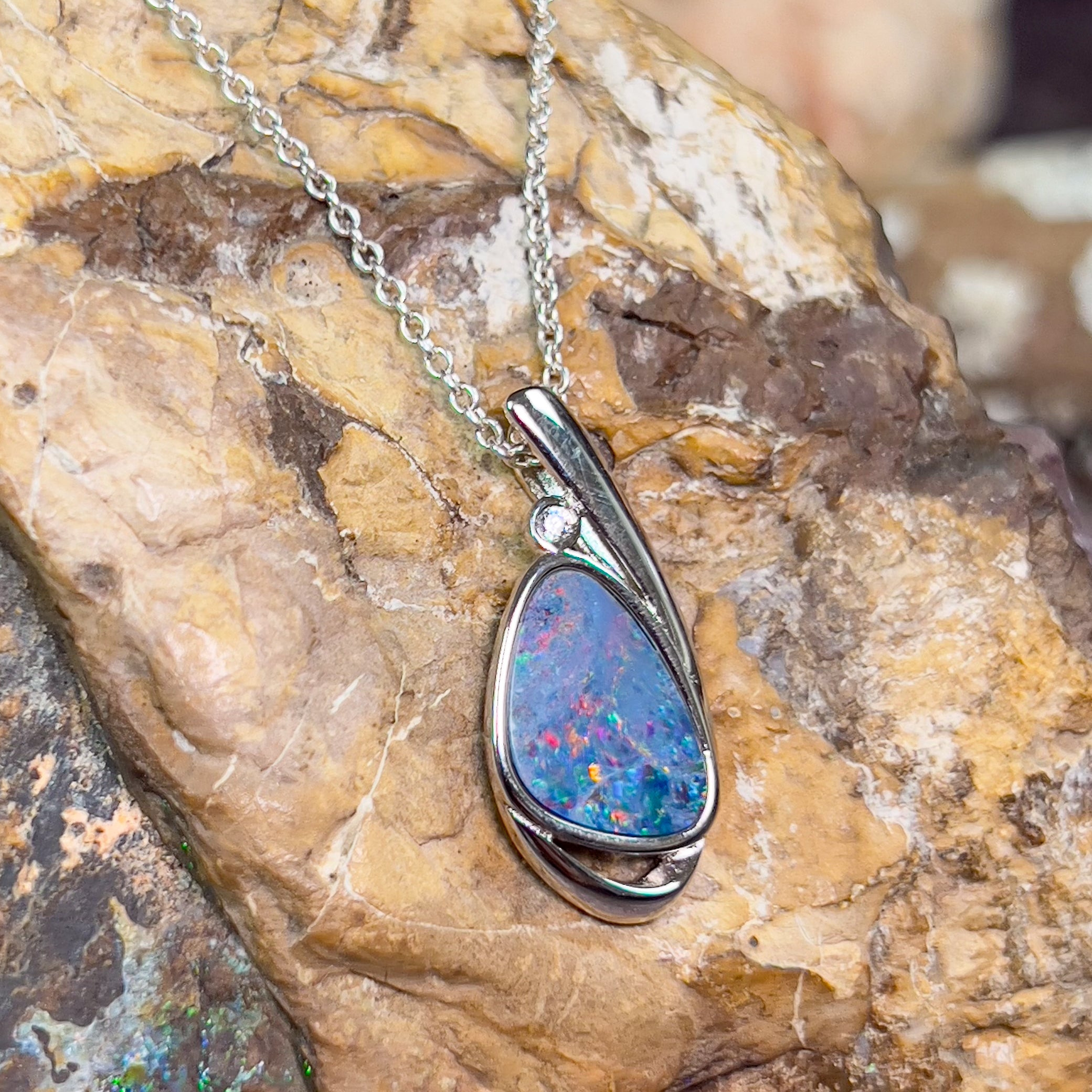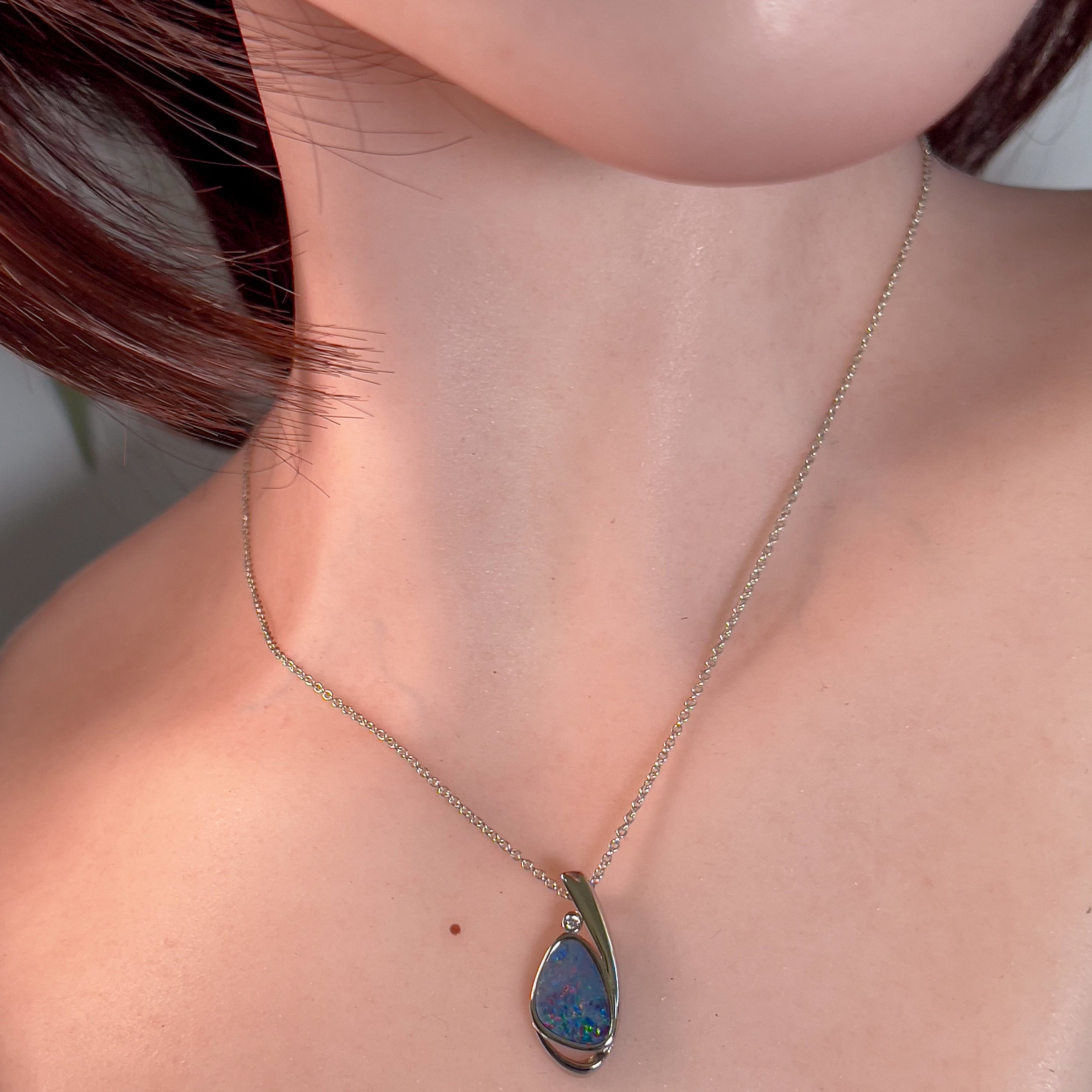 Experience the stunning beauty of our Sterling Silver Opal Red Violet Doublet Pendant! Featuring a mesmerizing blend of blue and red hues, this pendant will add a vibrant pop of color to any outfit. Made with high-quality sterling silver, our pendant exudes elegance and will be a cherished addition to your jewelry collection.