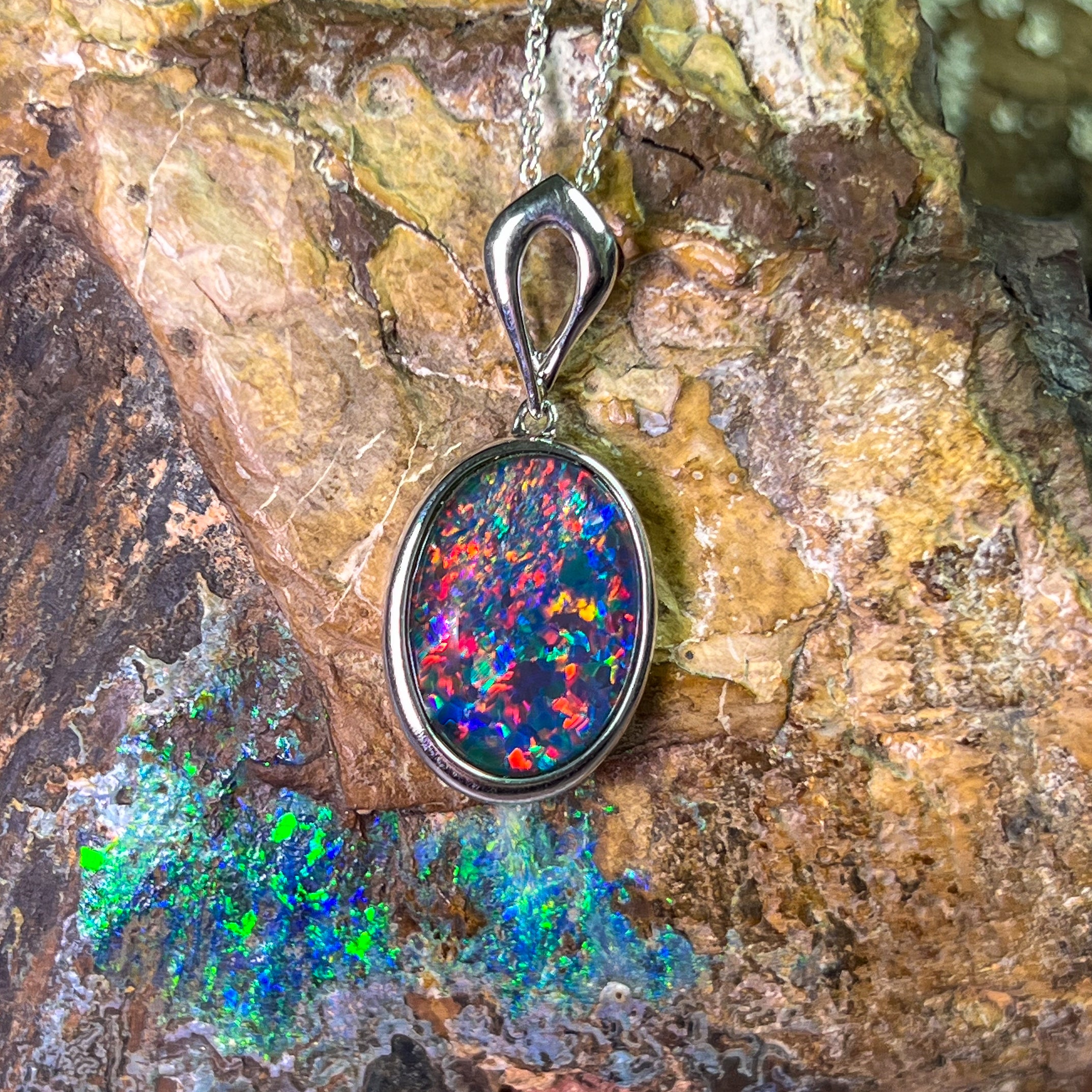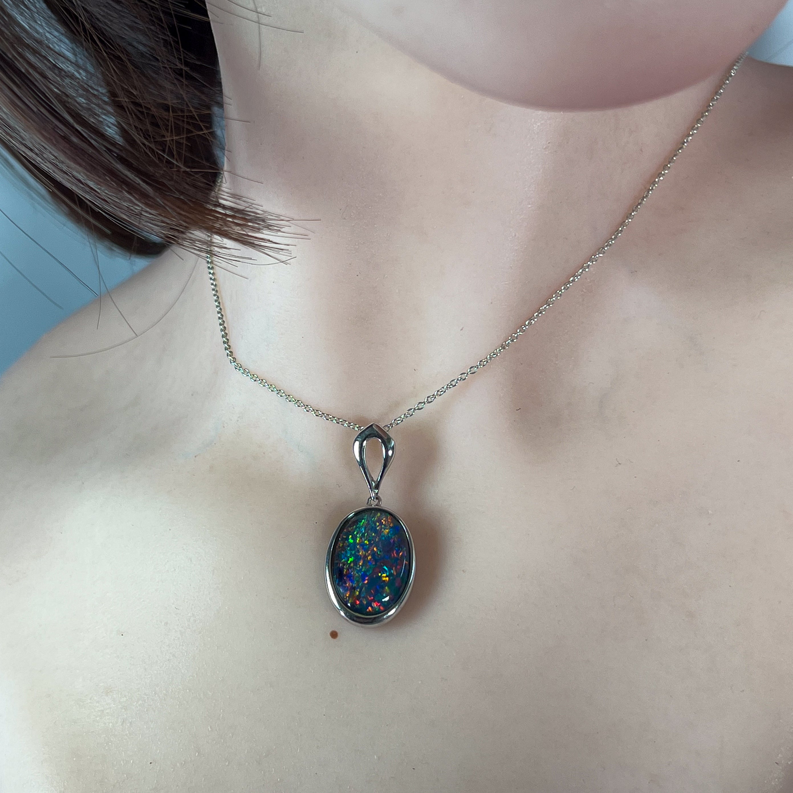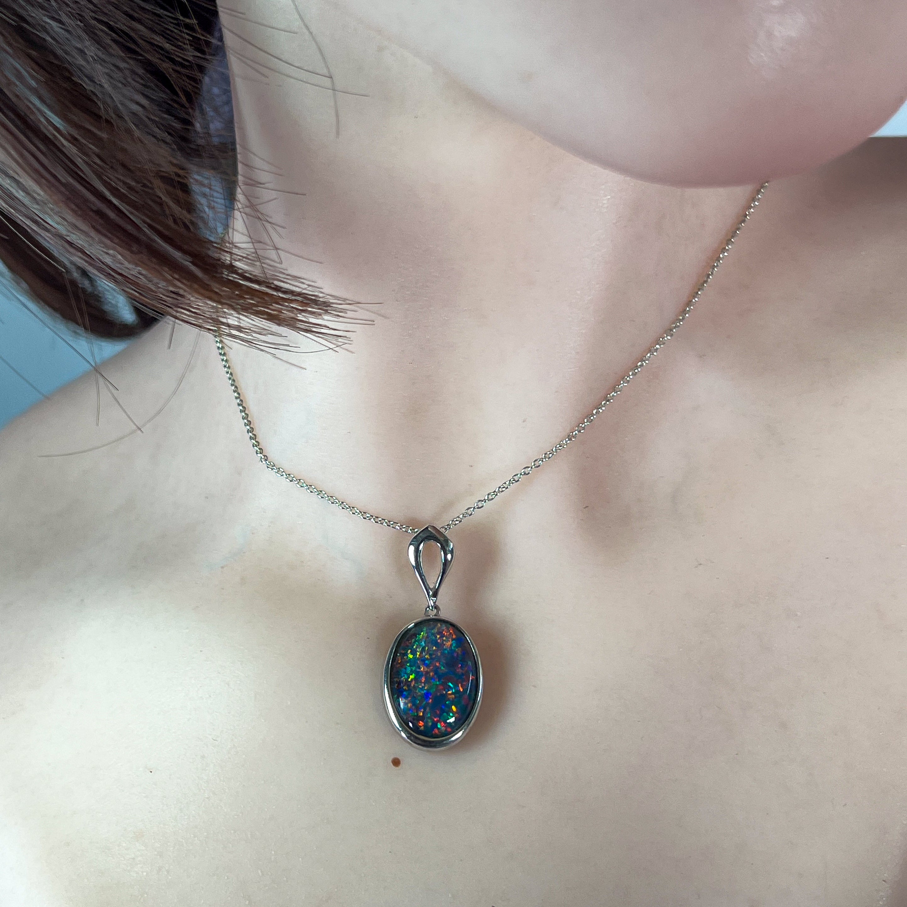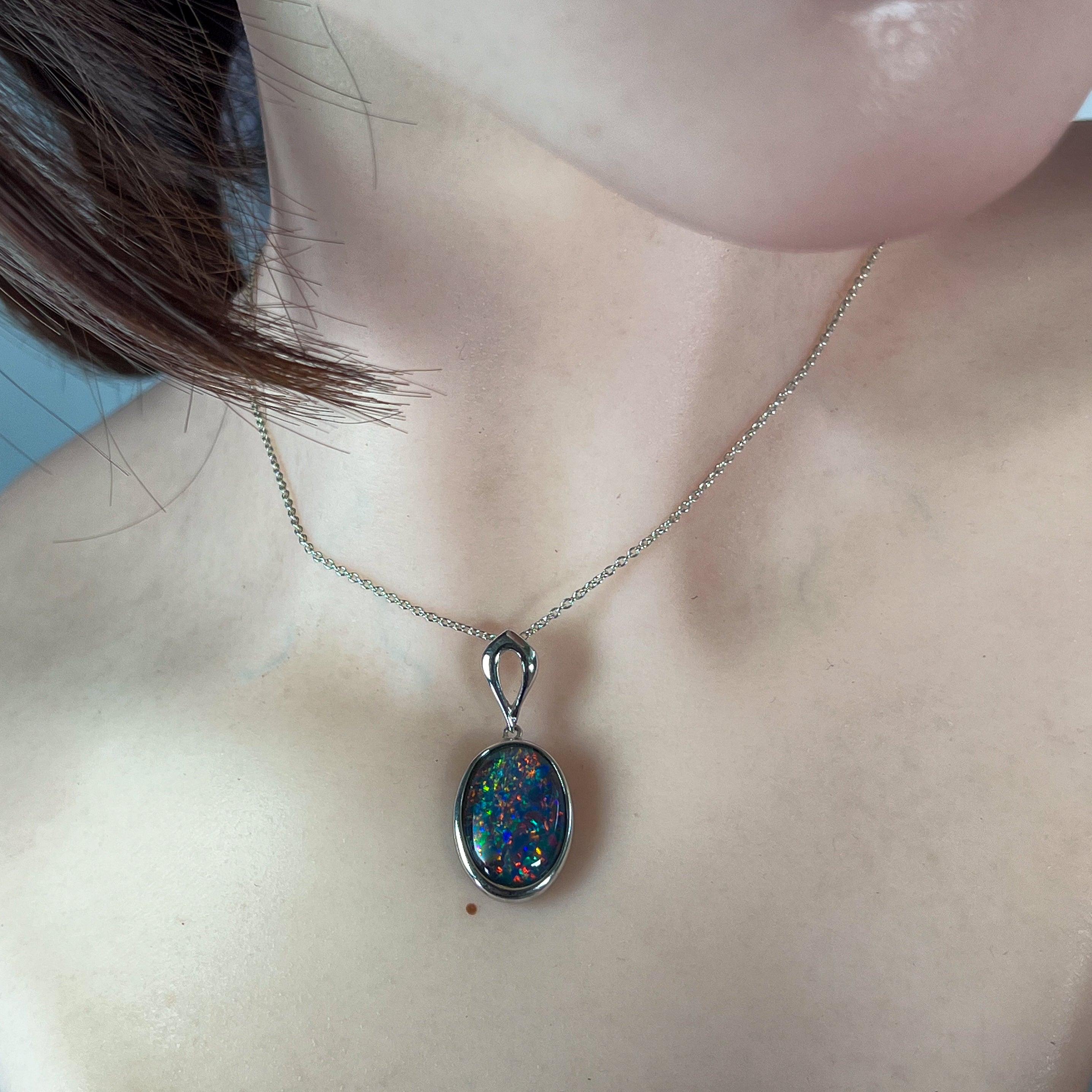 Sterling Silver Opal Triplet 18x13mm bezel set pendant