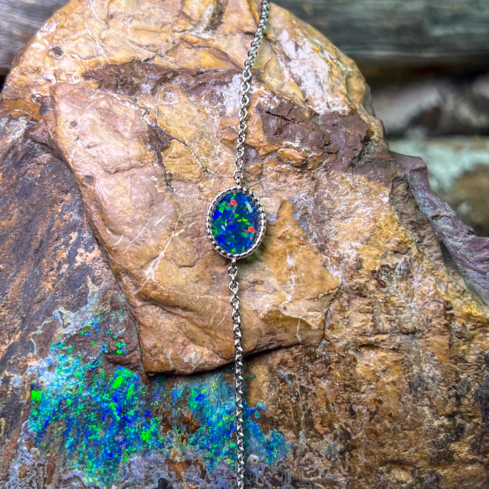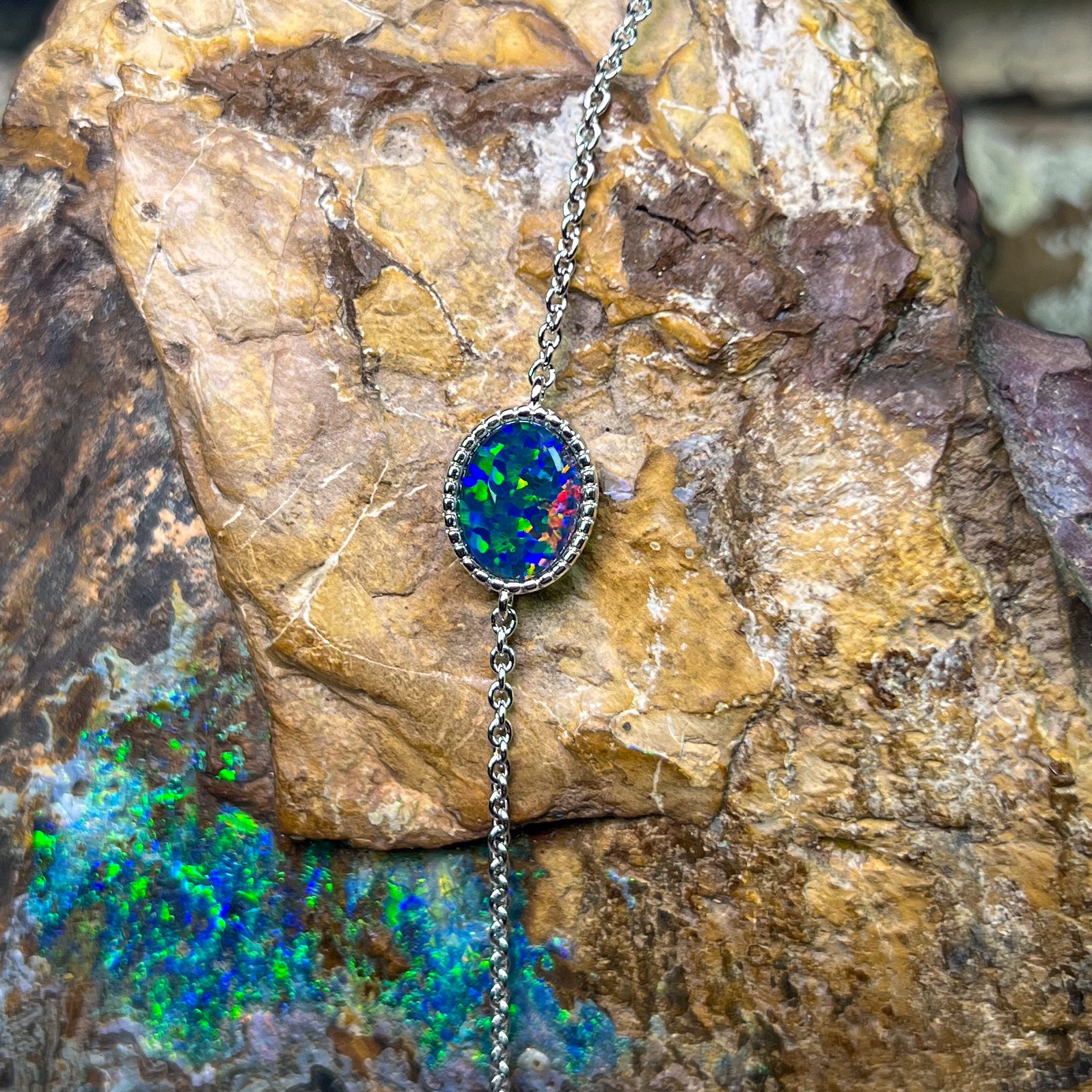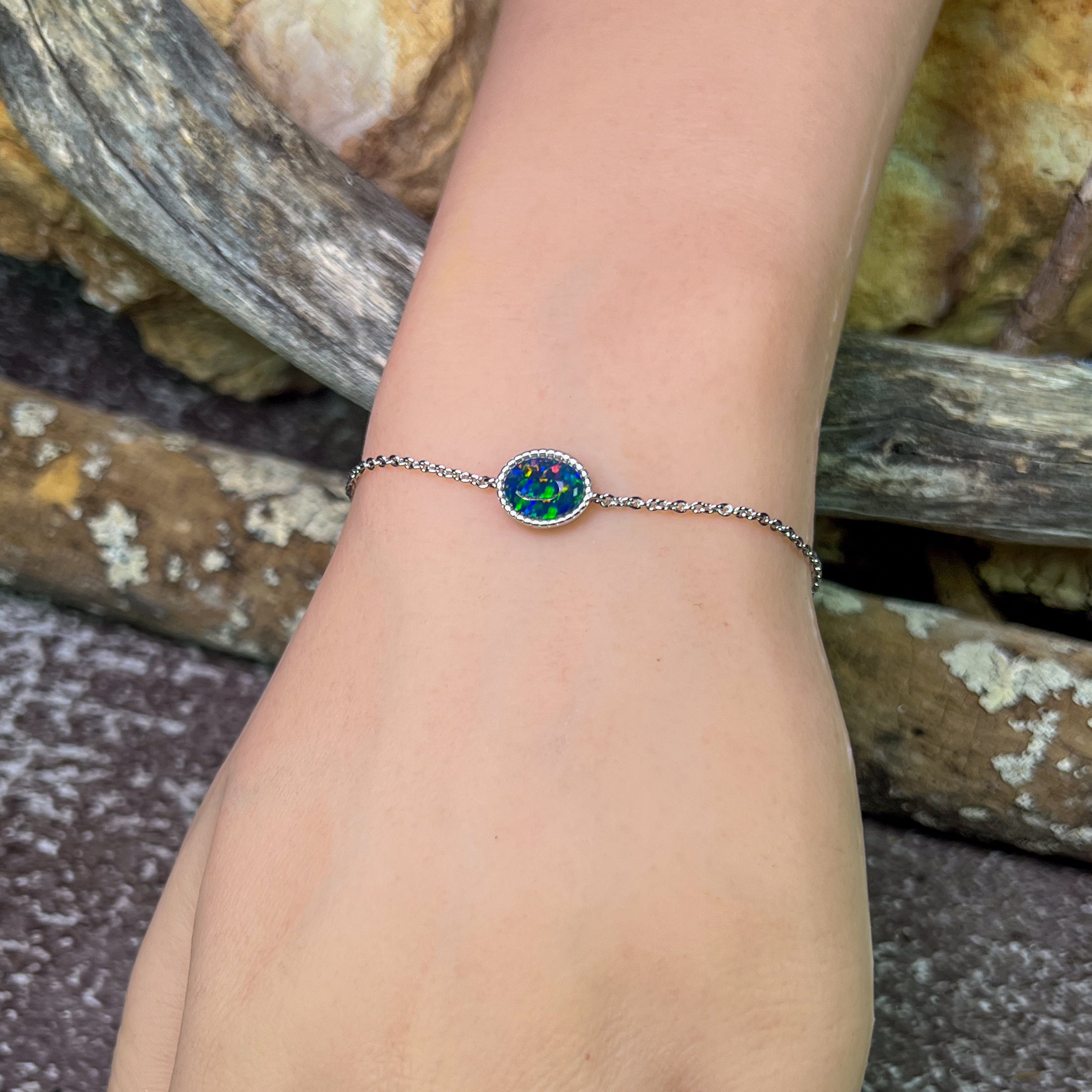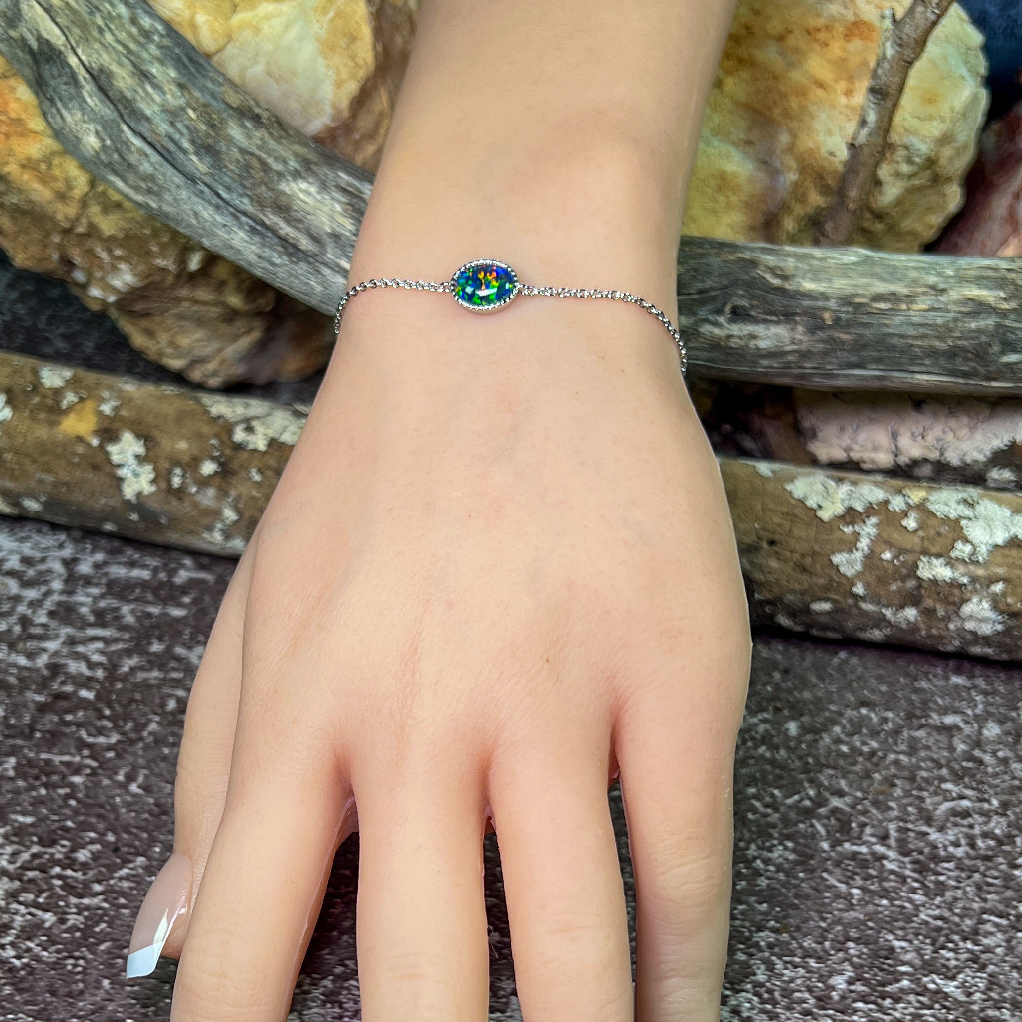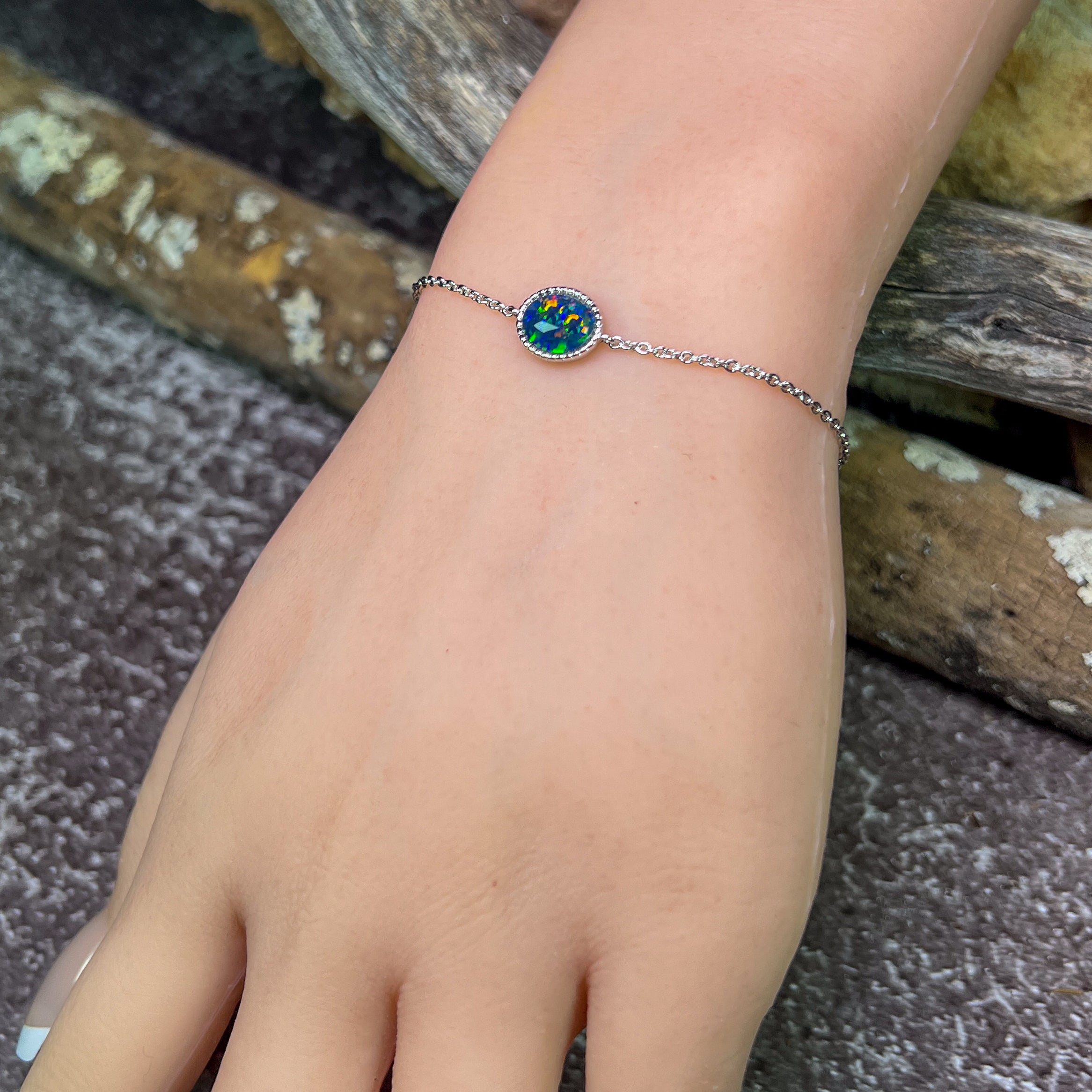 Sterling Silver Oval Opal triplet solitaire bracelet