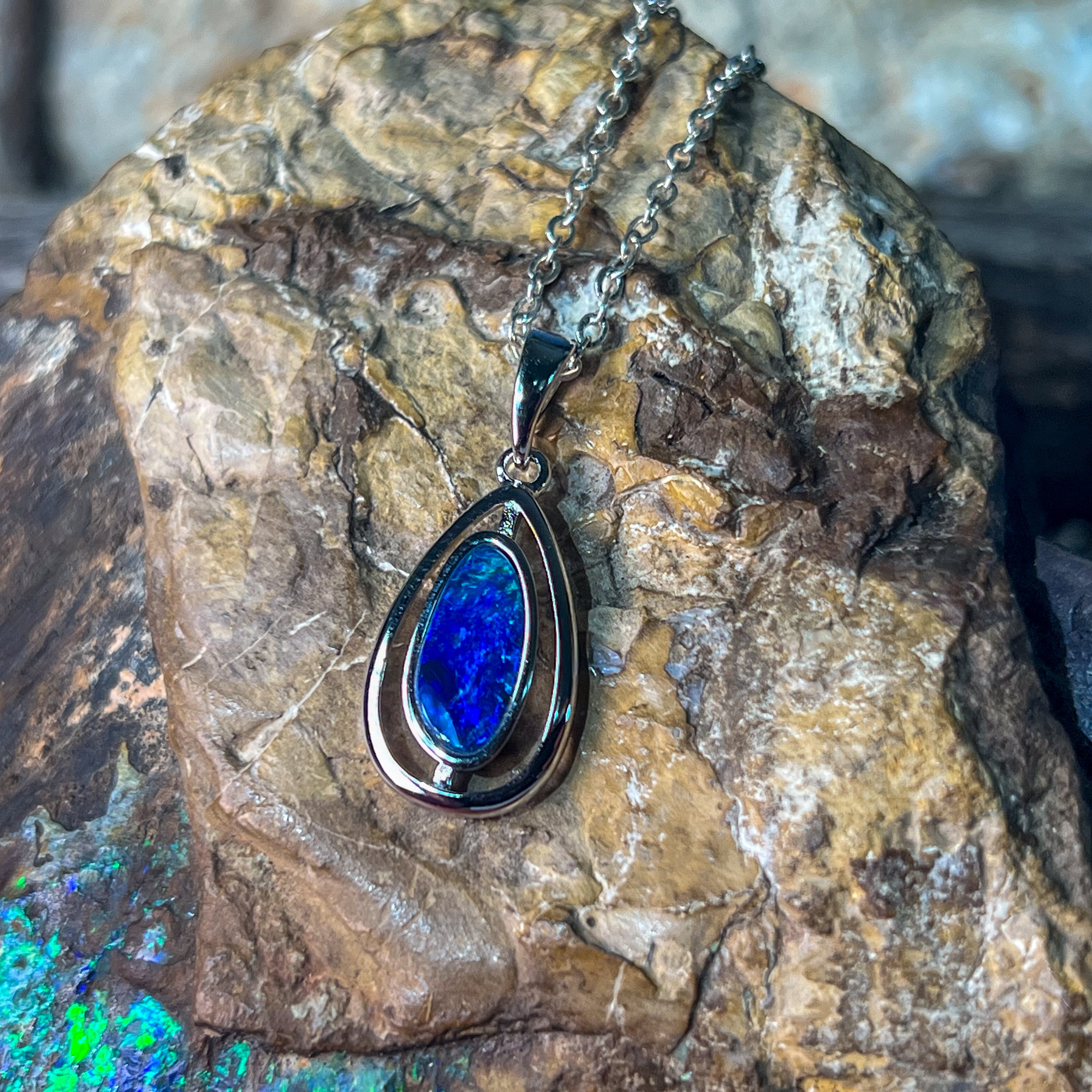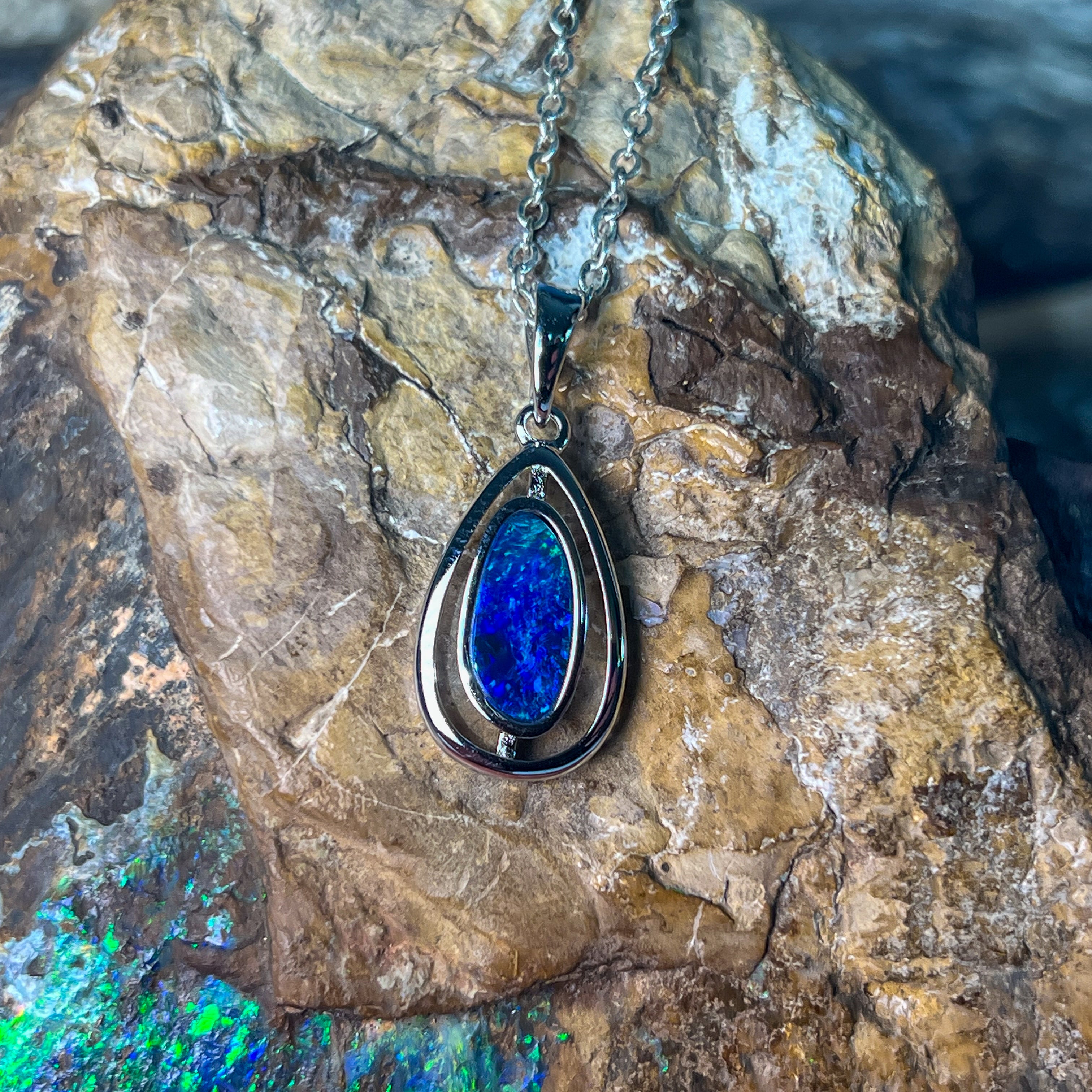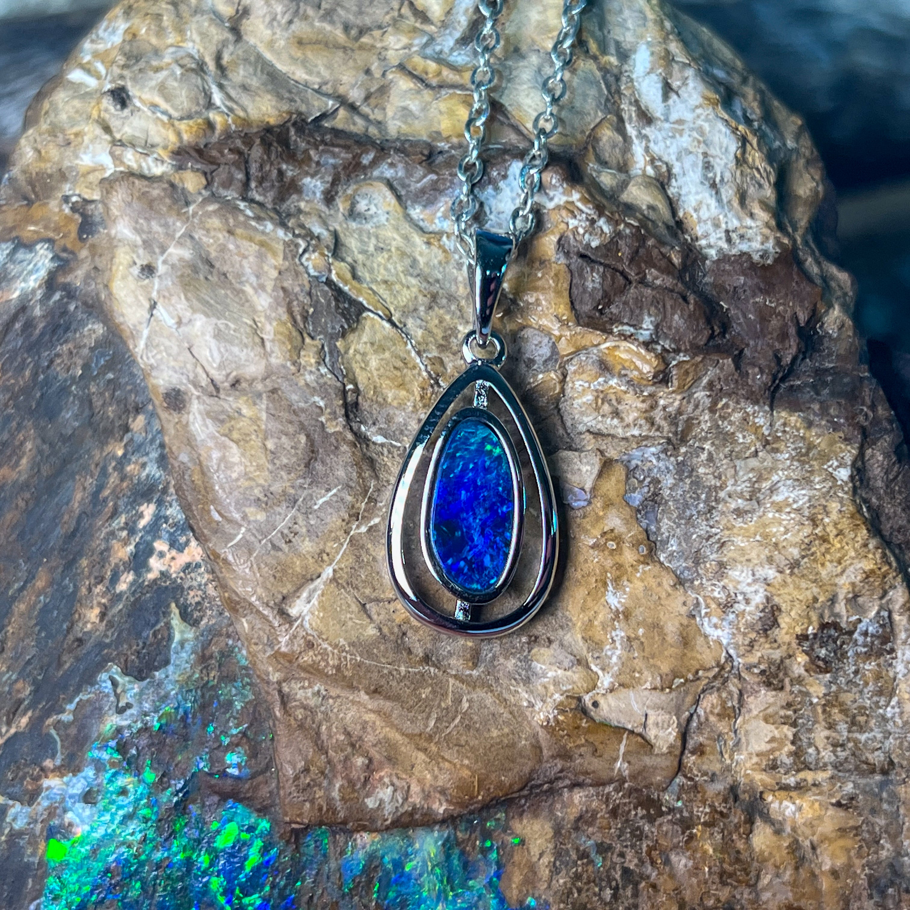 Sterling Silver Pear shape cut out design Opal doublet Blue Green pendant