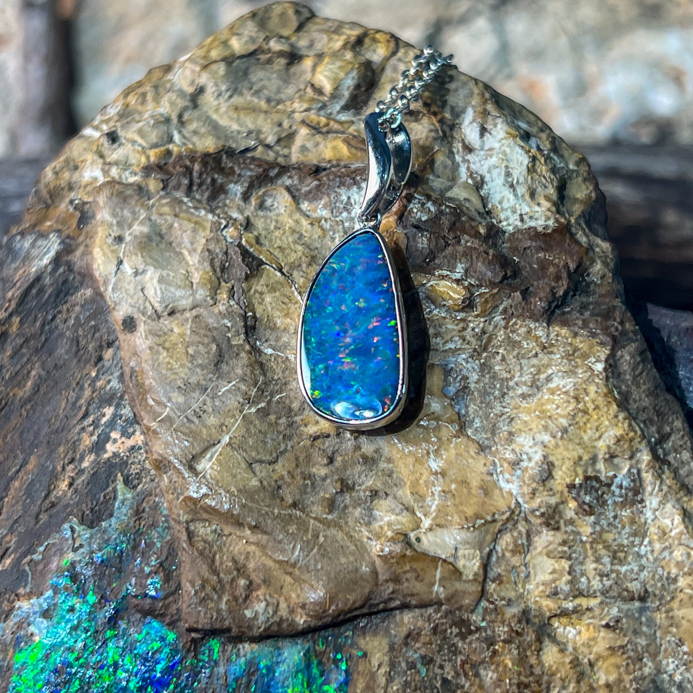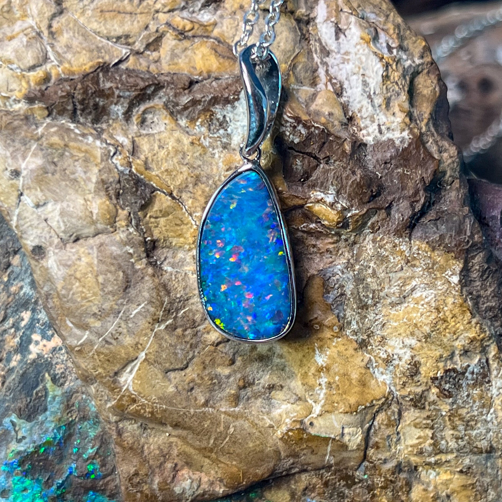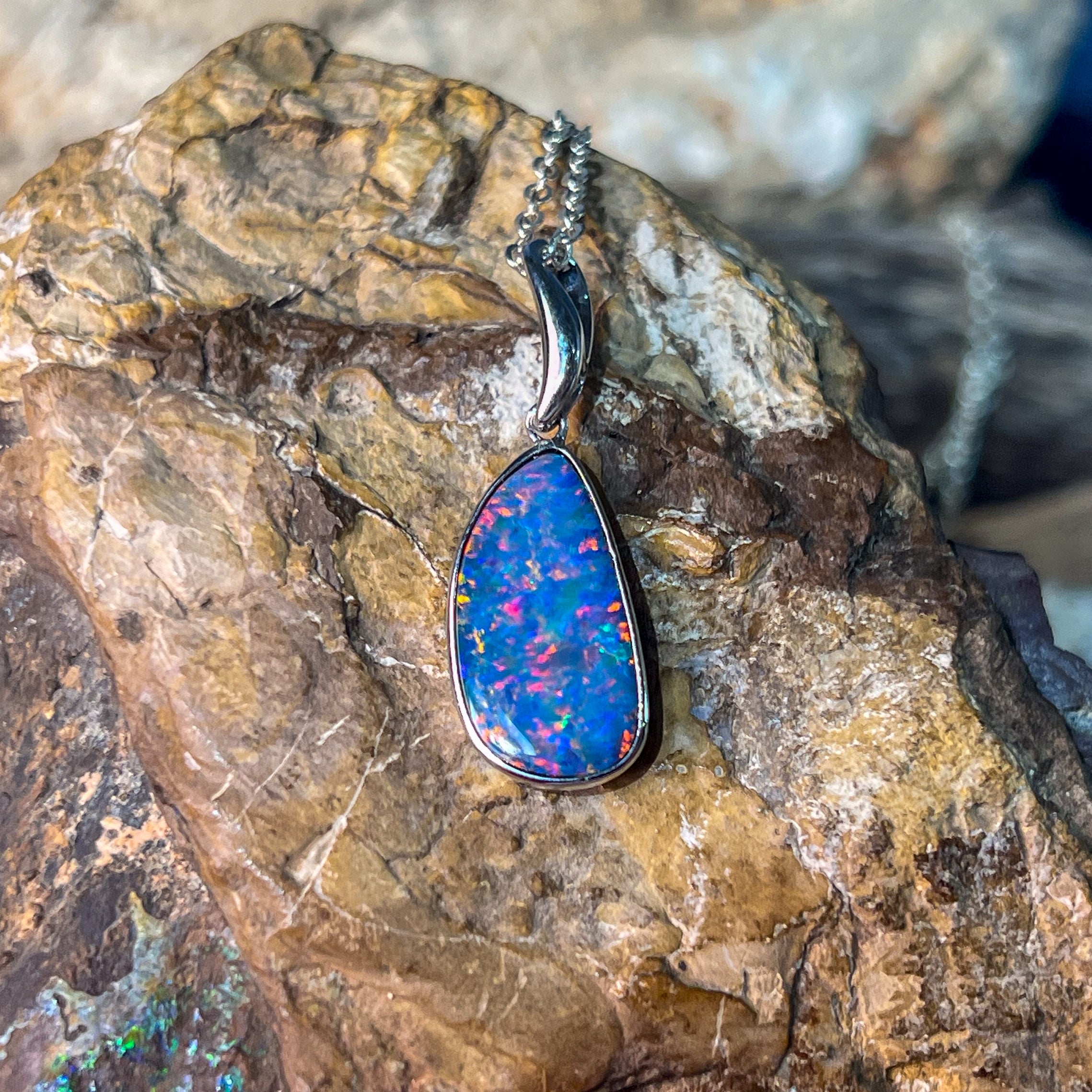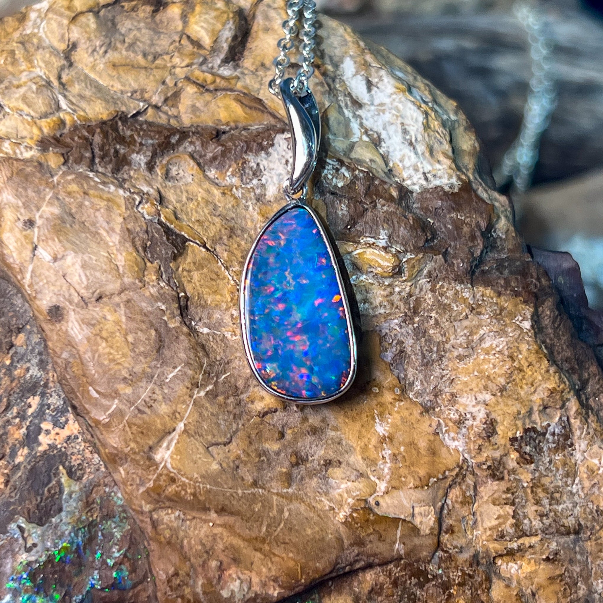 Sterling Silver Red Blue freeform Opal doublet bezel set pendant