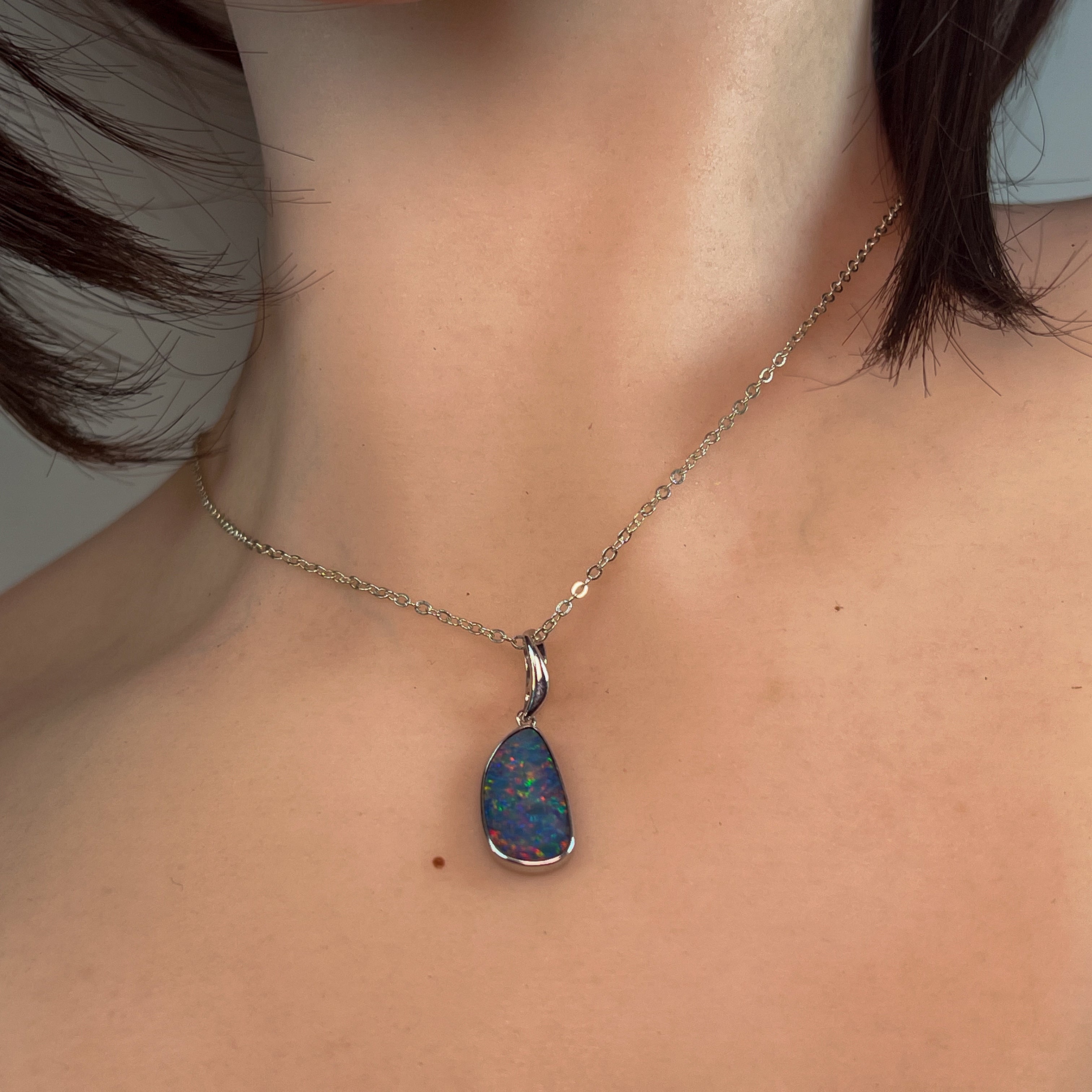Showcasing a vibrant play of colors, this sterling silver pendant features a red and blue freeform opal doublet artfully bezel set for a secure, stylish finish. Its unique design brings a captivating sparkle to any outfit, making it perfect for adding a standout touch to your collection. Lightweight and durable, this pendant combines elegance with everyday wearability.