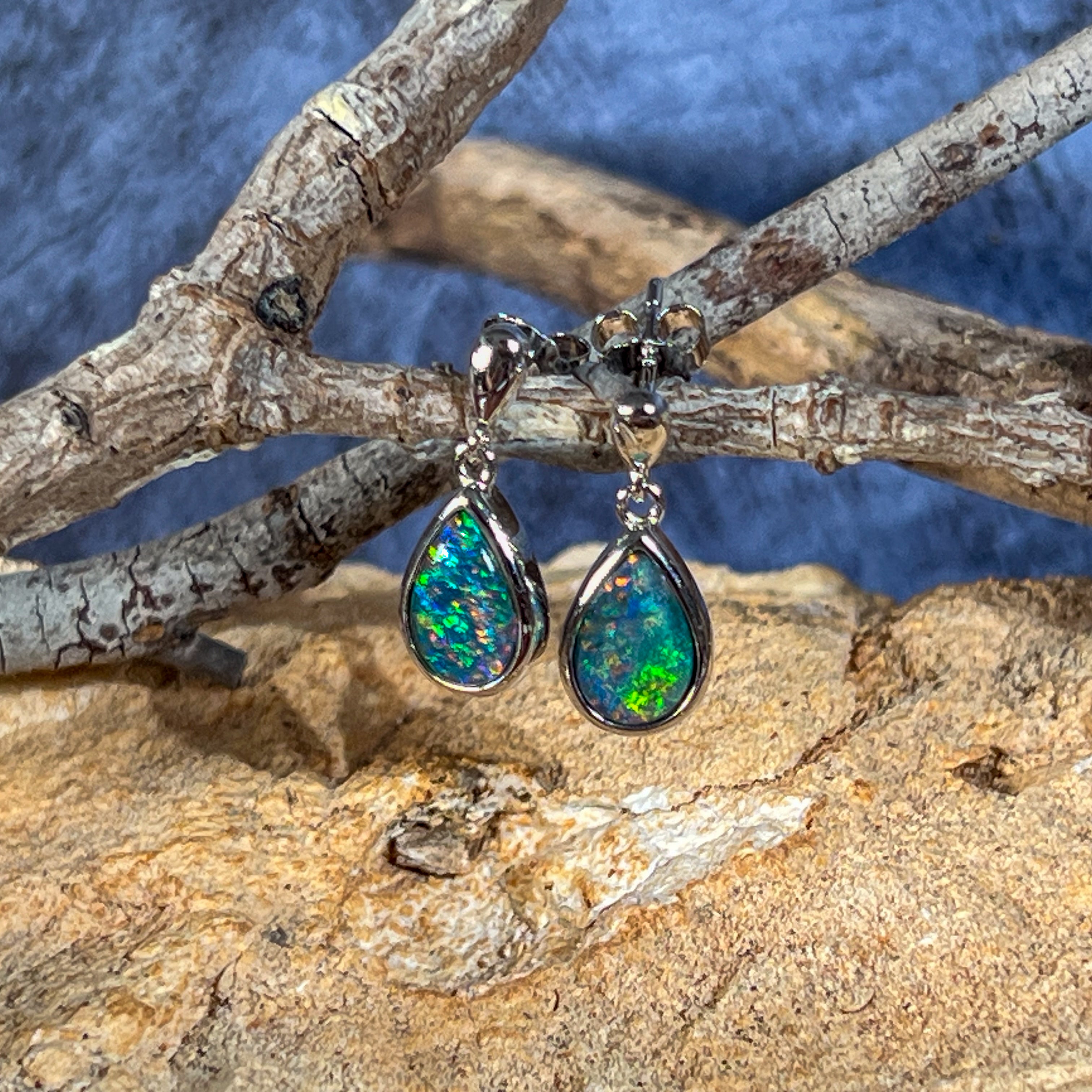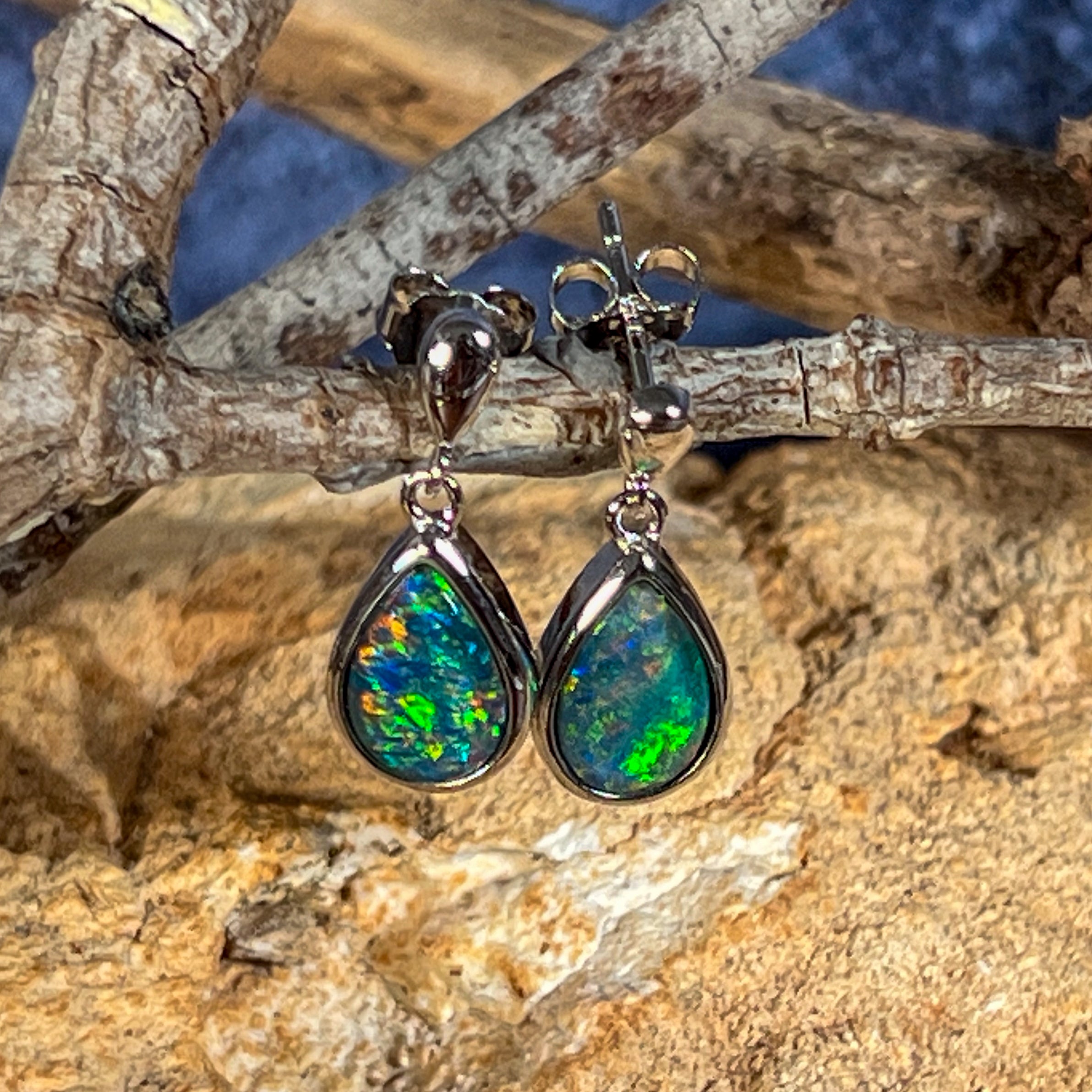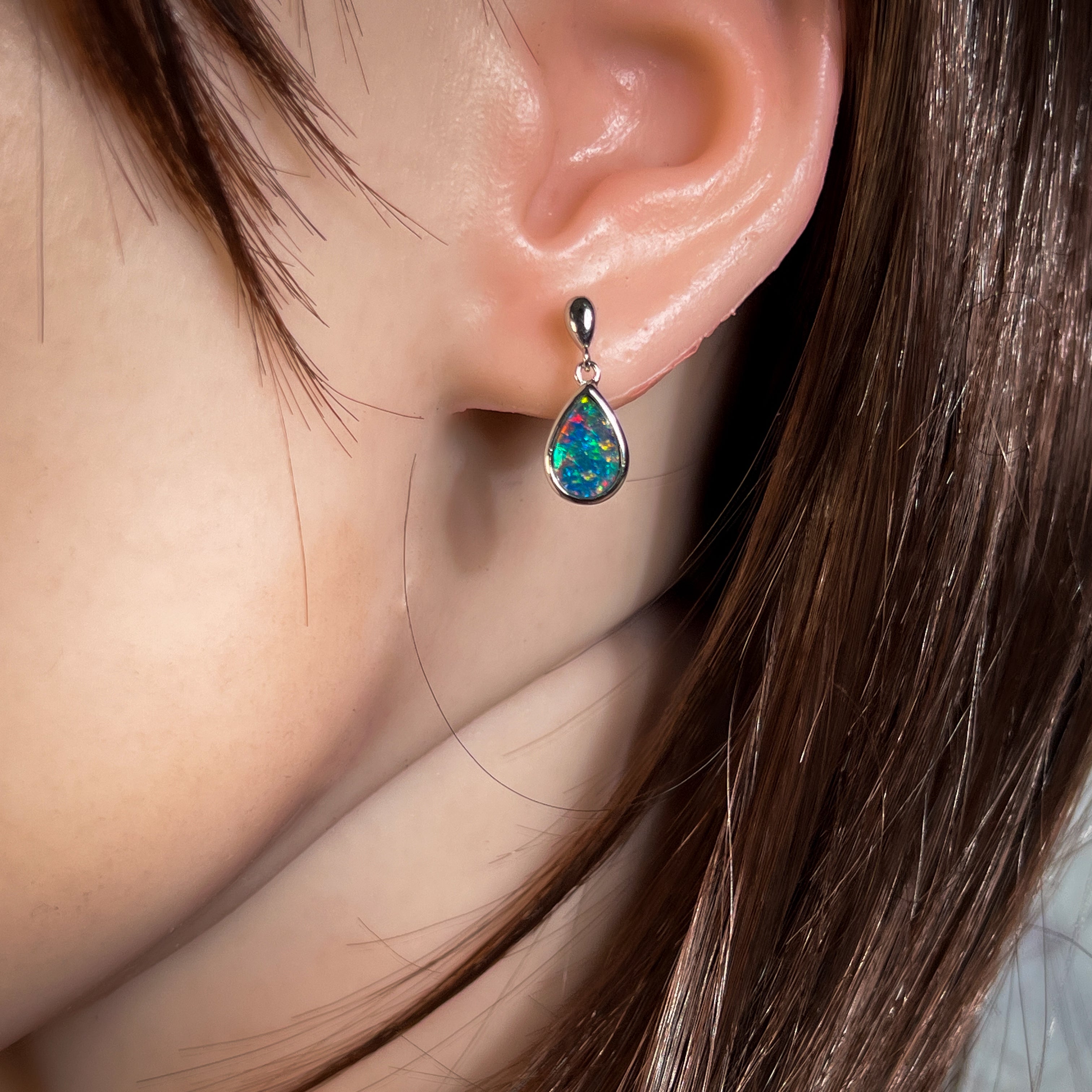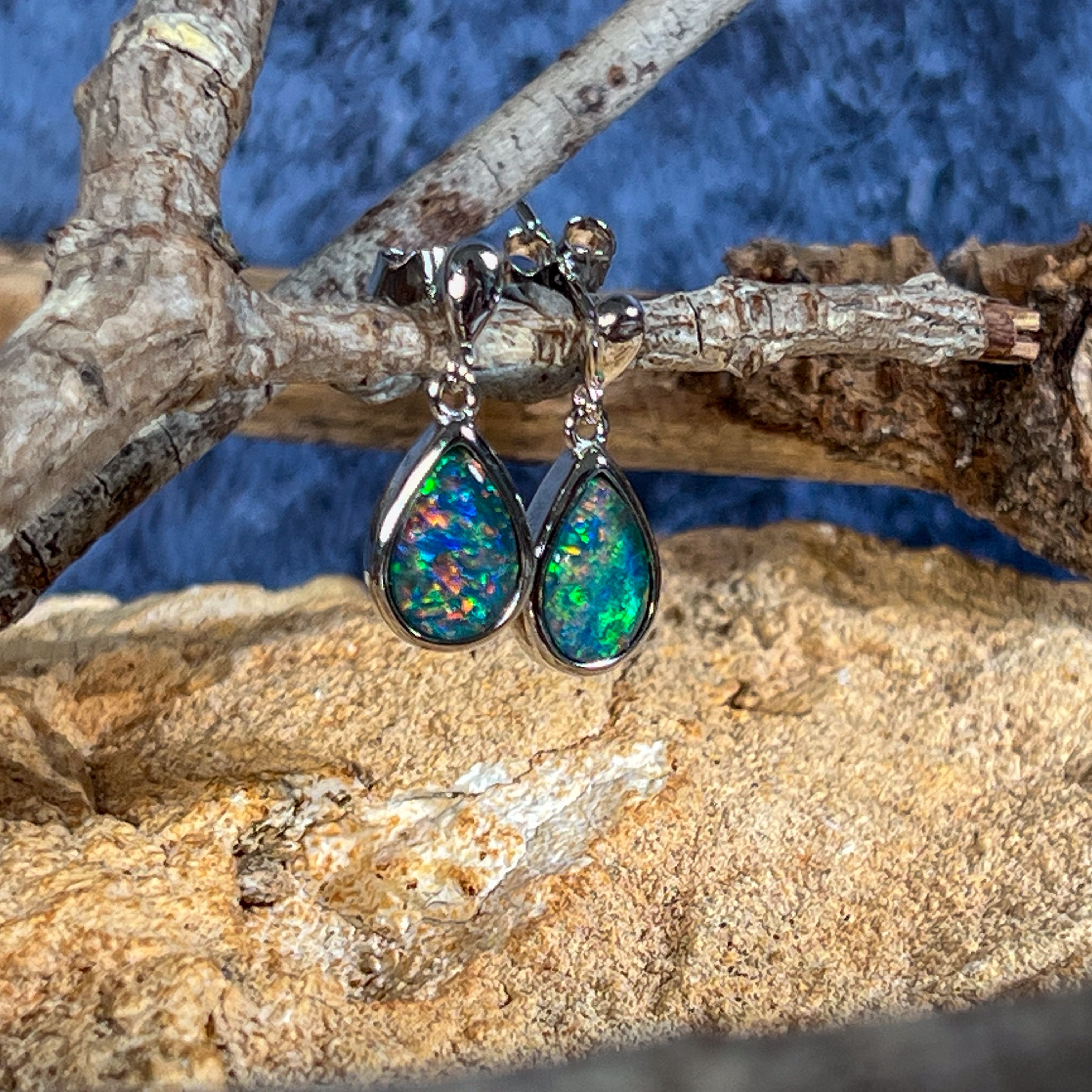 Sterling Silver short dangling pear shape Opal triplet 9x6mm