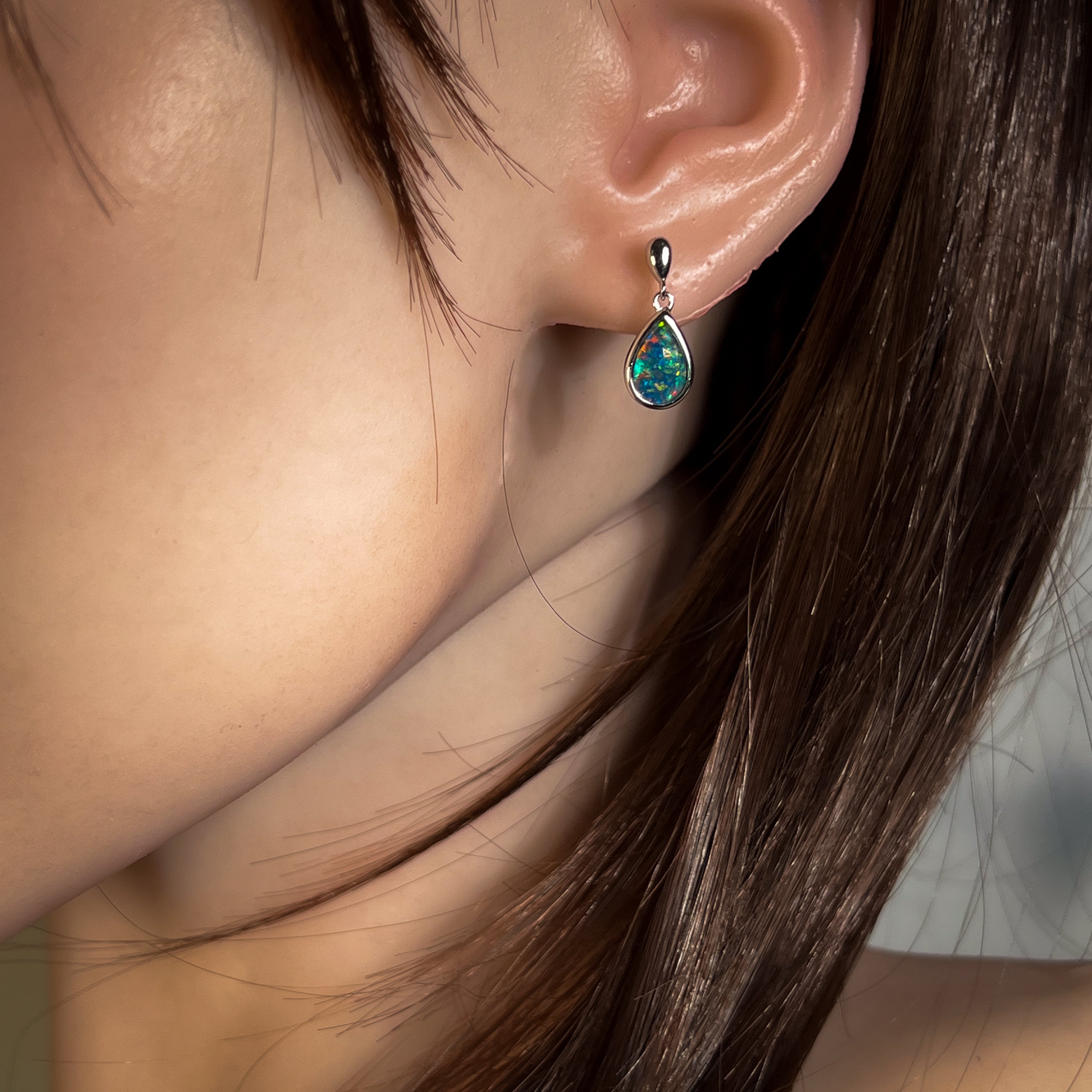 Experience the elegance of our Sterling Silver Opal Triplet featuring a mesmerizing 9x6mm pear-shaped stone. The dangling design adds a touch of movement to your outfit, making you stand out from the crowd. Elevate your style with the captivating beauty of this unique piece of jewelry.