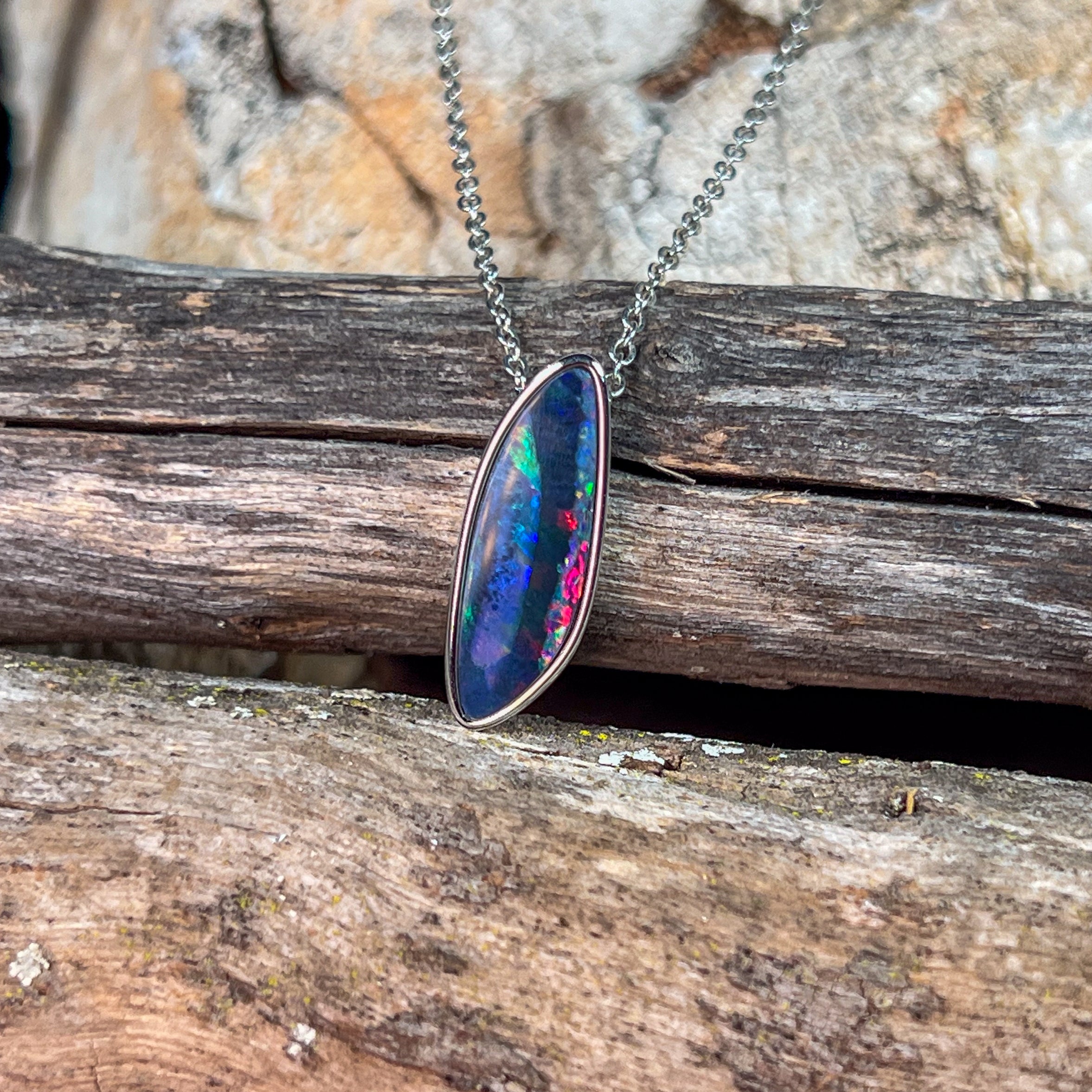 Elevate your everyday elegance with this stunning Sterling Silver slider Opal doublet pendant. Crafted from premium sterling silver, this versatile piece glides smoothly along your chain, allowing you to adjust its position for a customised fit that suits your style. The mesmerising opal doublet showcases nature's most captivating play-of-colour, with vibrant flashes of blue, green, and gold that shift beautifully in the light. Perfect for layering or wearing solo, this slider pendant transforms any outfit into something extraordinary. Whether you're drawn to opal's legendary charm or seeking a statement piece that celebrates individuality, this pendant delivers timeless sophistication with contemporary flair. An investment in jewellery that truly stands out.