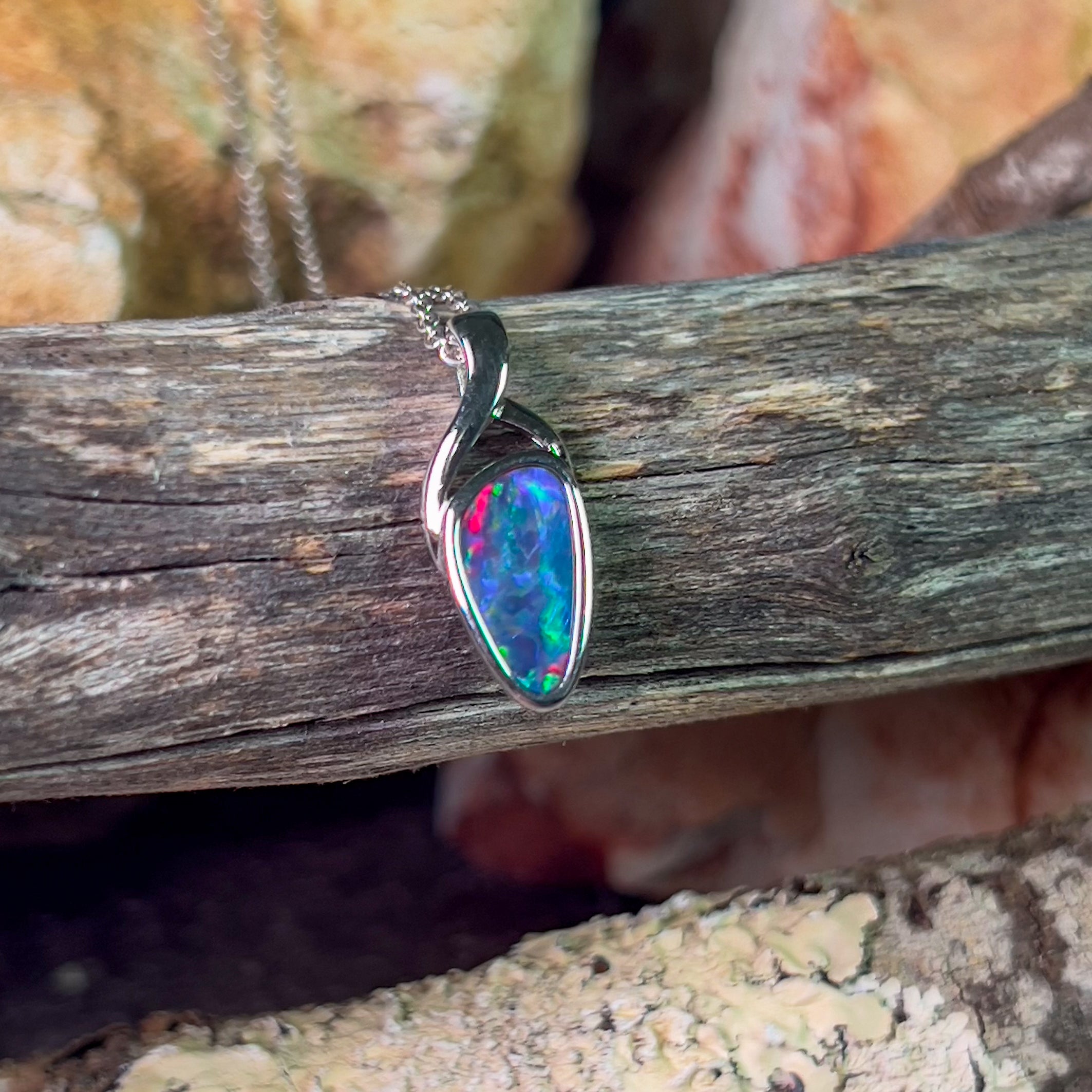 Sparkle with the mesmerizing fire colour of our Sterling Silver Teardrop shape Opal doublet pendant. Elegantly crafted, this pendant adds a touch of radiance and sophistication to any outfit. Embrace the enchanting beauty of the opal doublet and let its fiery hues inspire you every day!