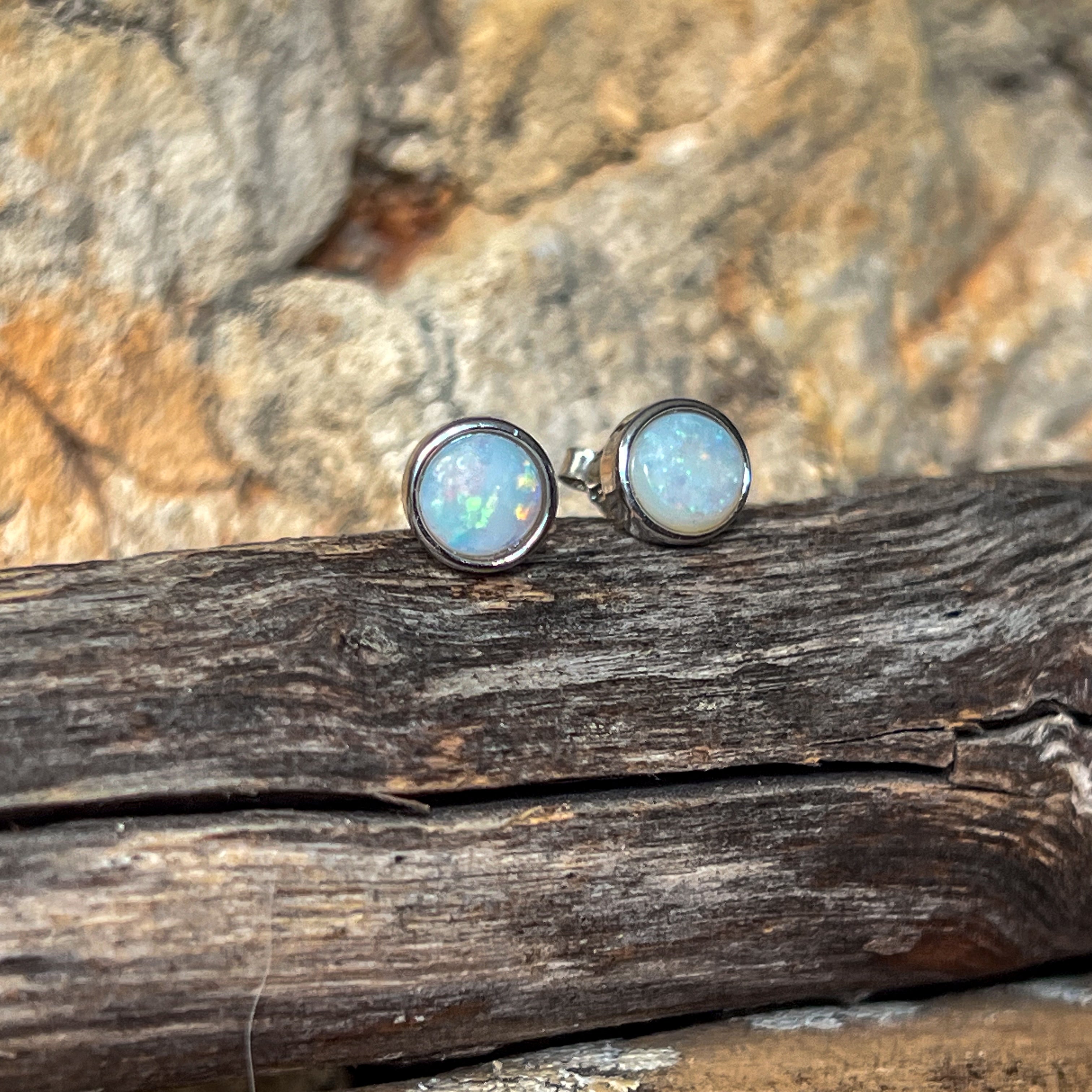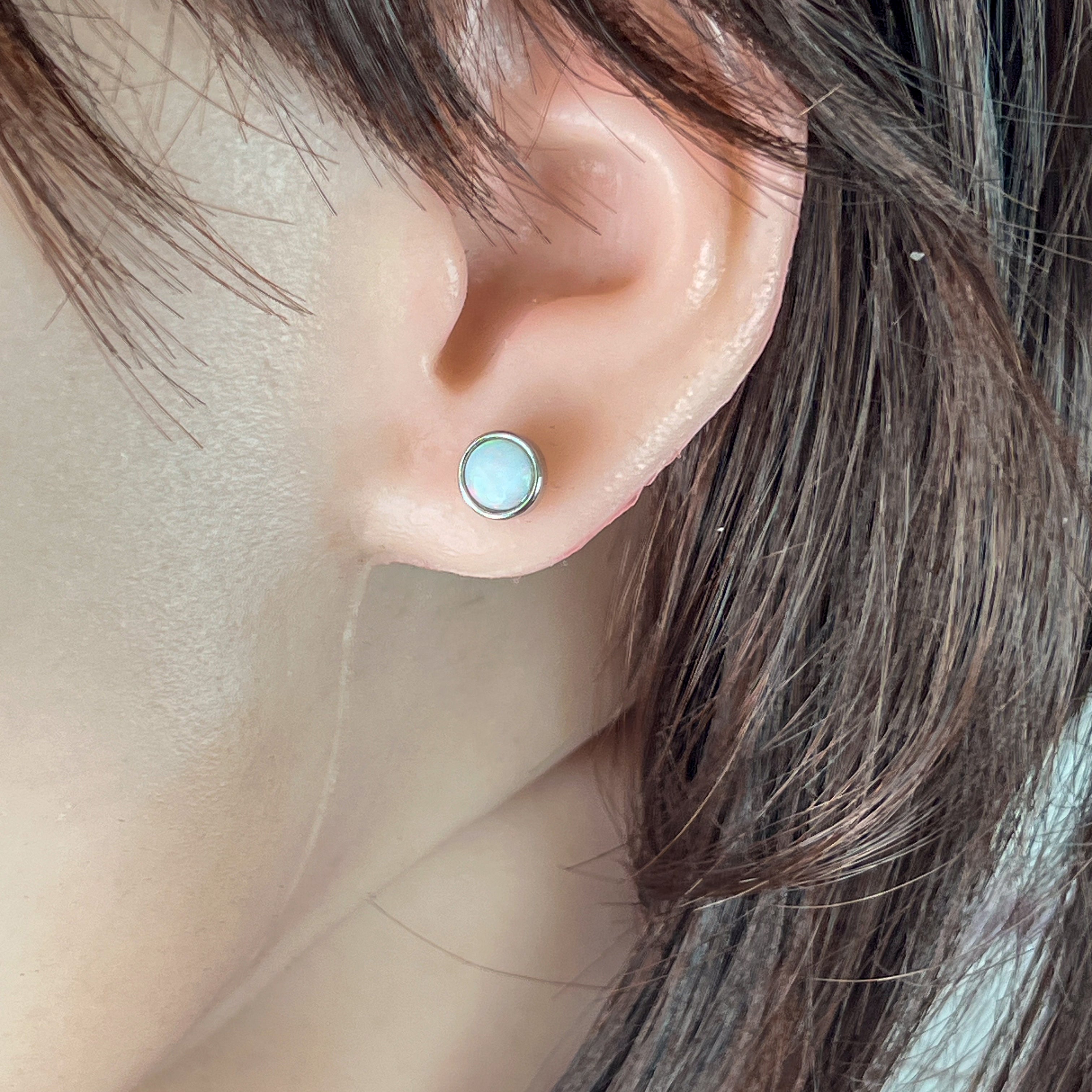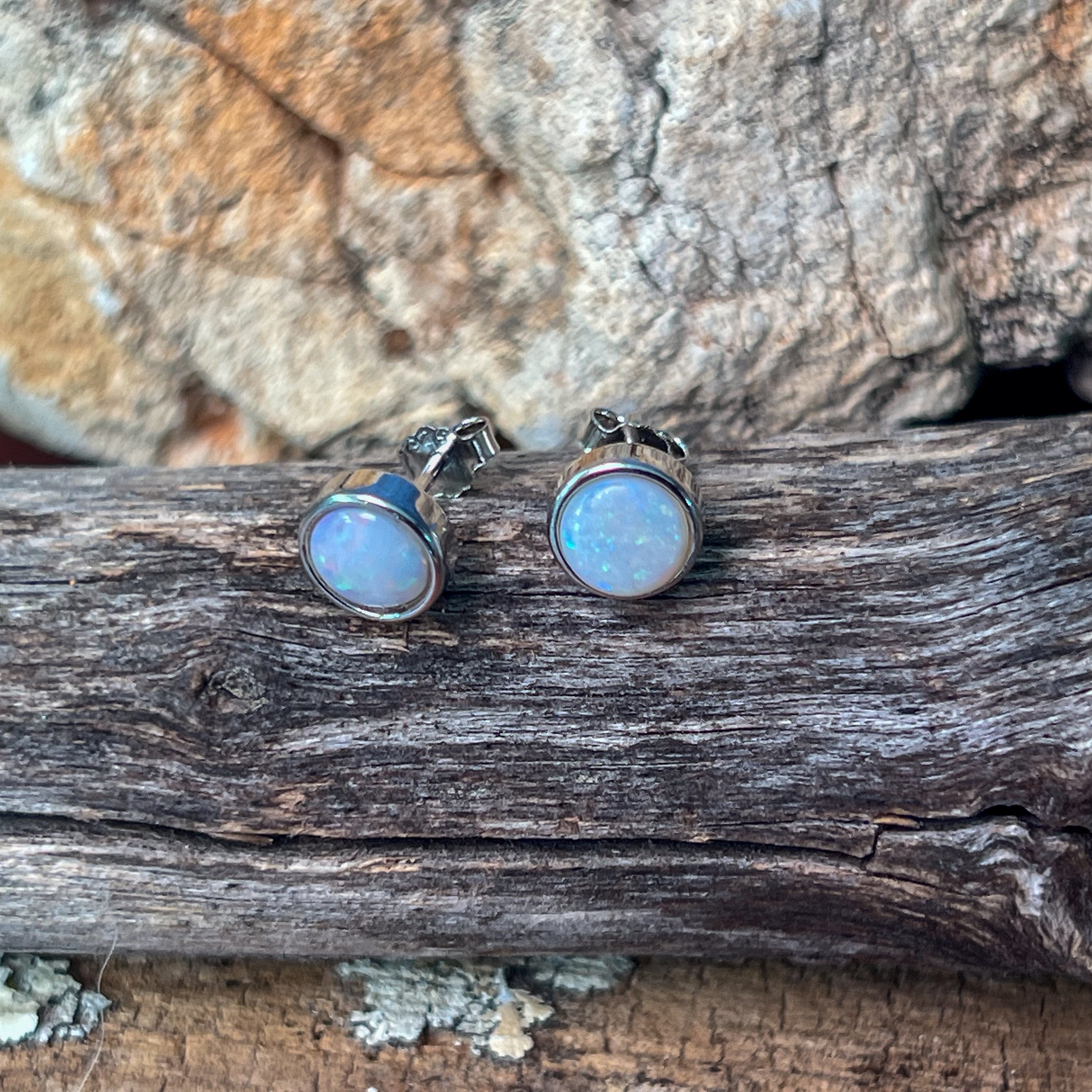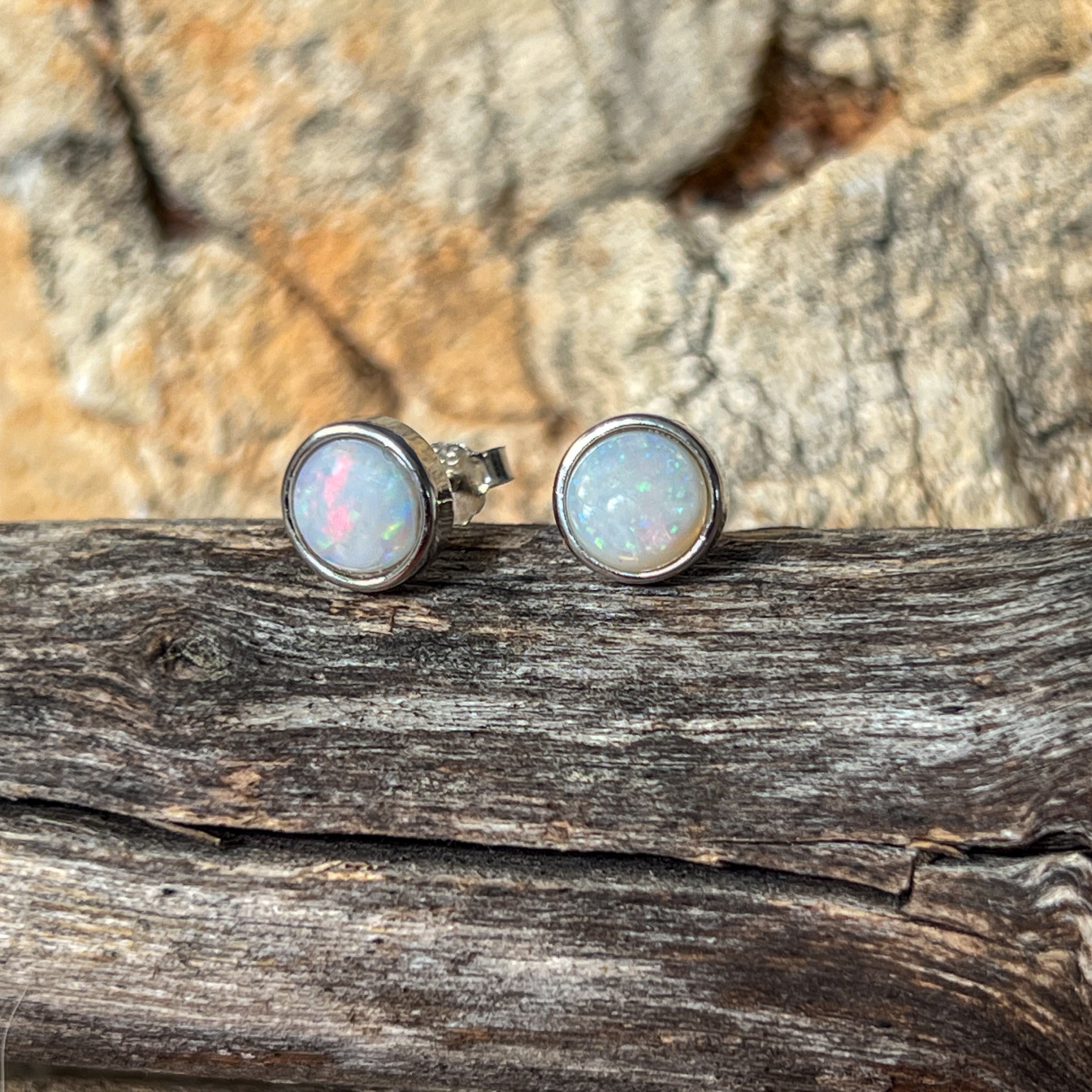 Elevate your elegance with these sterling silver white opal round studs, measuring 6mm. Their classic bezel setting offers a timeless silhouette that enhances the opal’s natural iridescence, making them perfect for both everyday wear and special occasions. Crafted for lasting beauty and subtle sophistication, these studs add a refined touch to any ensemble.