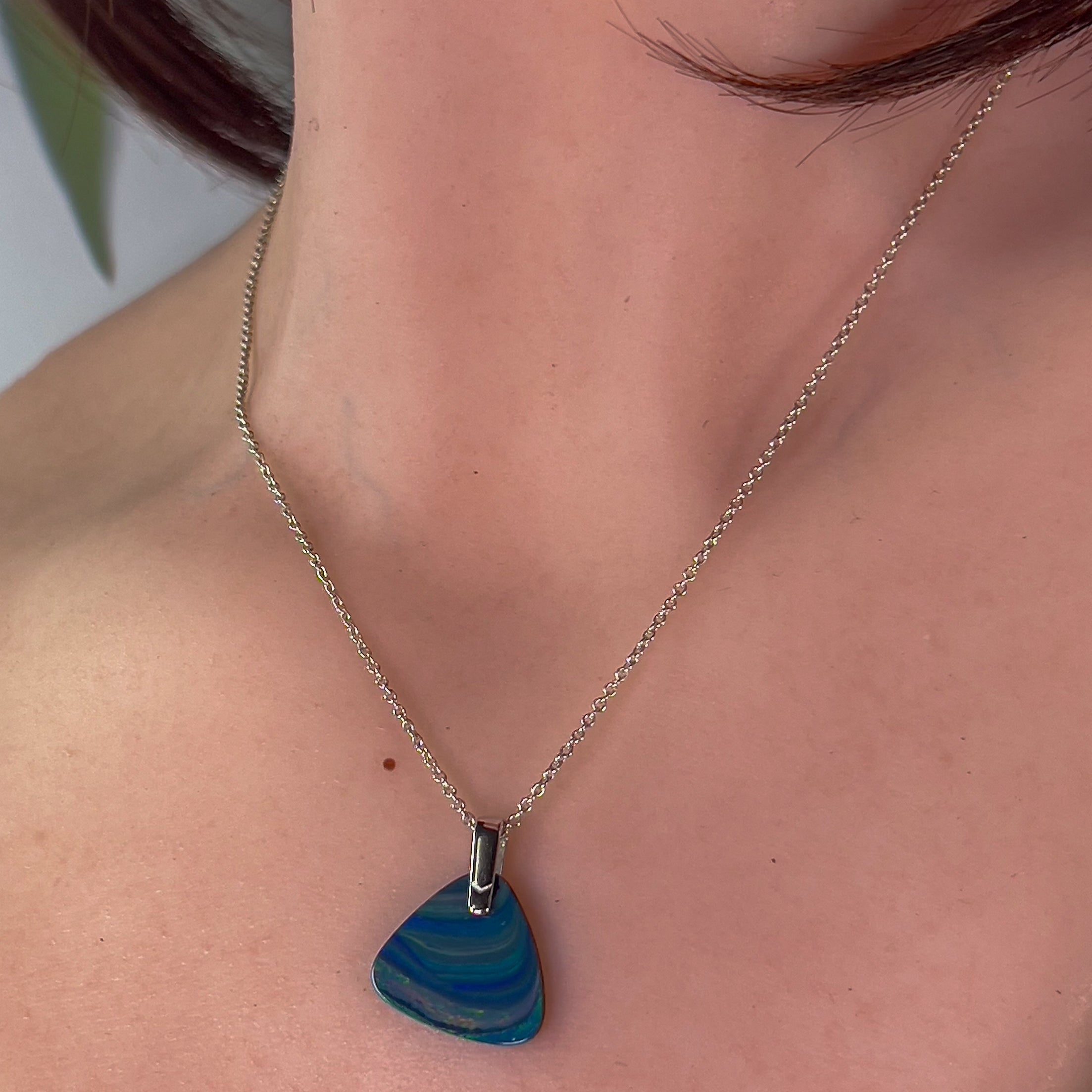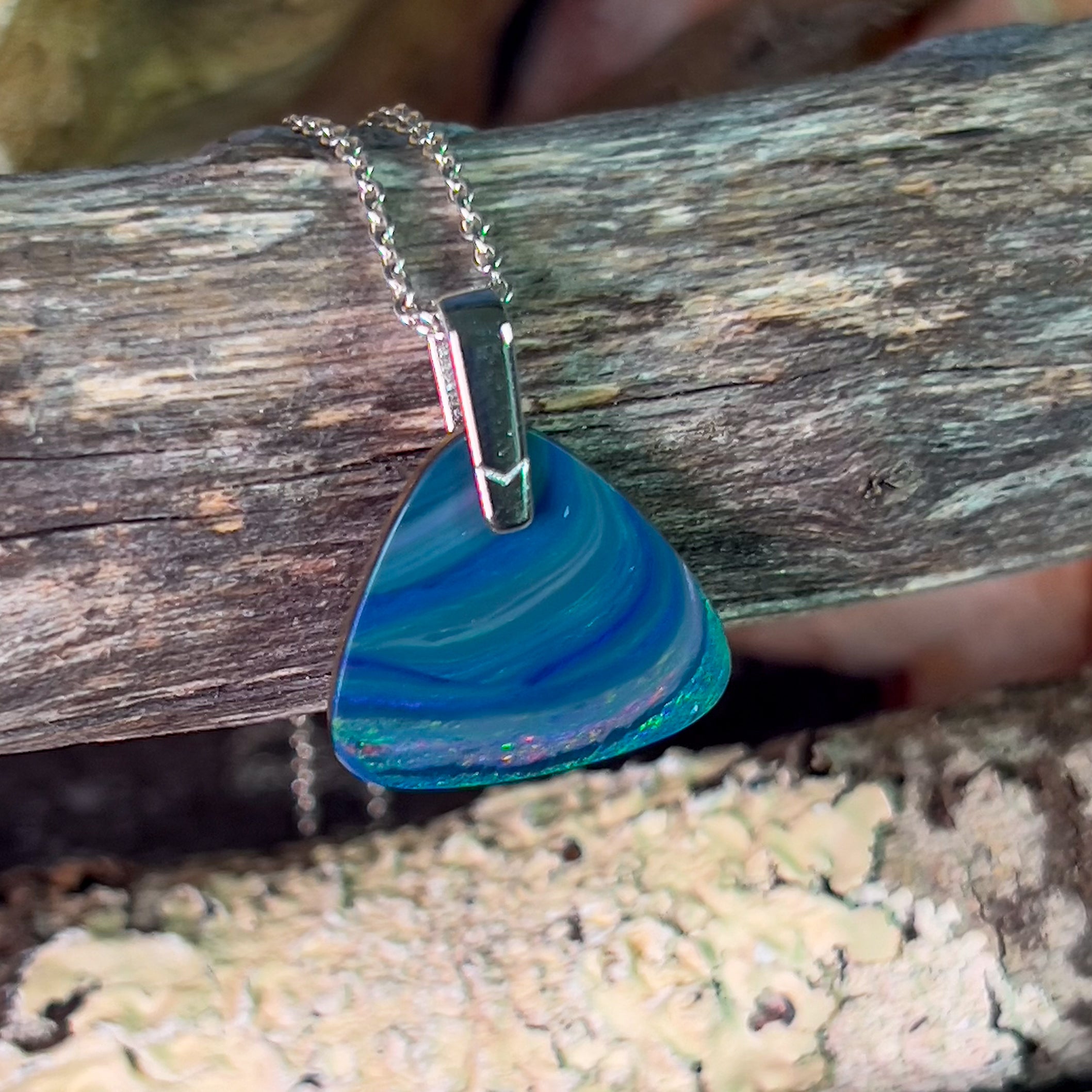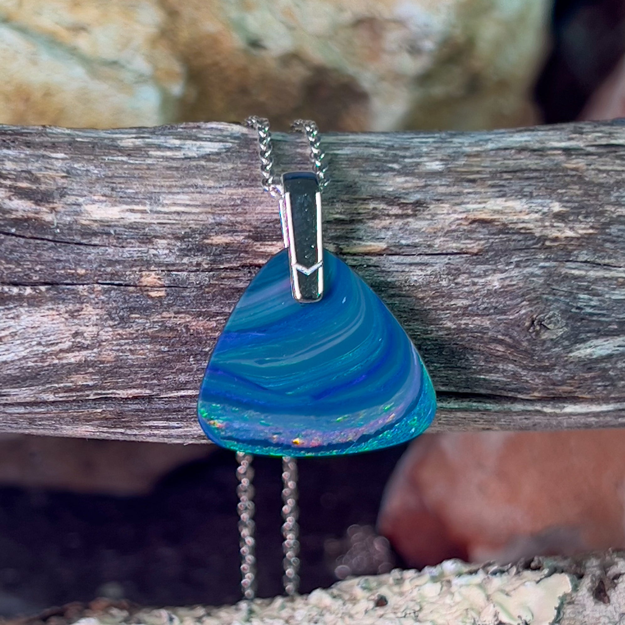 One Sterling Silver Opal pendant bezel set Wide Fan shape