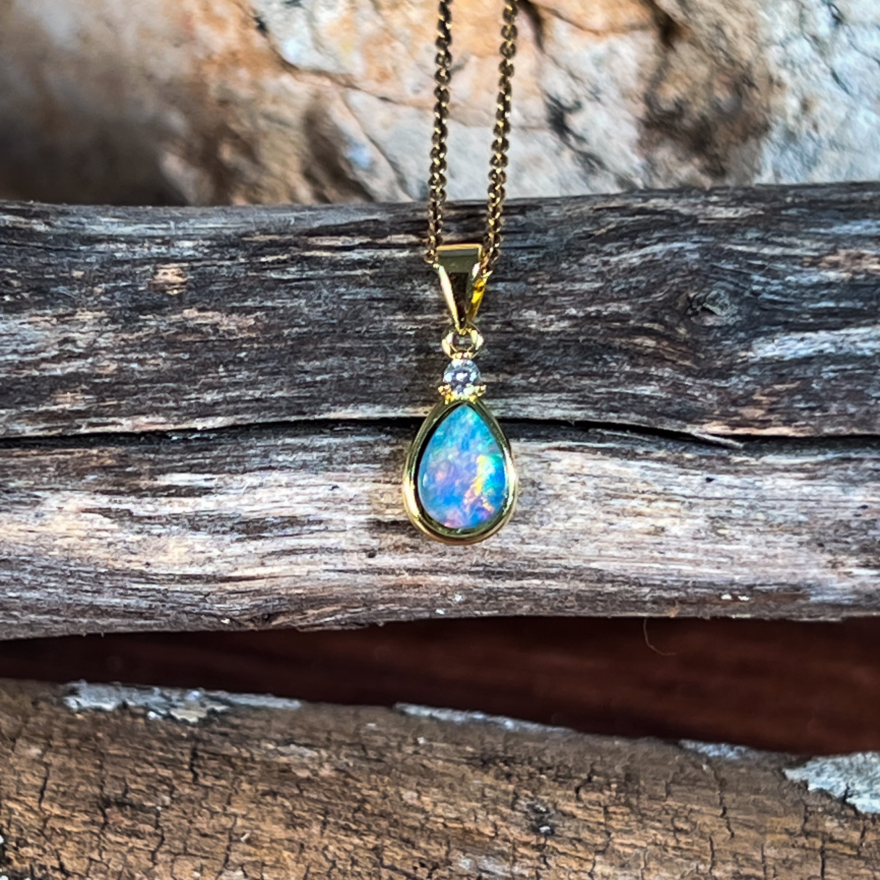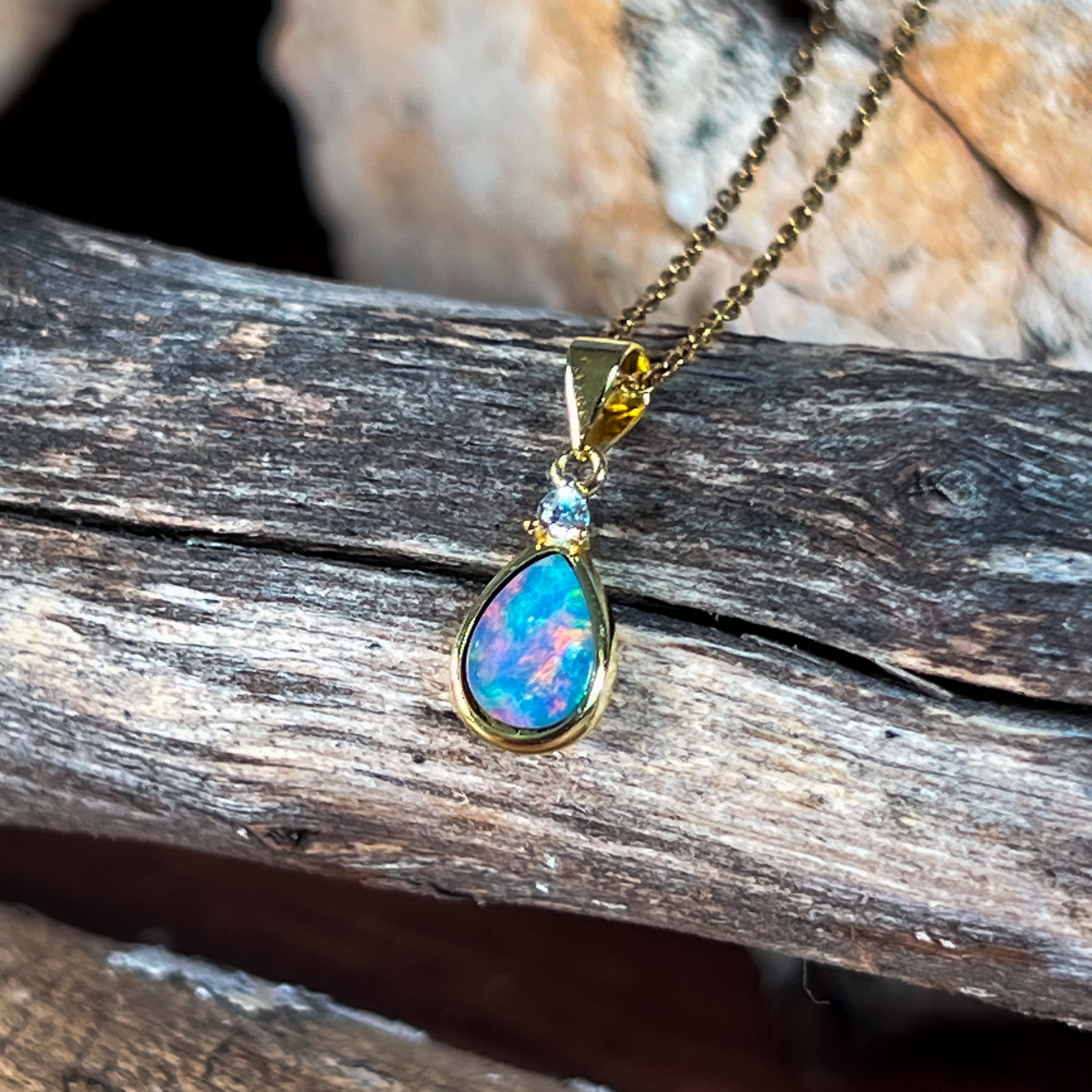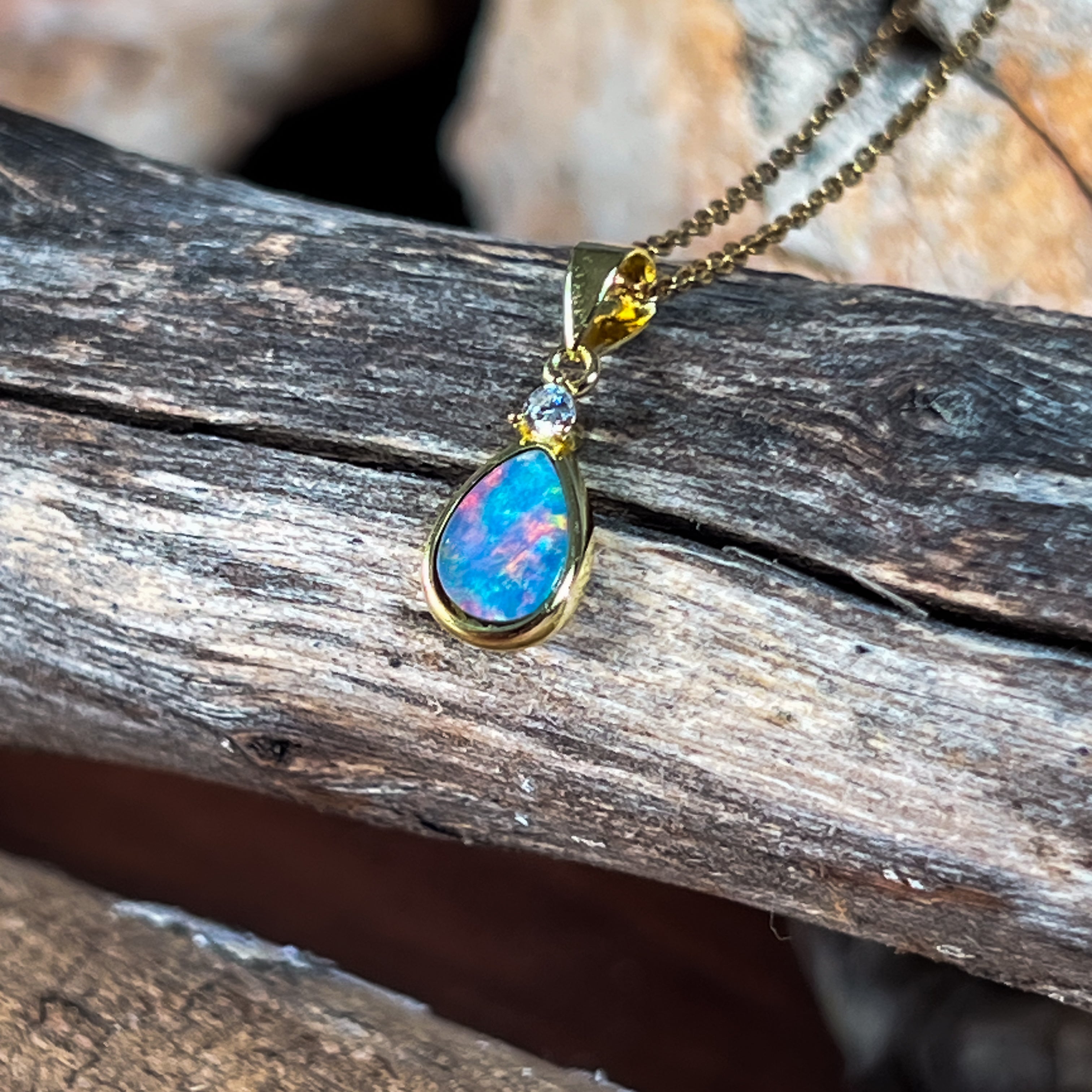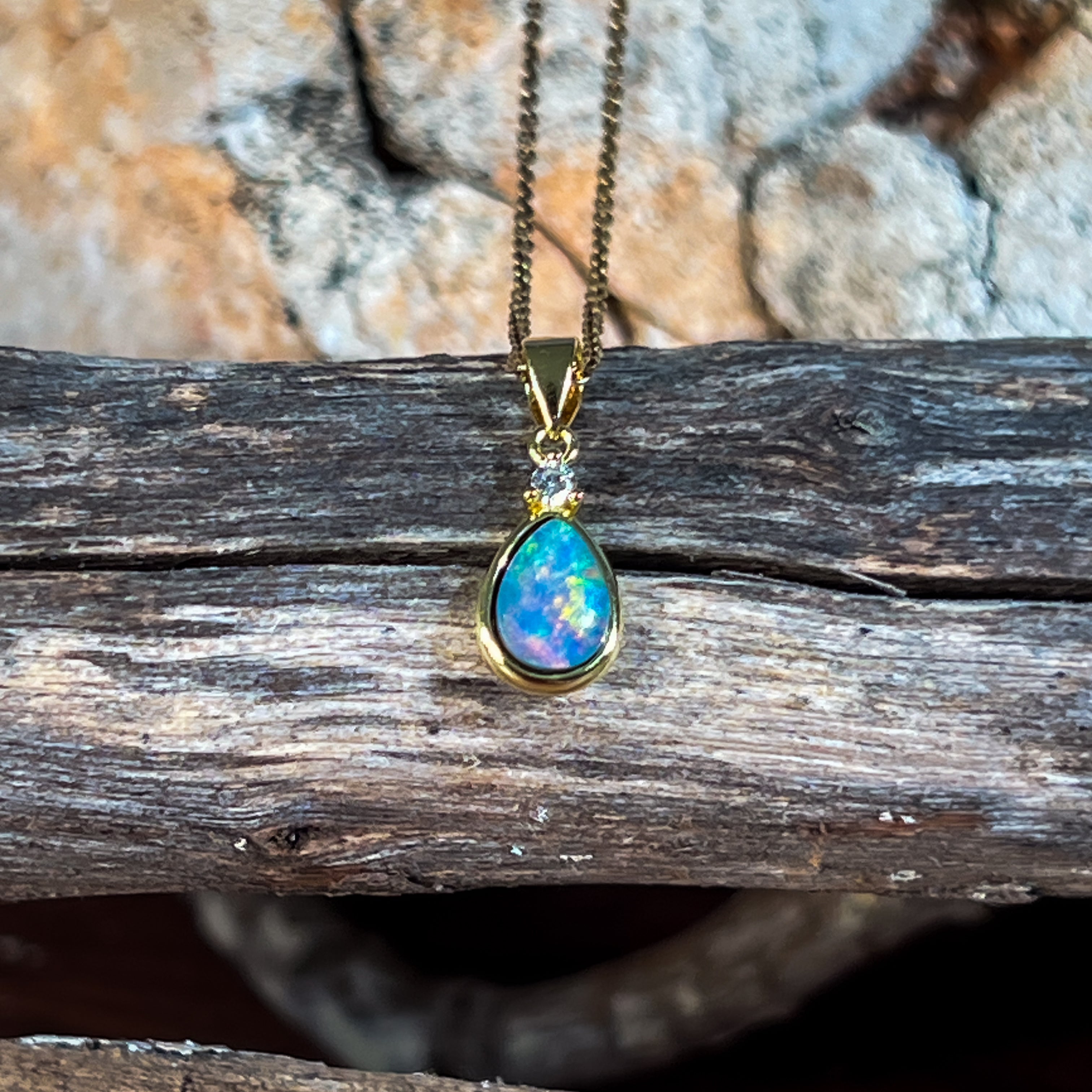 Yellow Gold plated silver pearshape bezel set opal triplet pendant