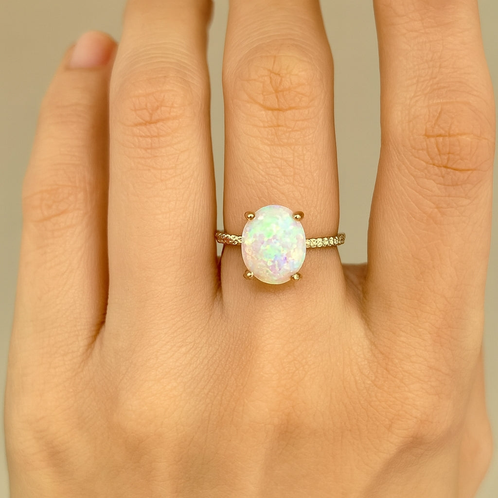 Sterling Silver Gold plated 8x6mm White Opal swirl ring