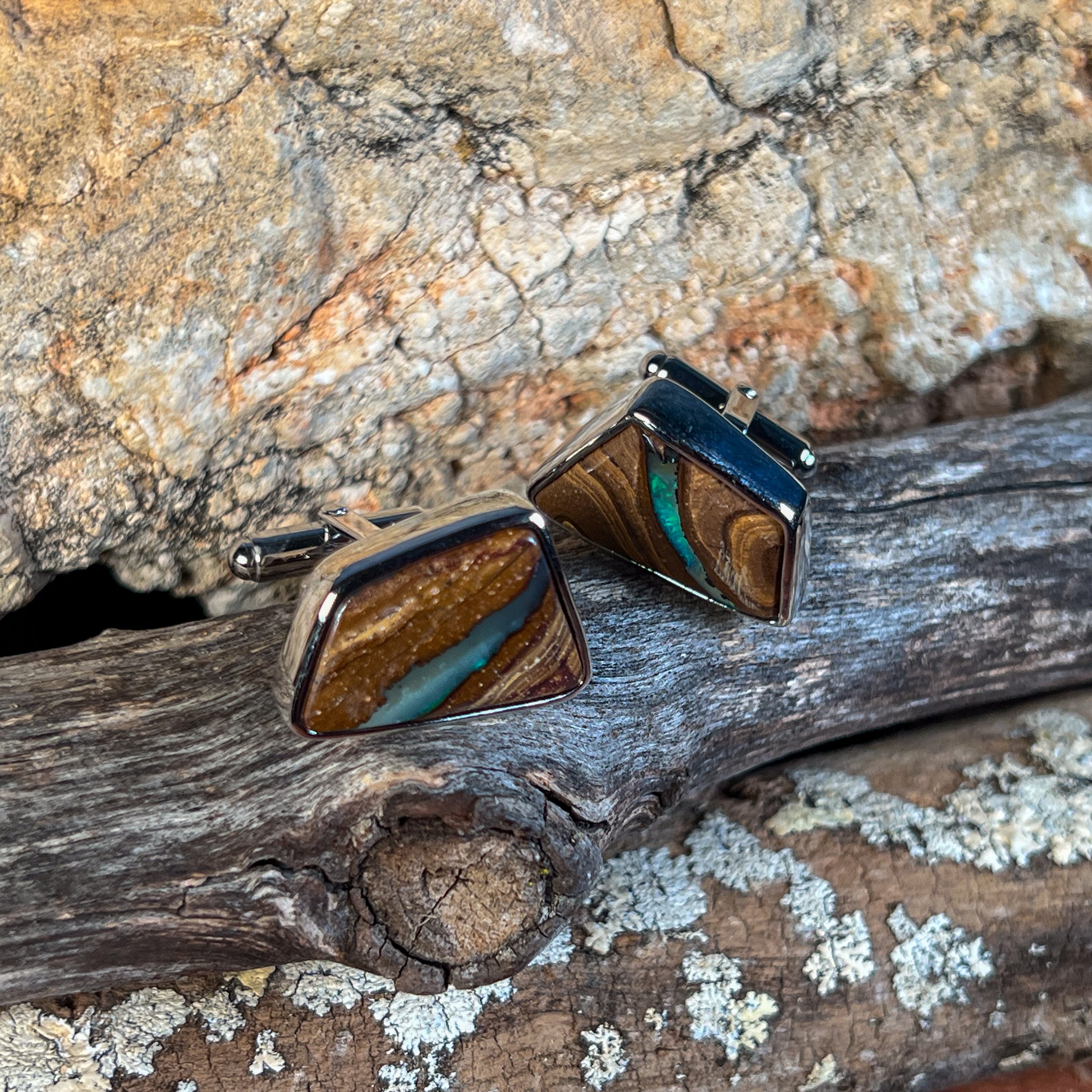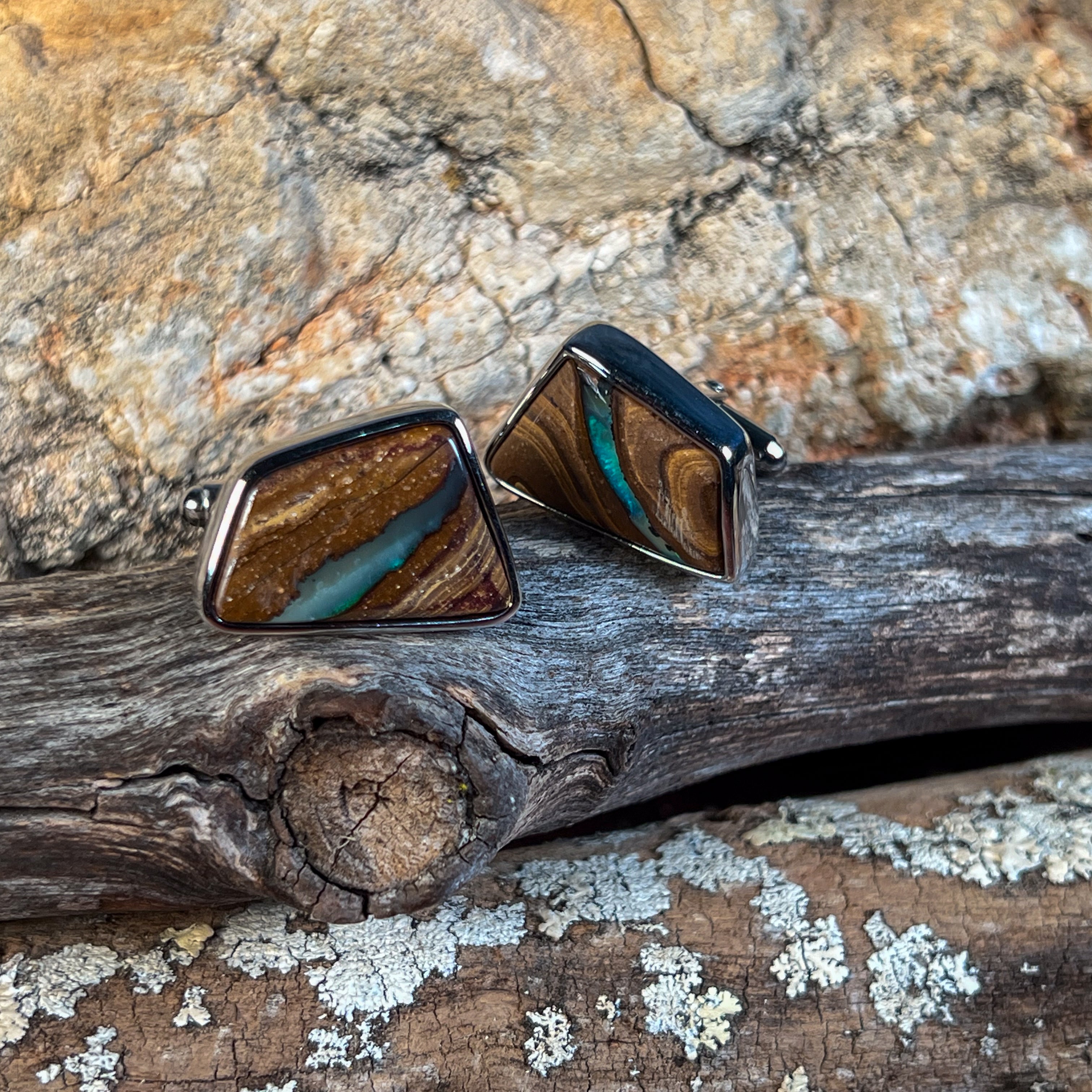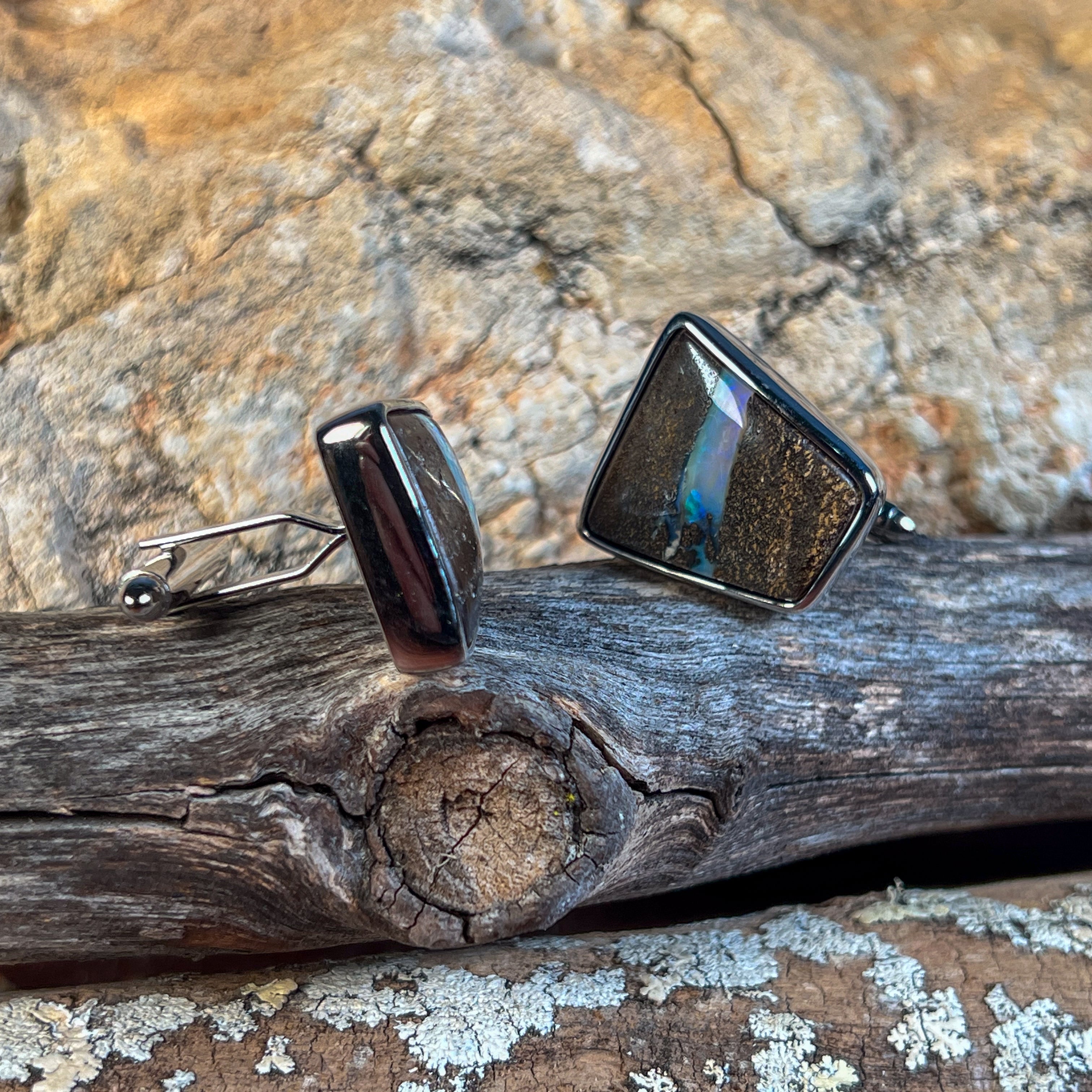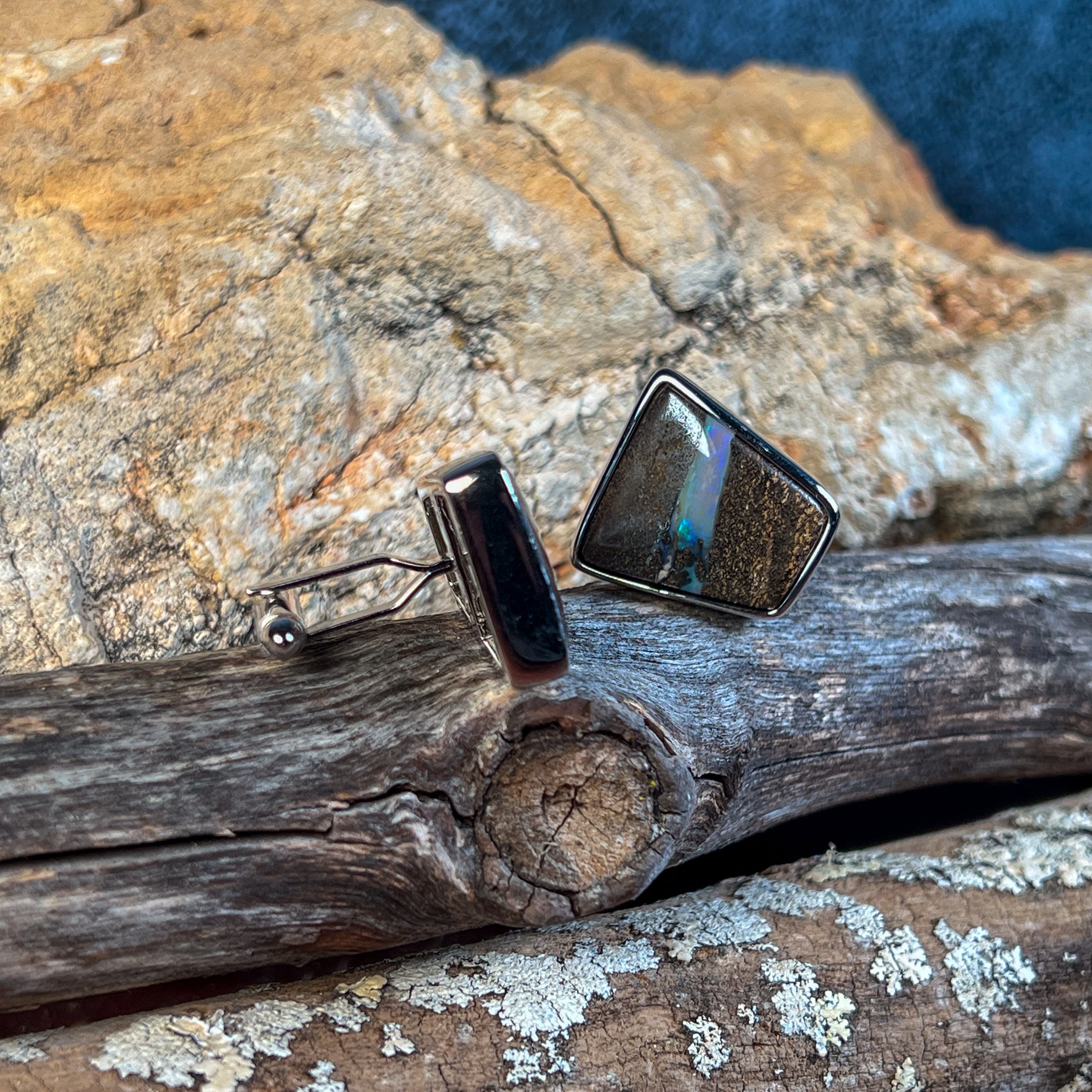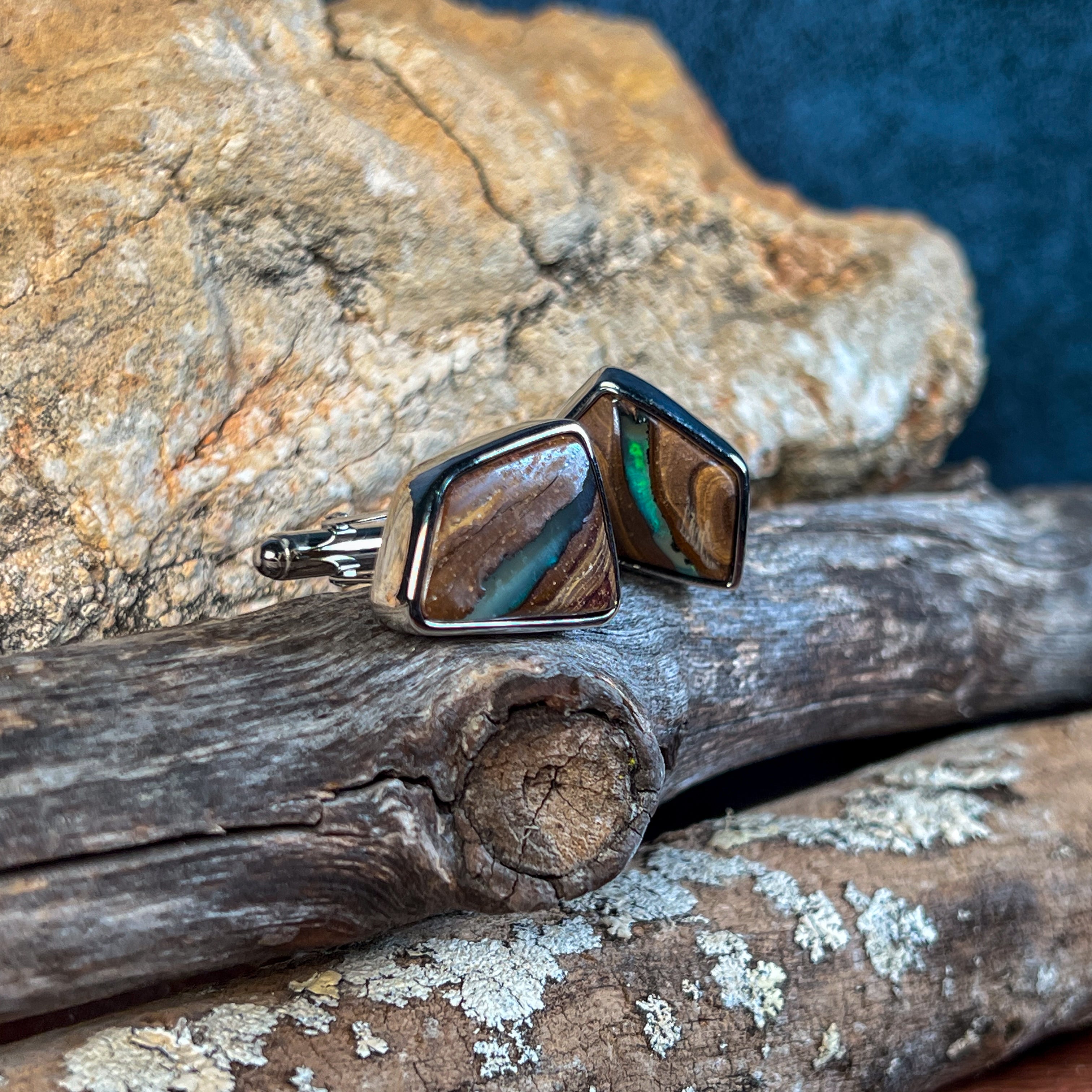 Sterling Silver Freeform Boulder Opal 26.4ct cufflinks