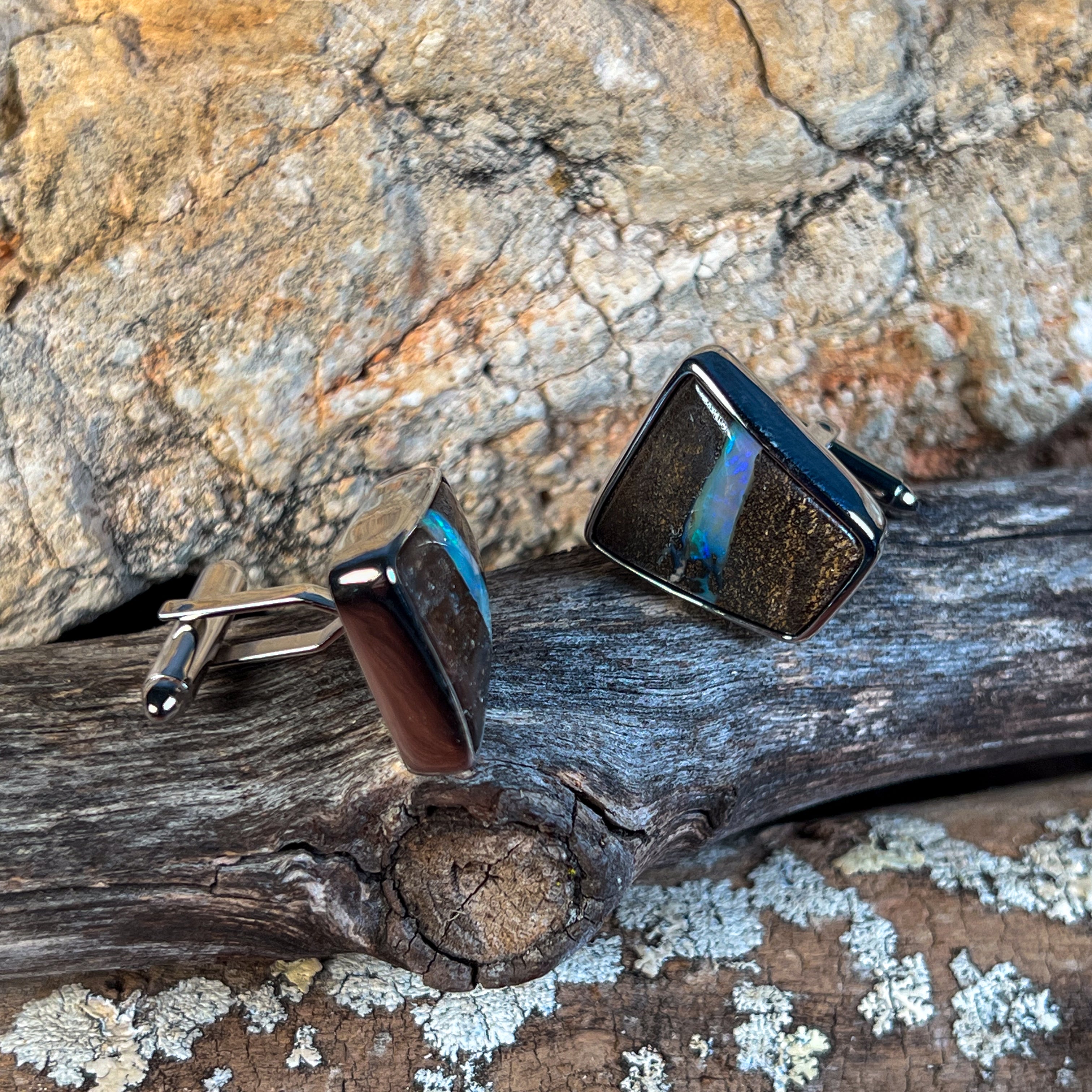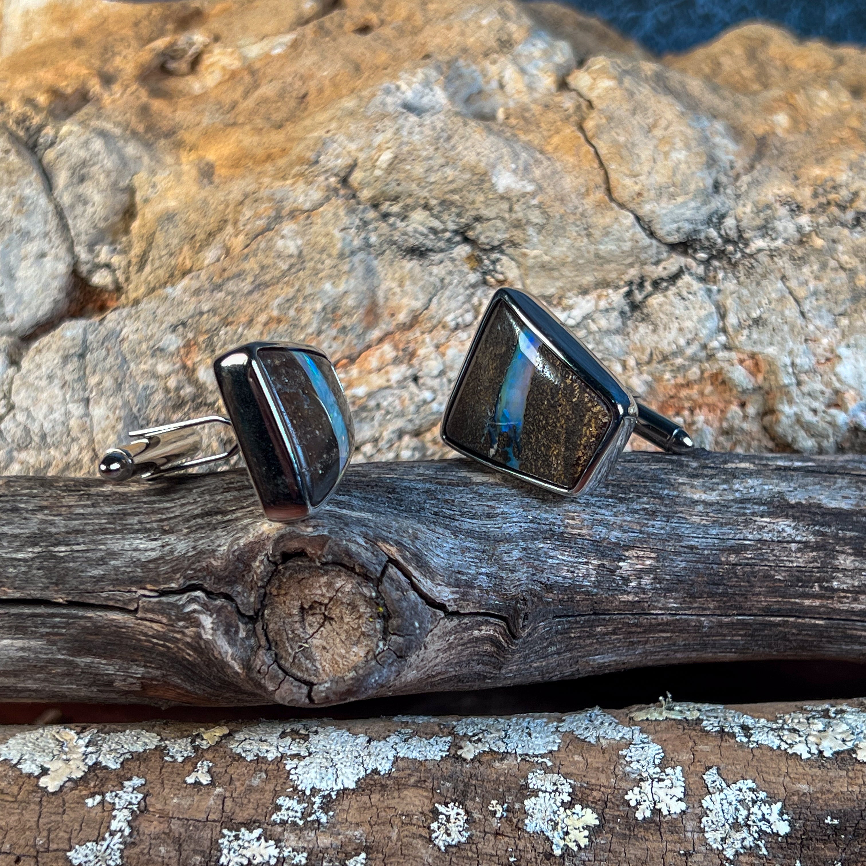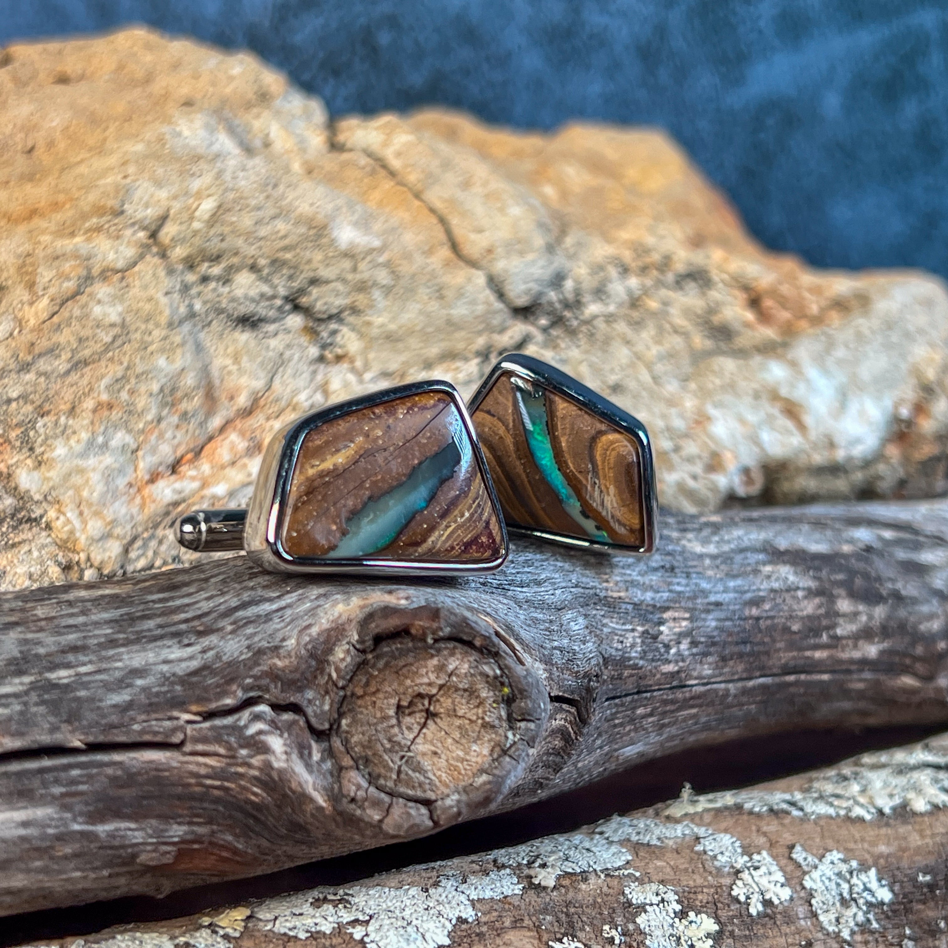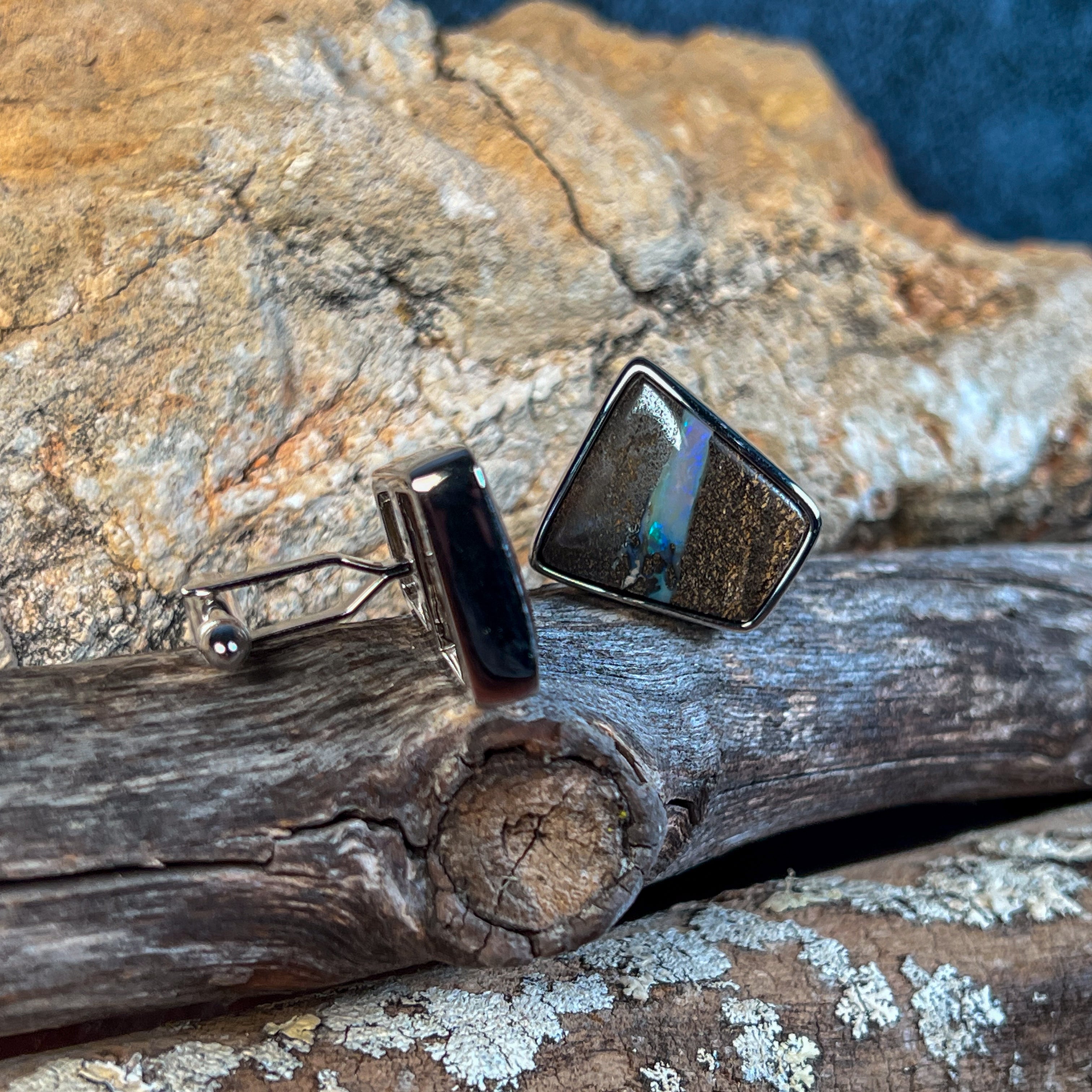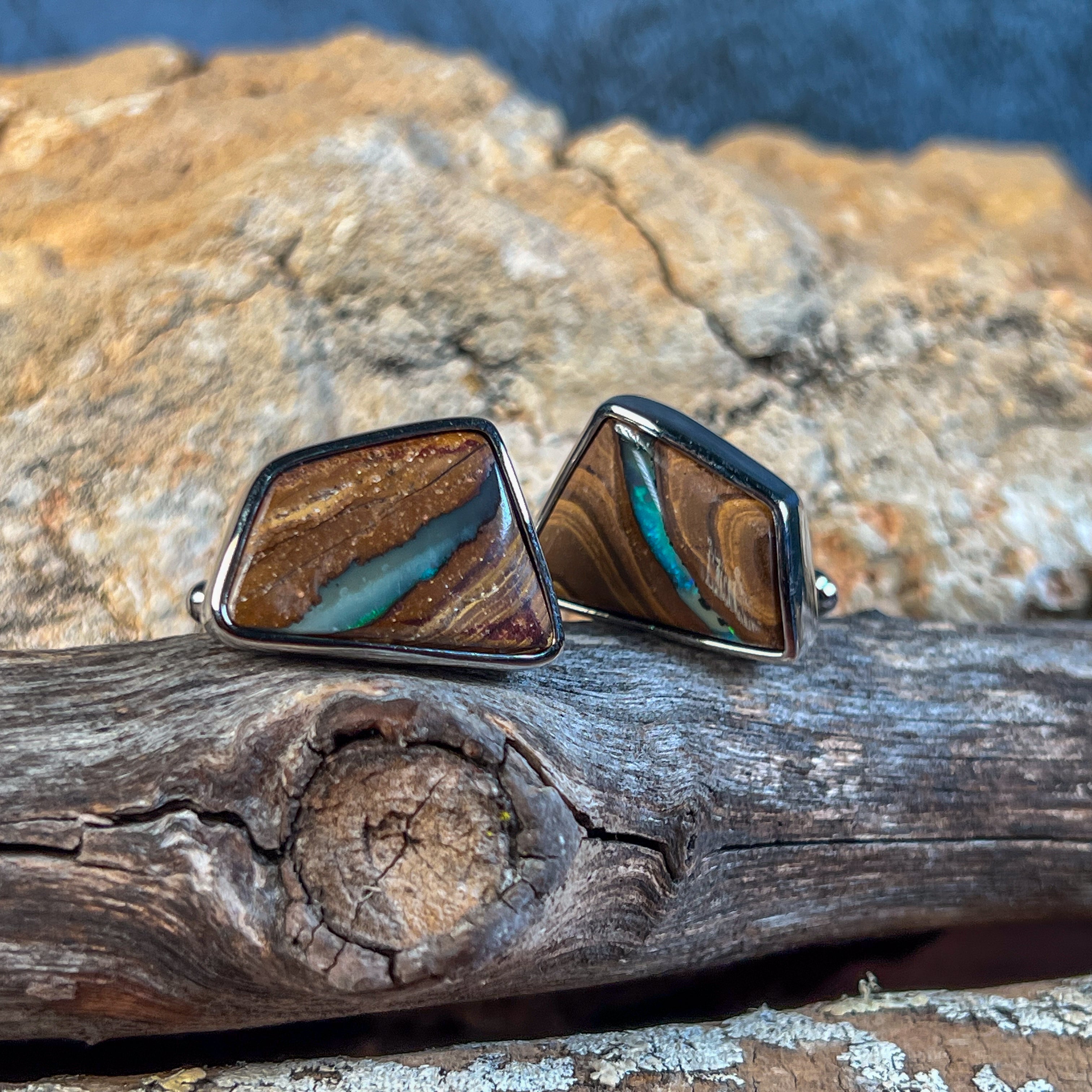 Sterling Silver Freeform Boulder Opal 26.4ct cufflinks