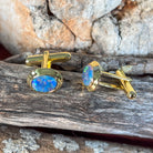 Gold plated sterling silver cufflinks double tube with 10x8mm Opal triplets