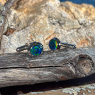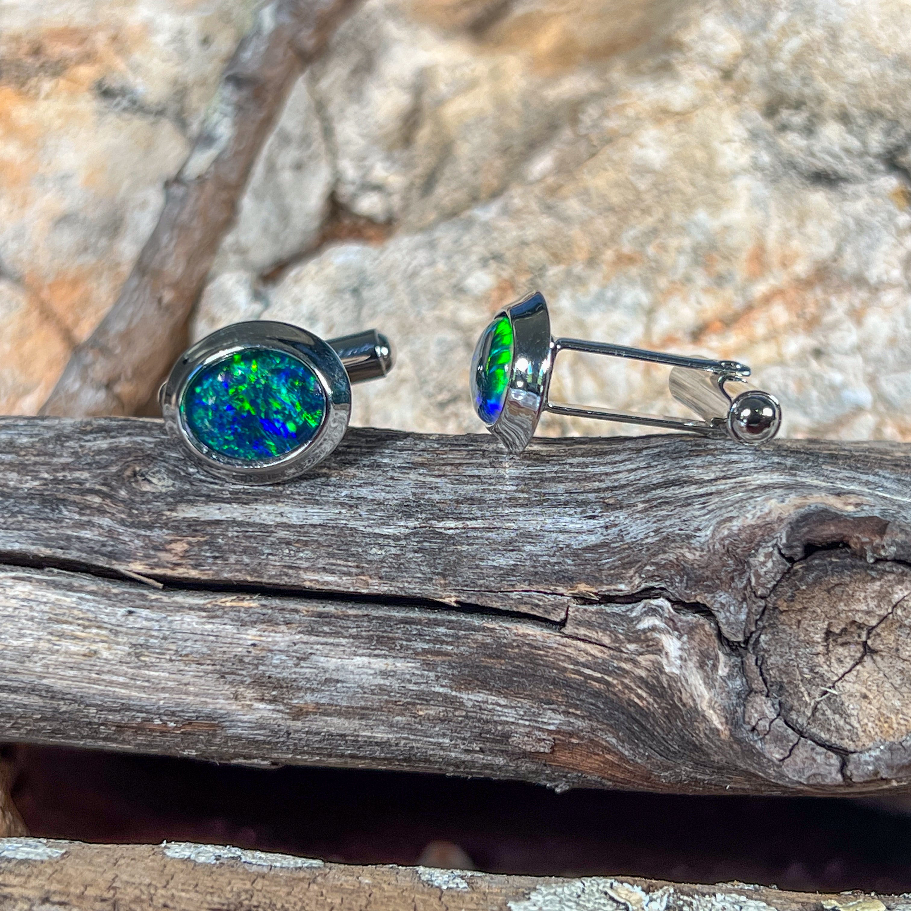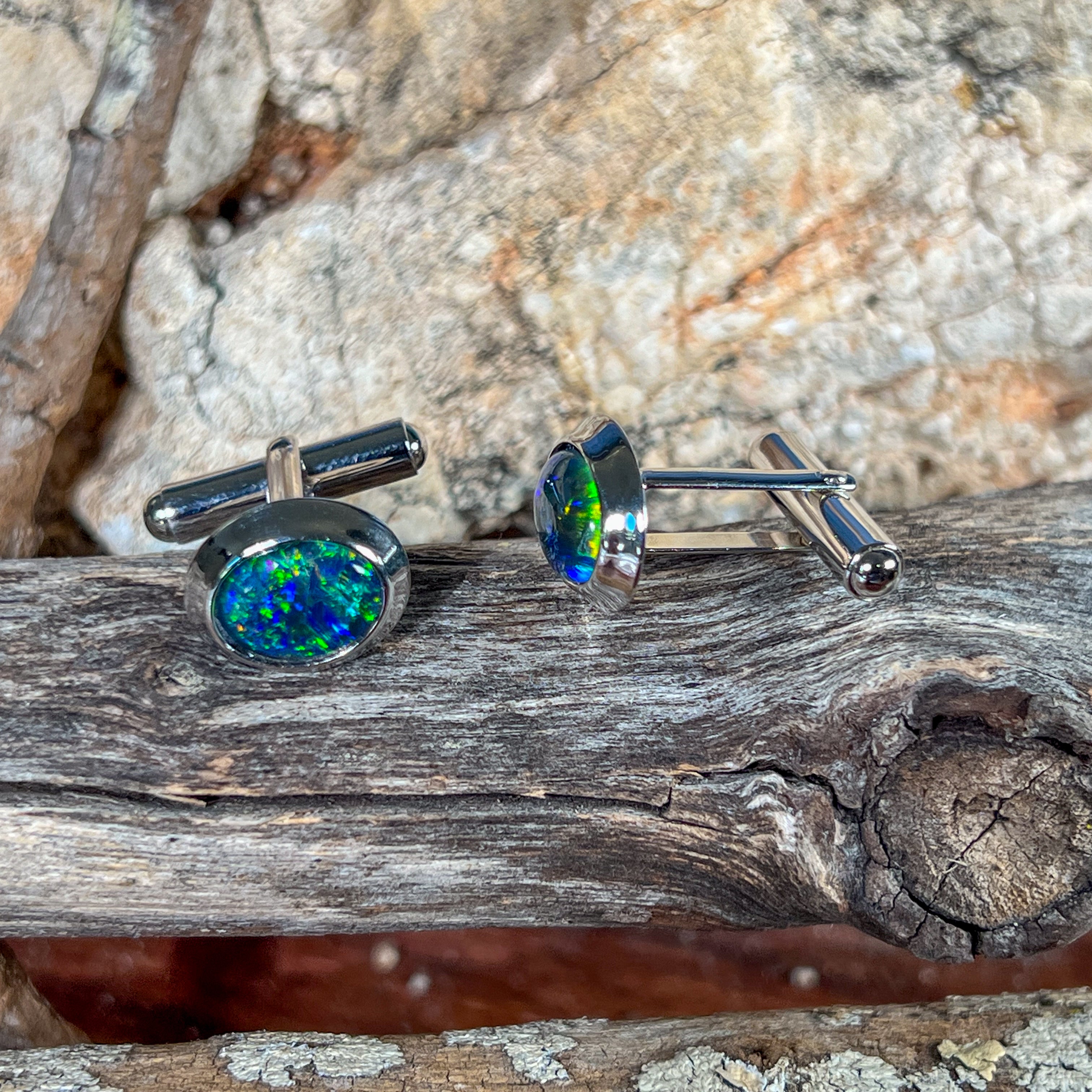 Sterling Silver Double bezel style Opal triplet 10x8mm Cufflinks