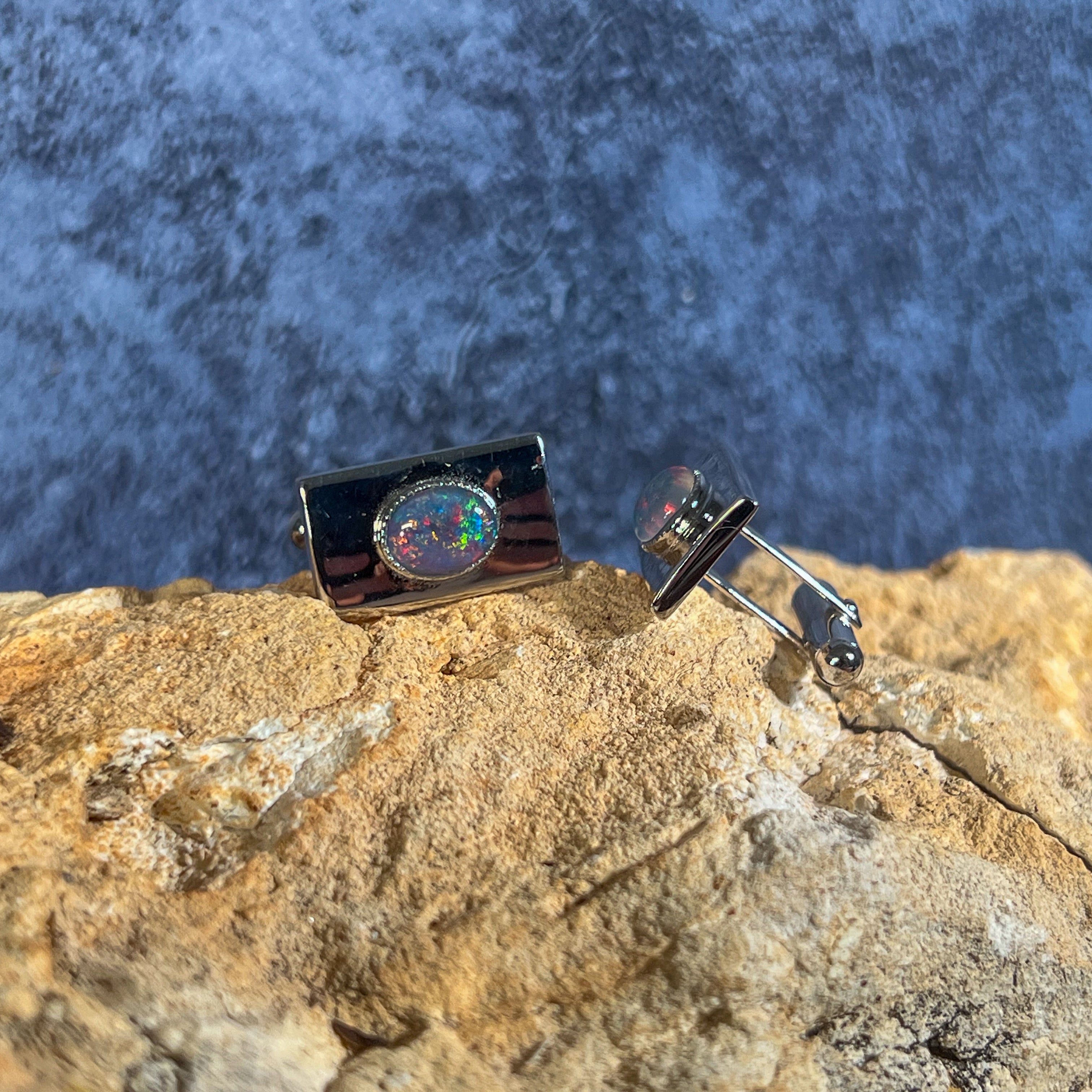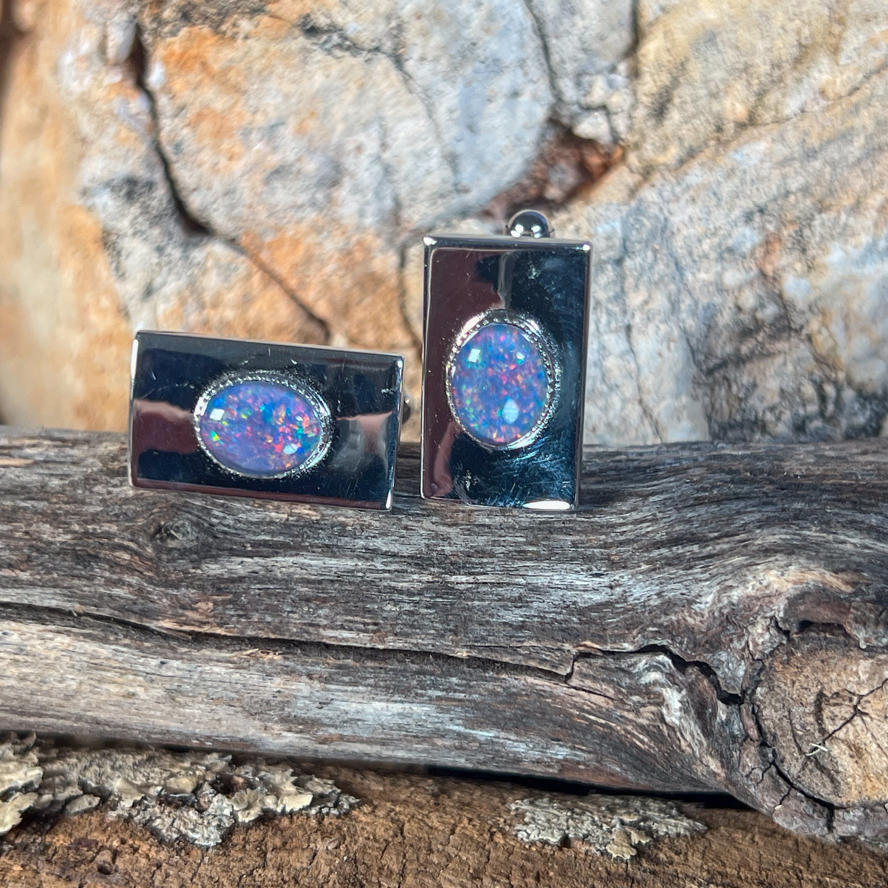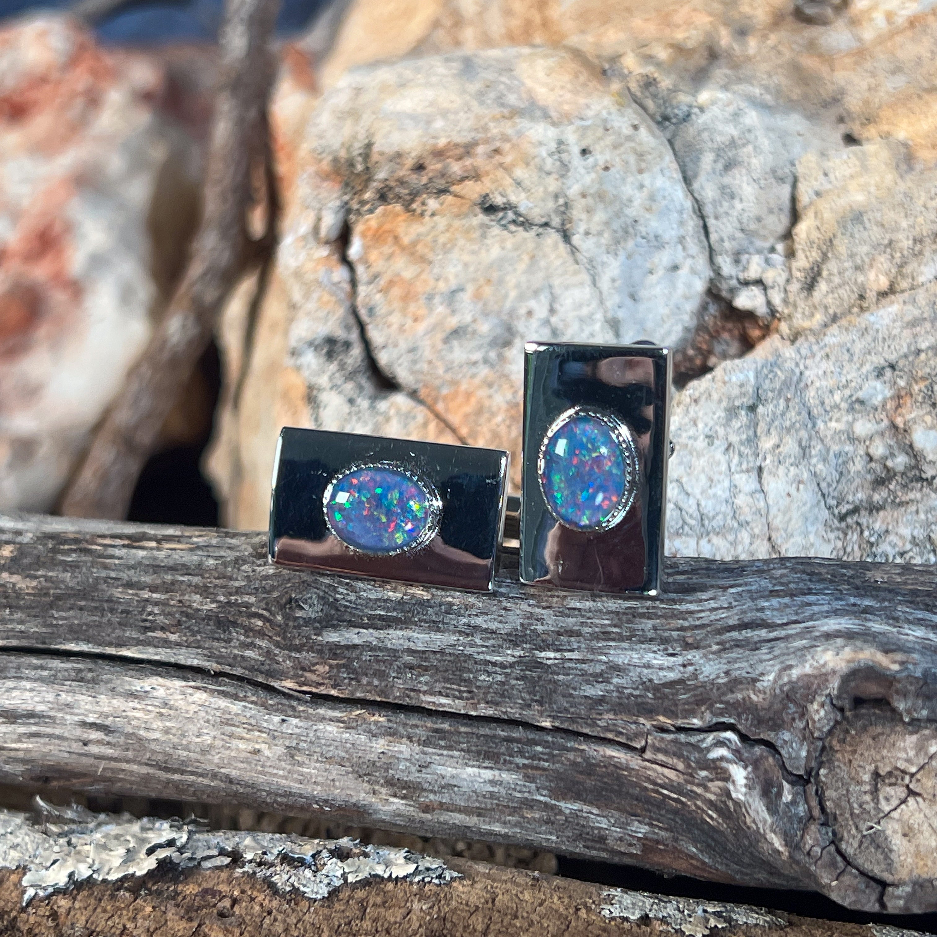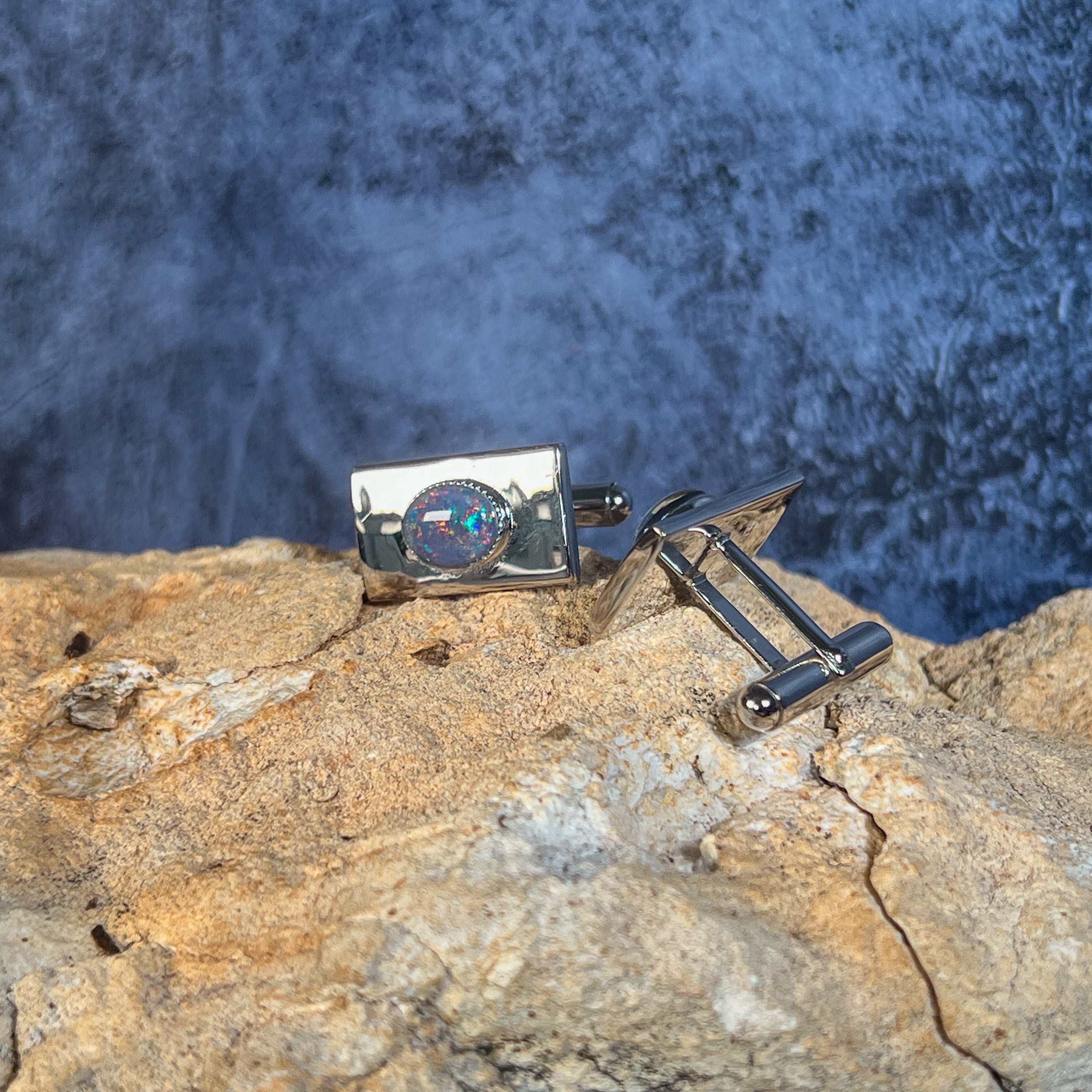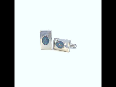 Sterling Silver Rectangular cufflink with 10x8mm Opal triplets
