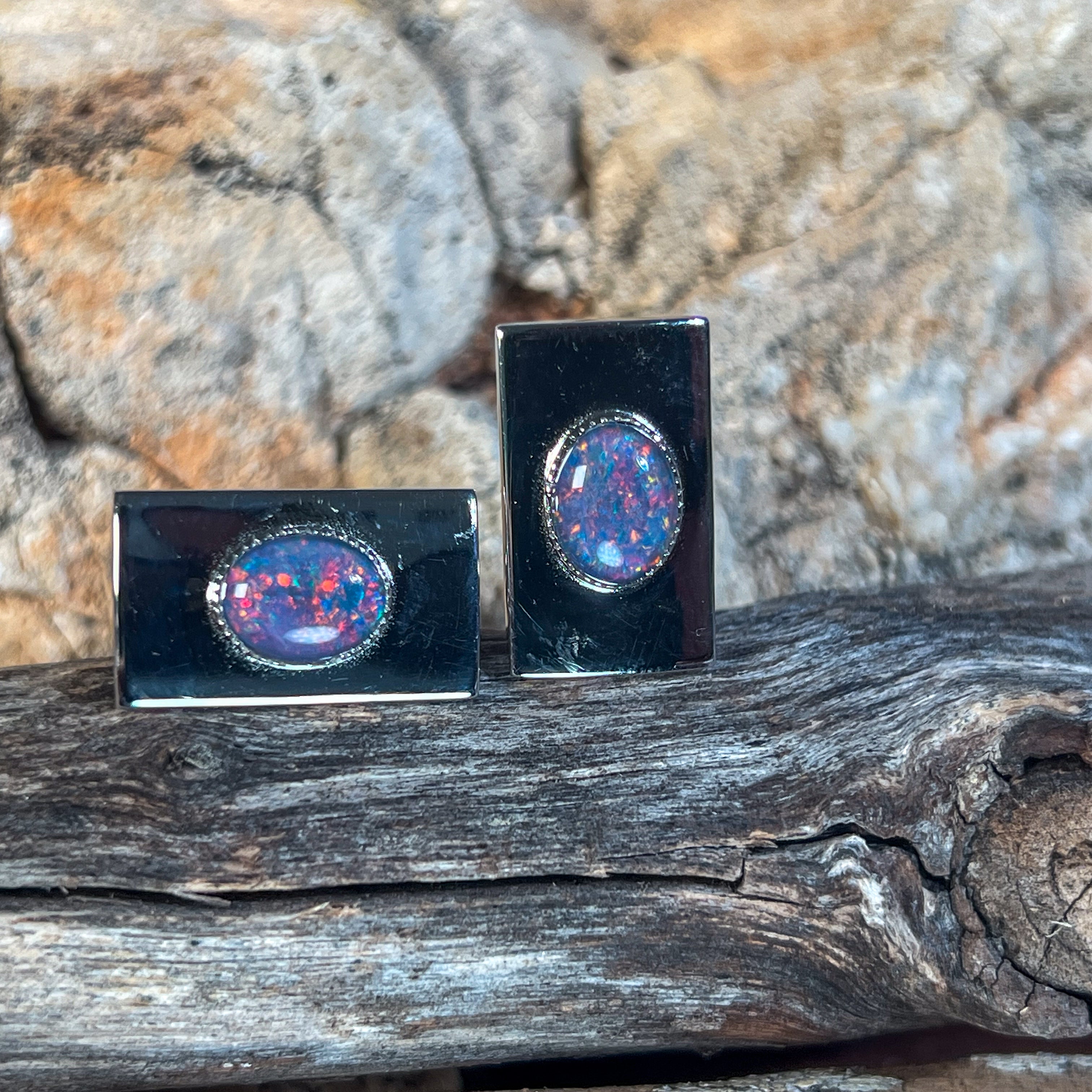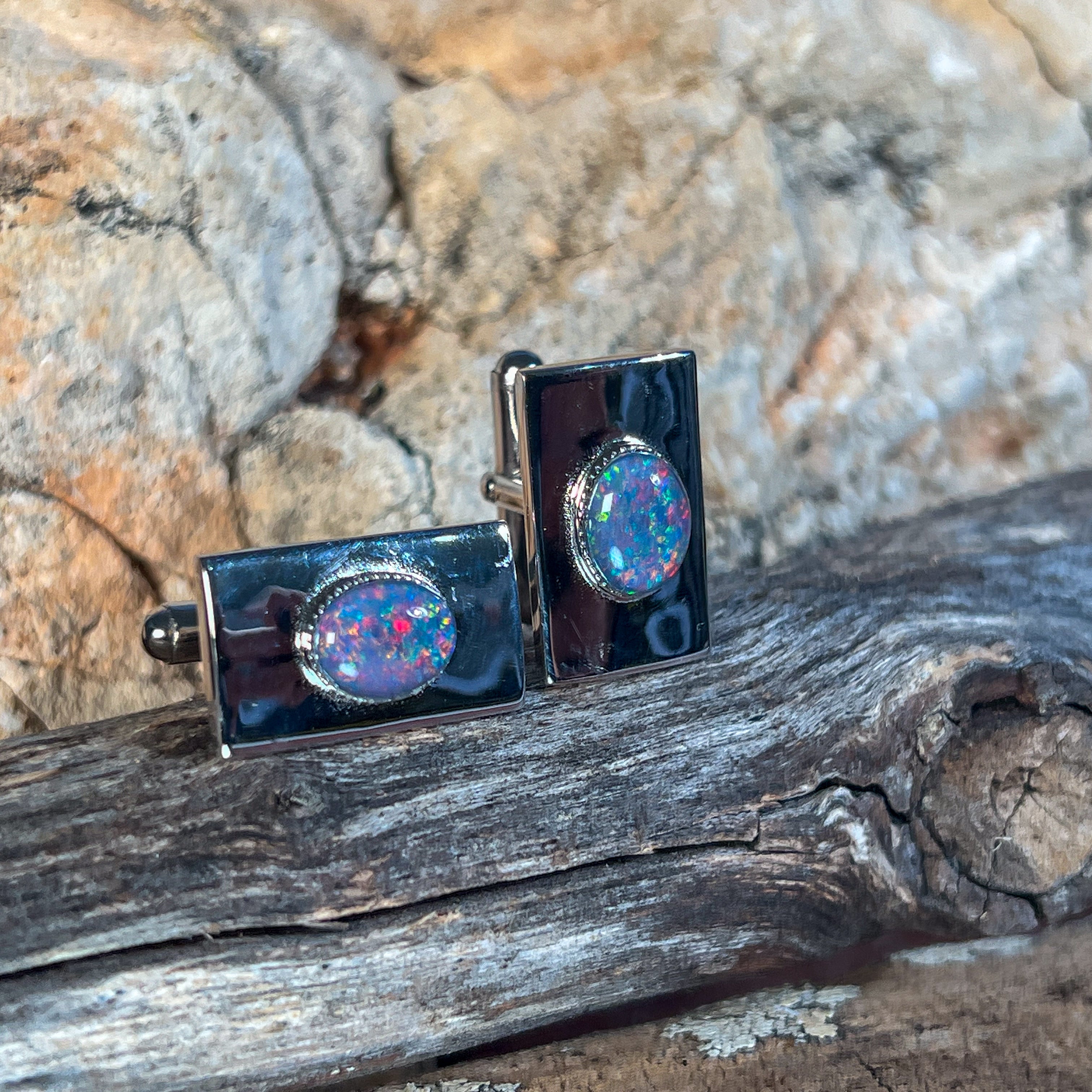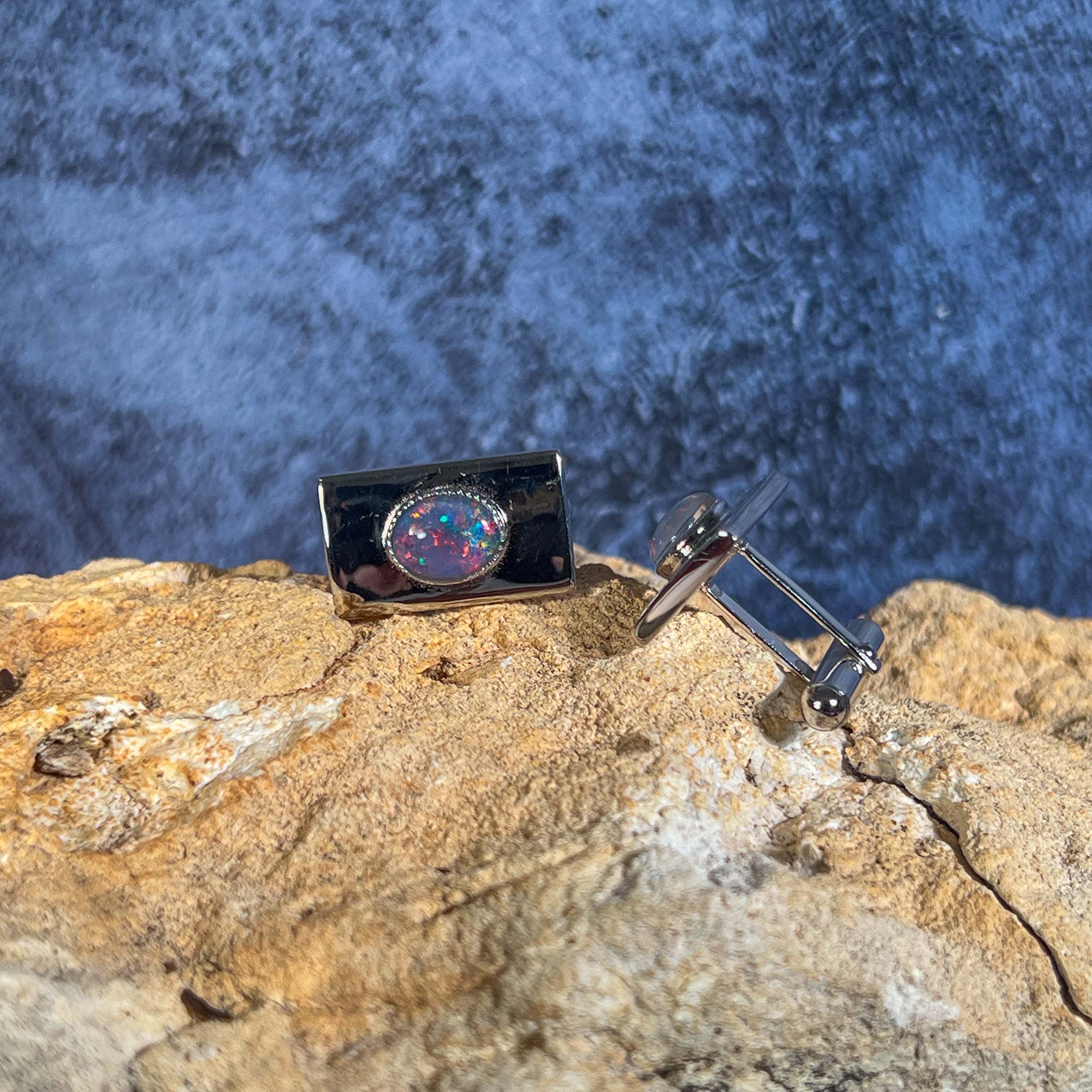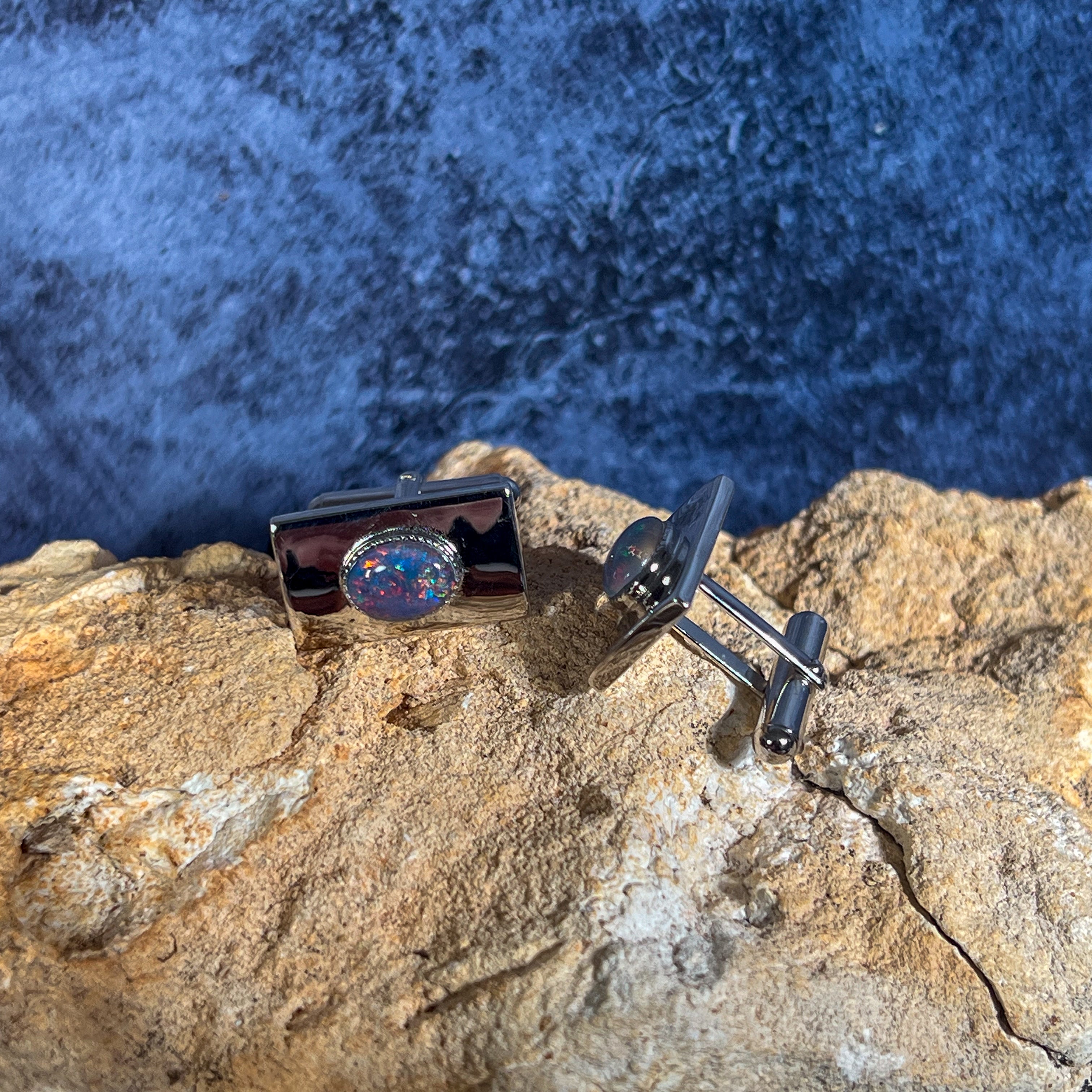 Sterling Silver Rectangular cufflink with 10x8mm Opal triplets