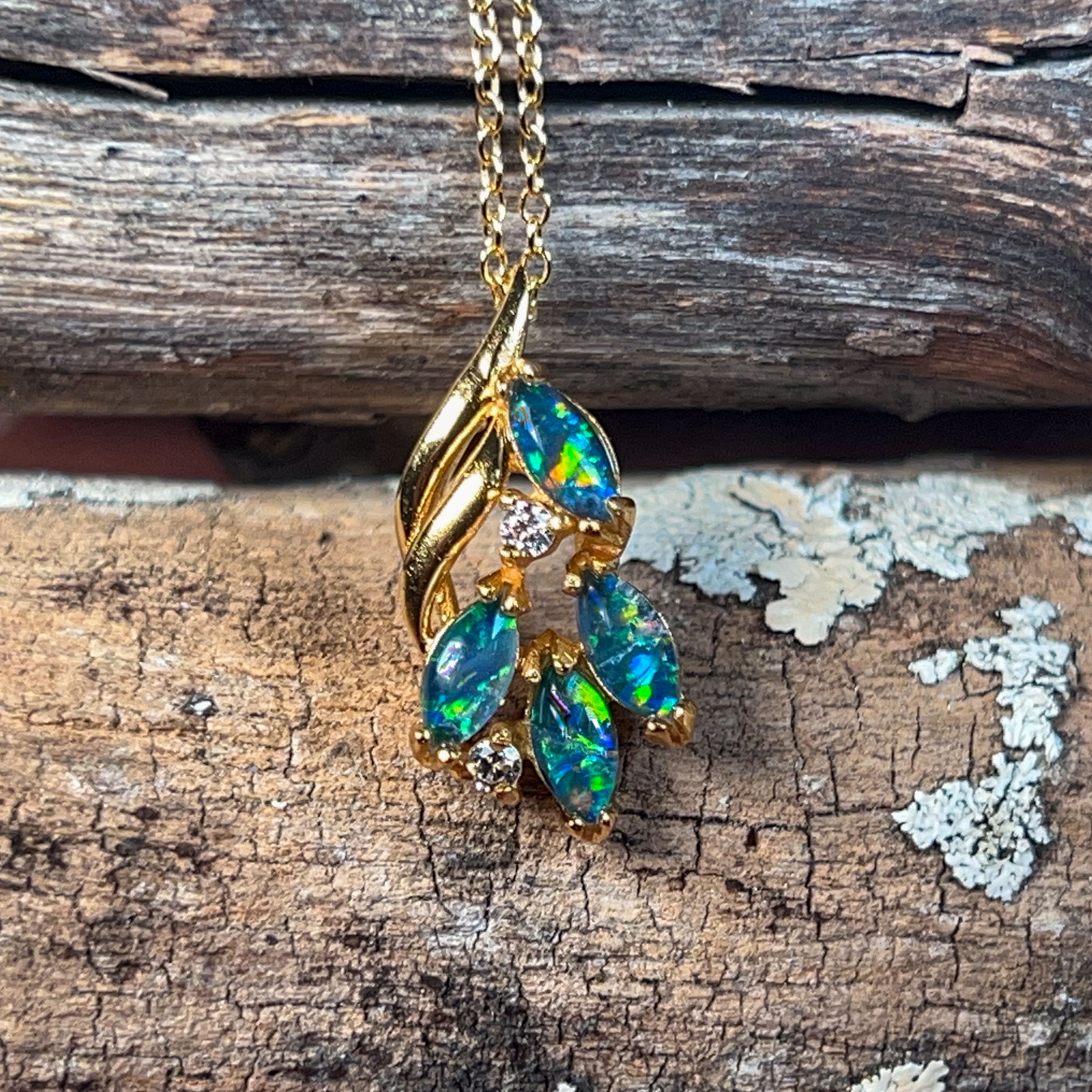 Gold Plated Silver flame design Opal triplet 6x3mm pendant