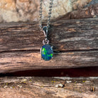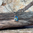 This elegant pendant features a dazzling 8x6mm opal triplet set in sterling silver with secure four-claw settings. Its timeless design highlights the opal’s vibrant colors, making it a perfect accessory to add subtle sophistication to any outfit. Crafted for lasting beauty and everyday wear, it’s an ideal piece to cherish or gift.