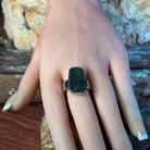 Make a bold statement with this stunning sterling silver ring, featuring a striking boulder opal that dances with mesmerizing green flashes. The secure bezel setting showcases the stone's natural beauty while keeping it protected for everyday wear. Perfect for those who love to turn heads and aren't afraid to let their jewellery do the talking. A true conversation starter that brings colour and personality to any look.