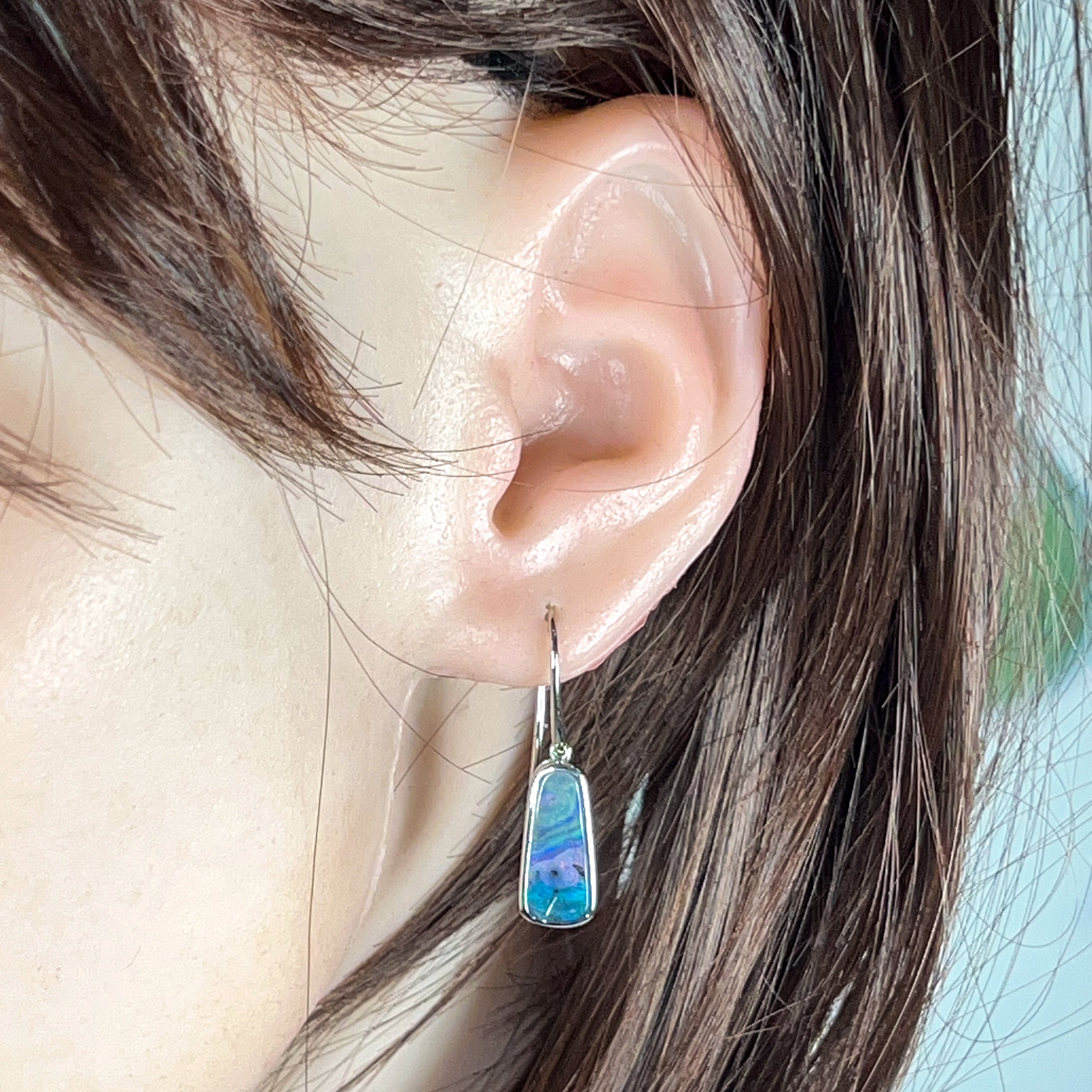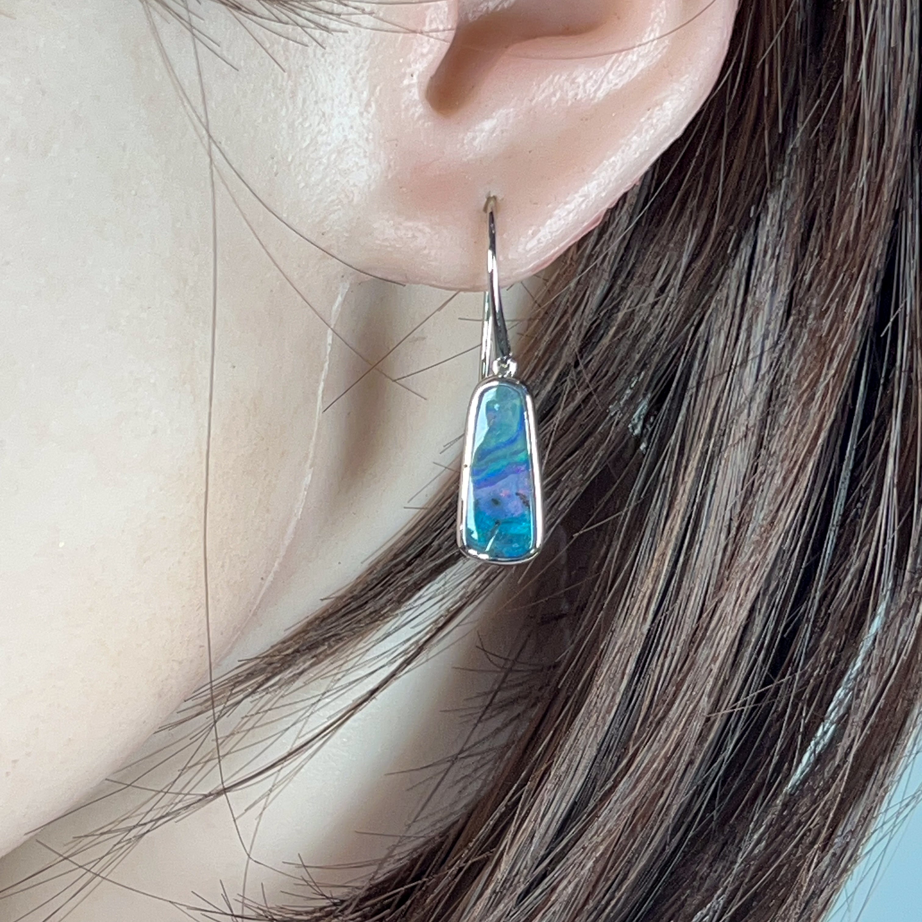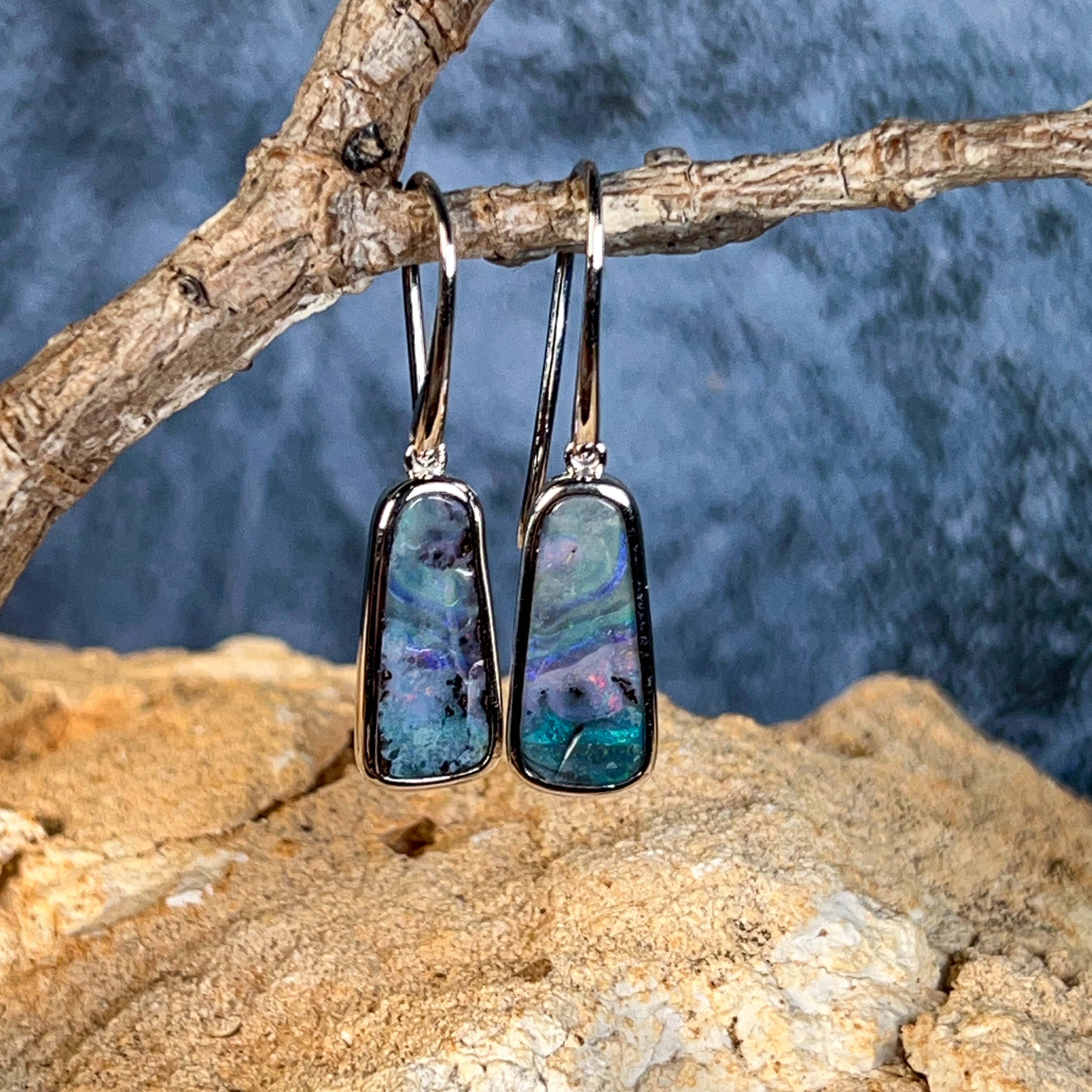 Catch everyone's eye with these playful sterling silver drop earrings featuring stunning boulder opals that dance with every move. The natural colour play in each stone makes them genuinely one-of-a-kind, while the smooth hook style keeps them comfortable for all-day wear. Perfect for adding a touch of Australian gemstone magic to your everyday look or special occasions.