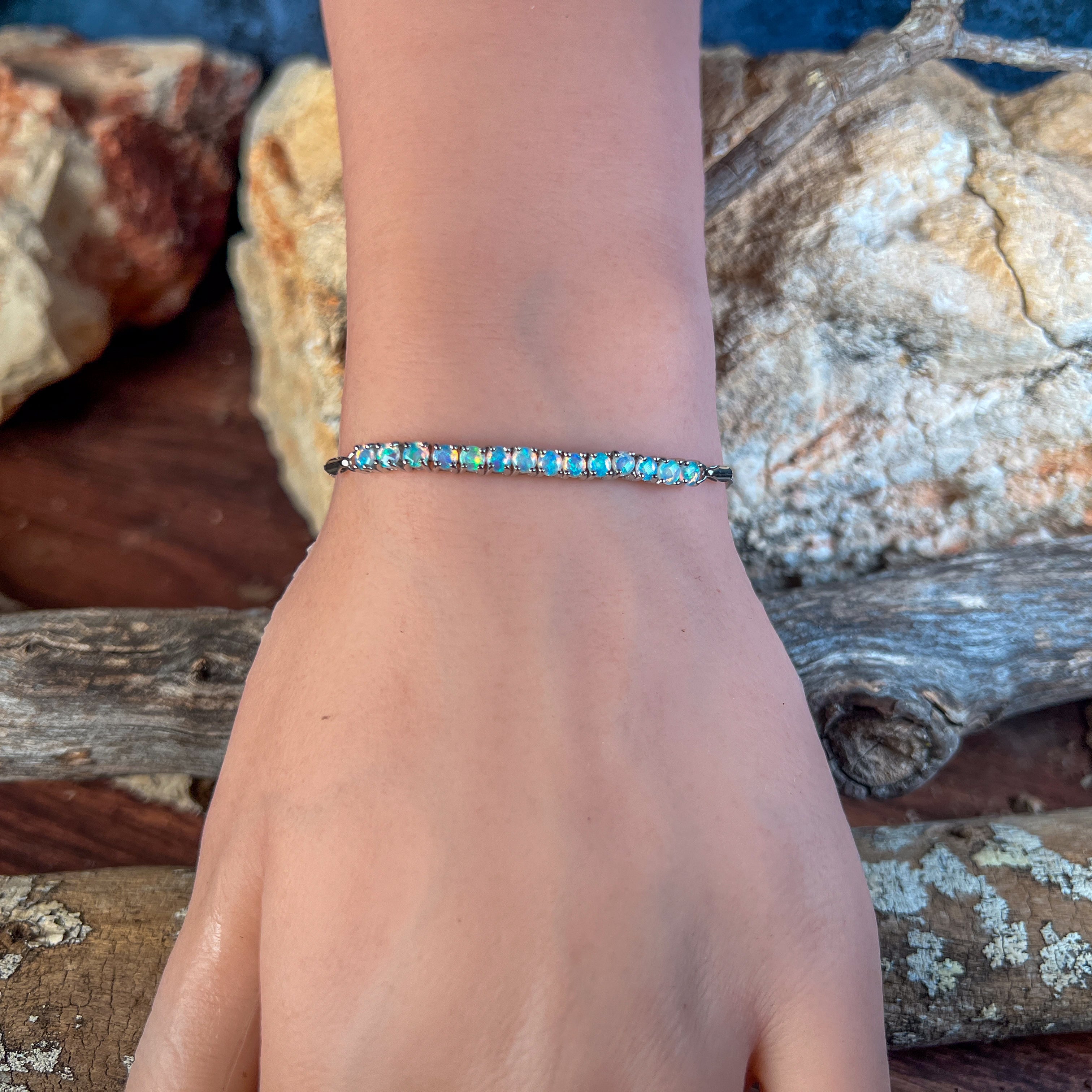 Sterling Silver adjustable Opal 3.5mm tennis bracelet style