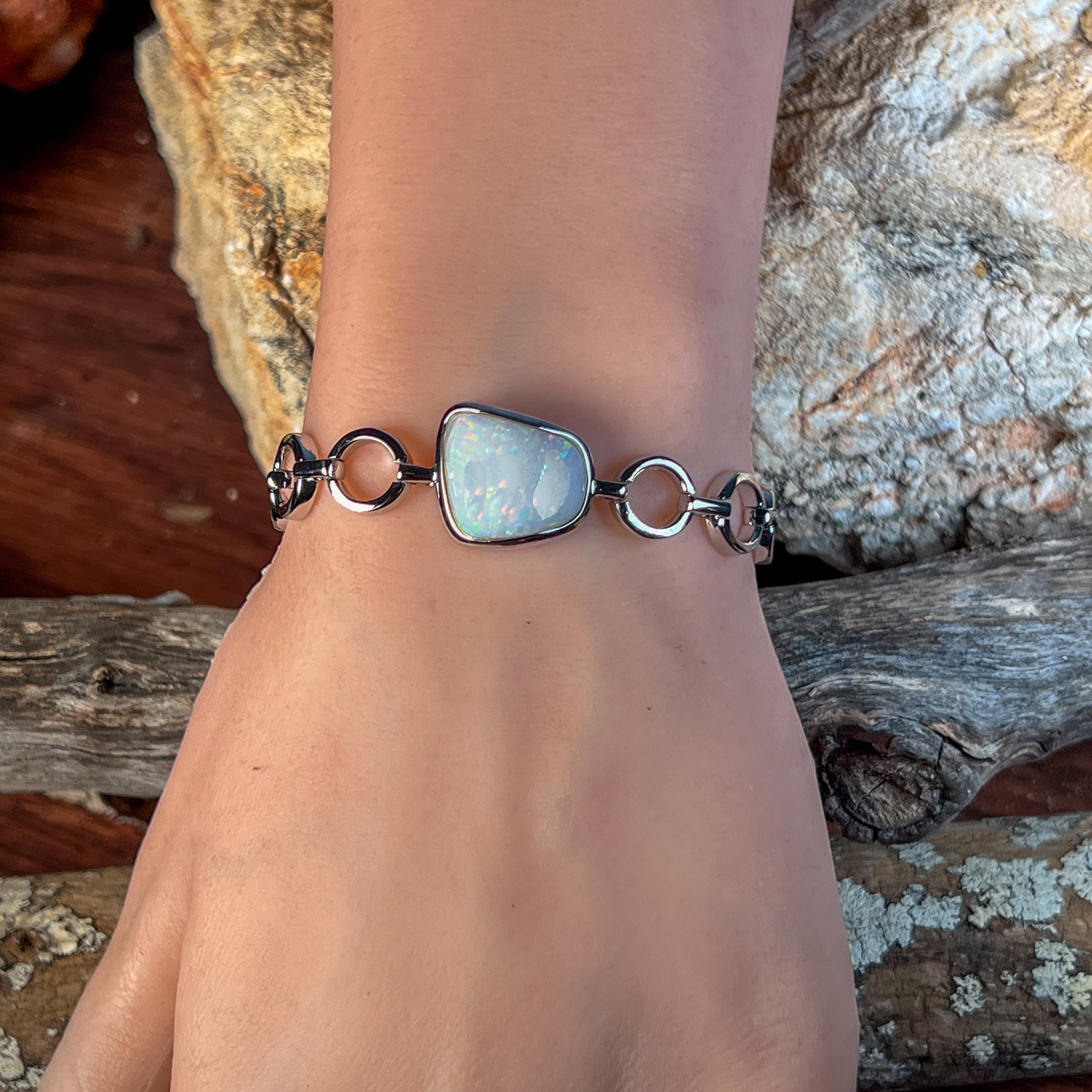 Sterling Silver Oval Opal triplet solitaire bracelet
