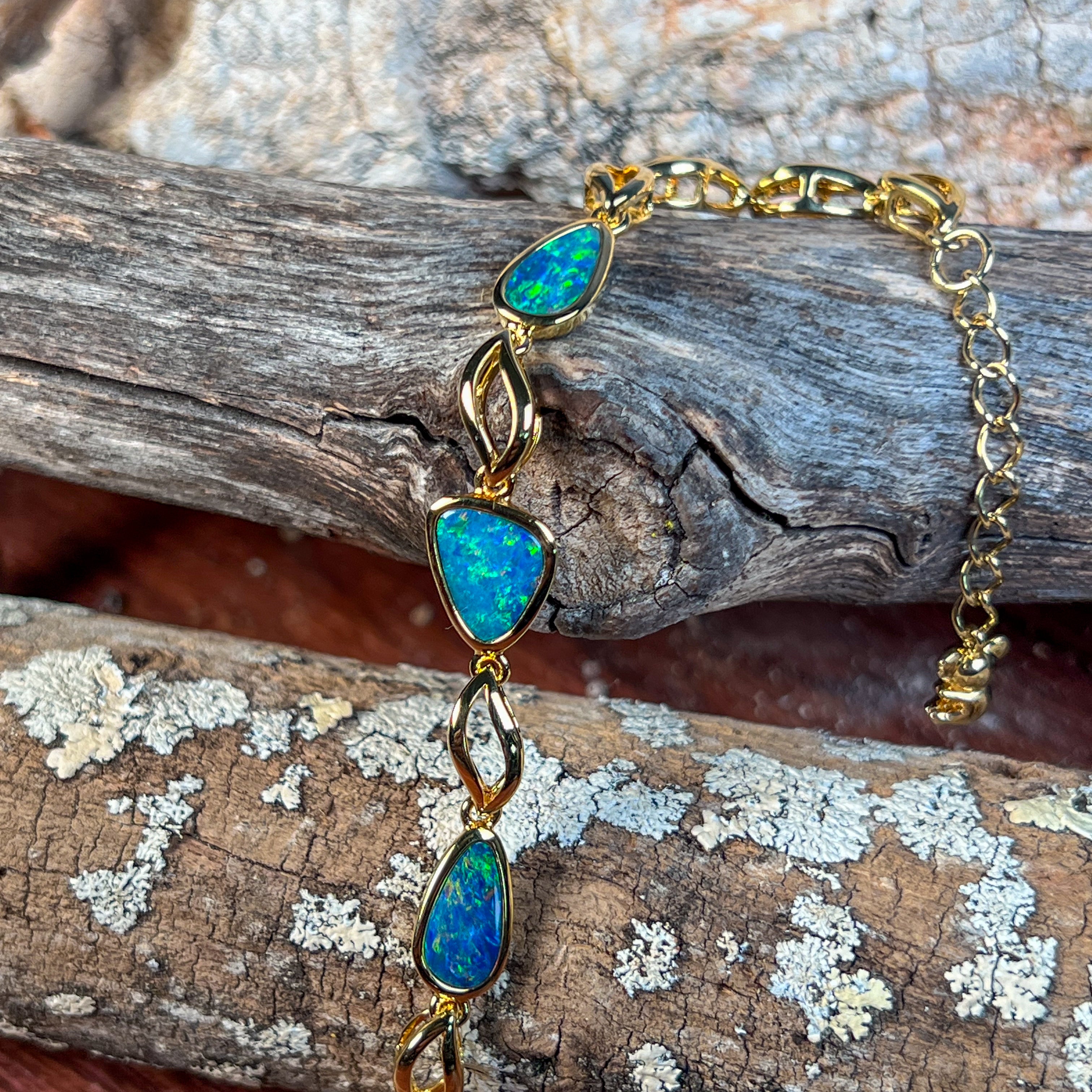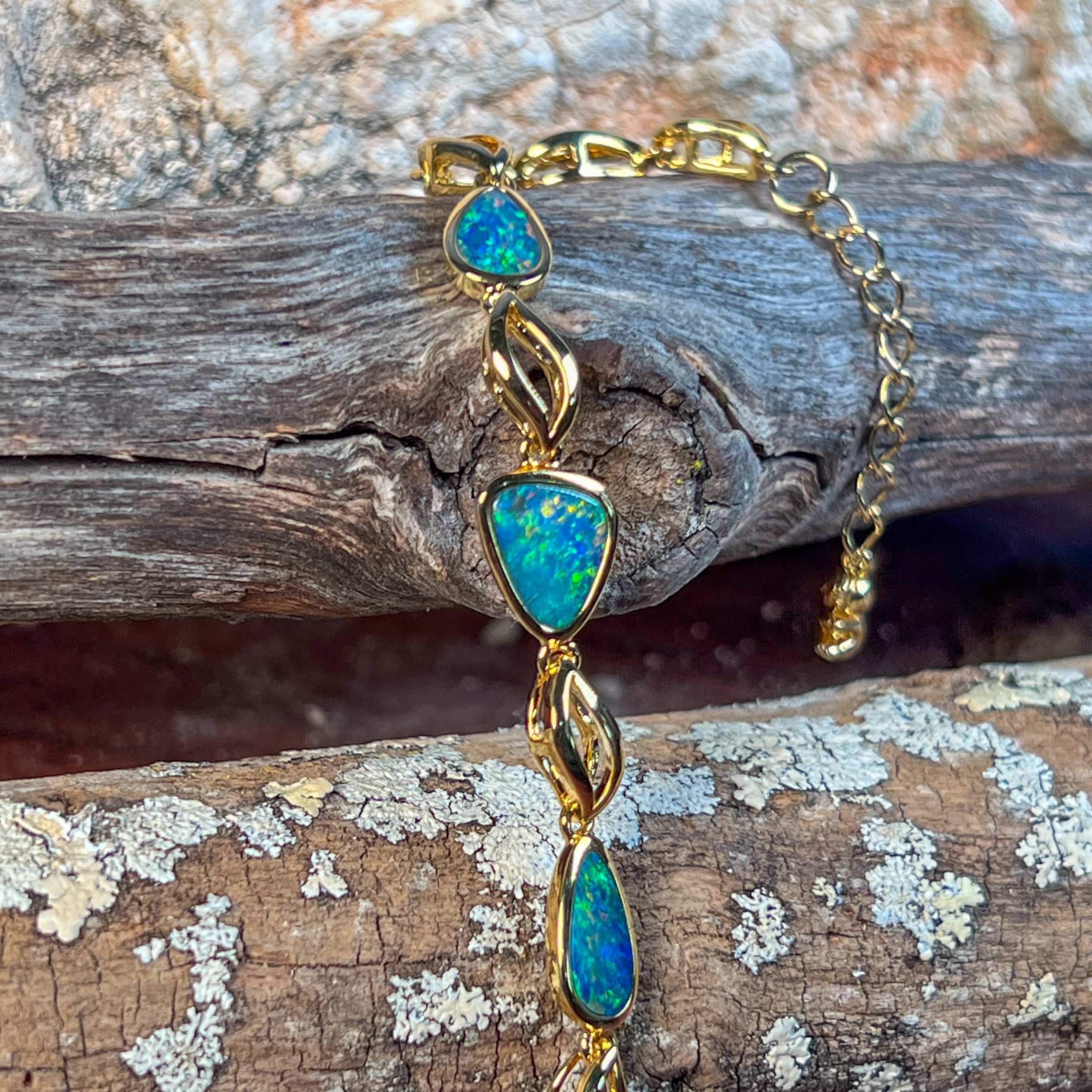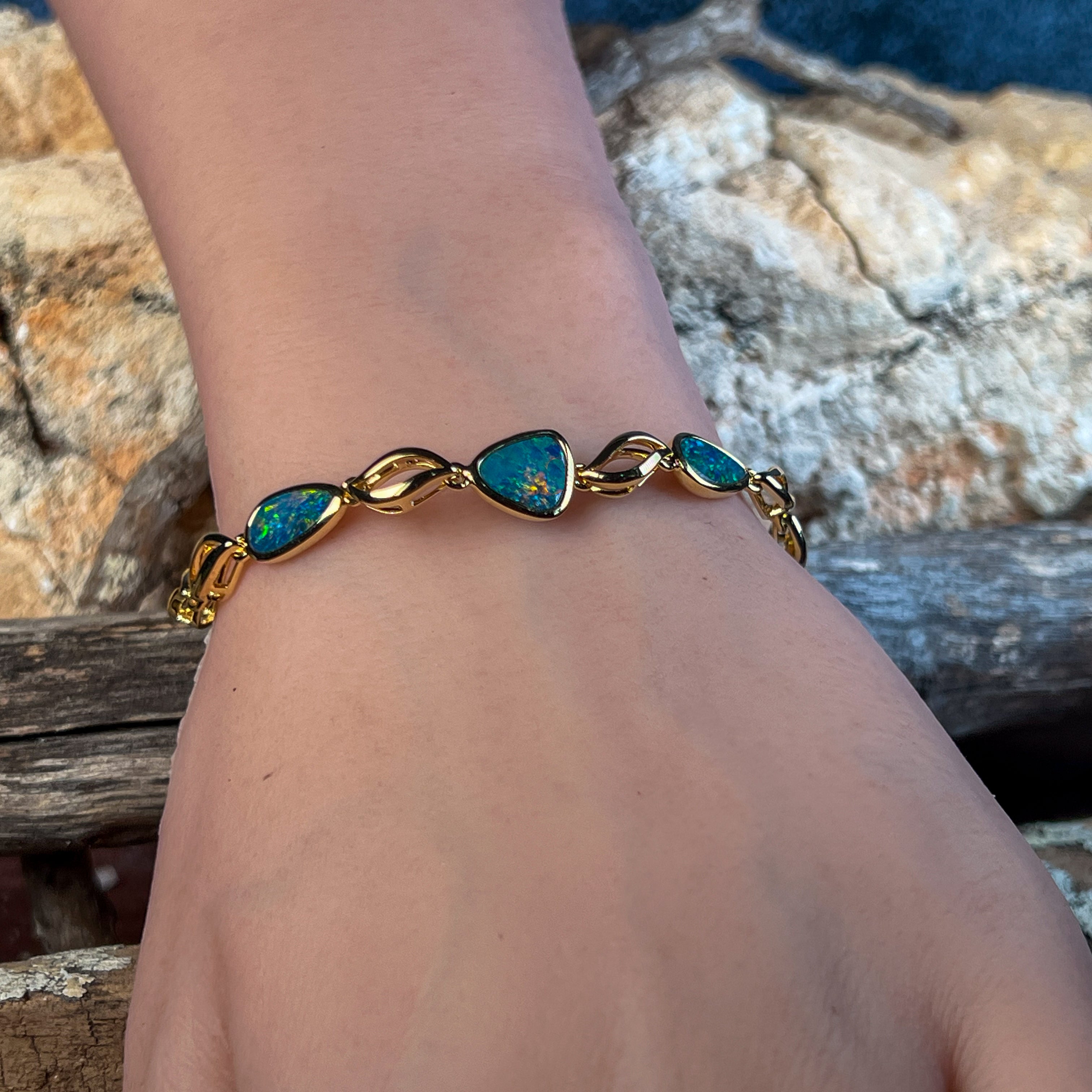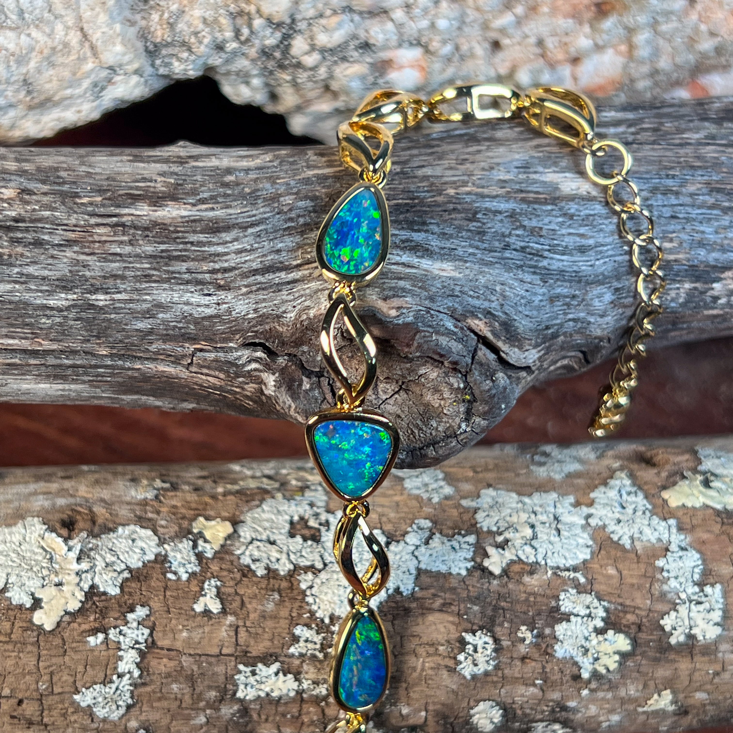 Gold Plated Silver Opal doublet freeform 3 stone bracelet