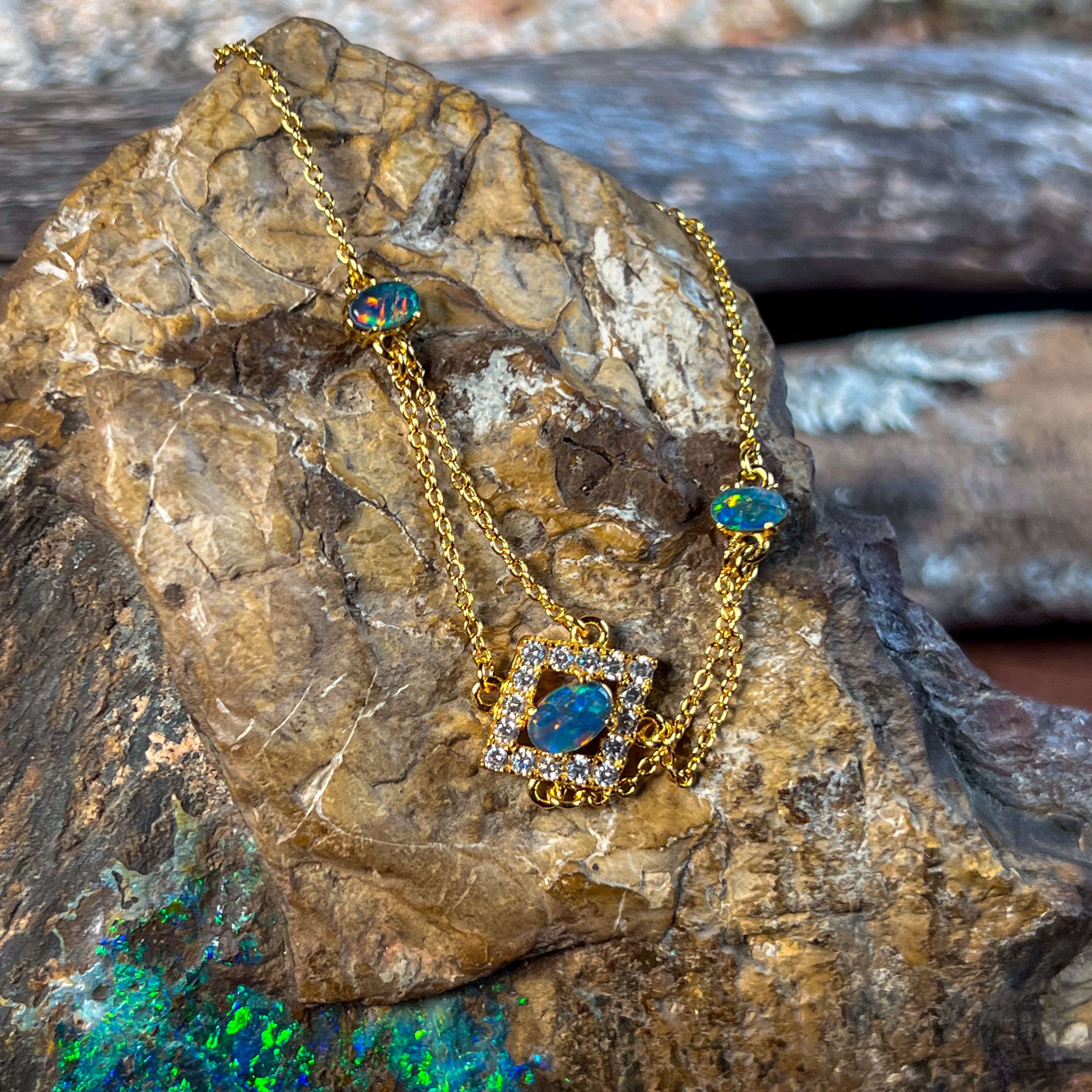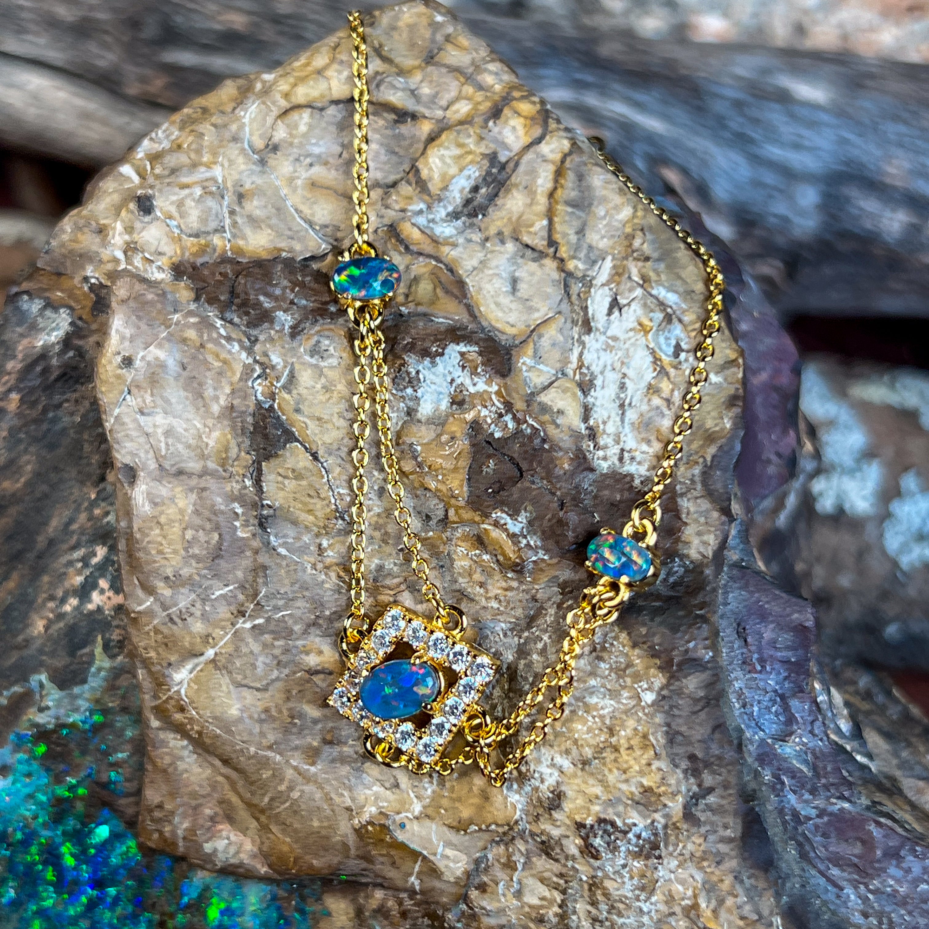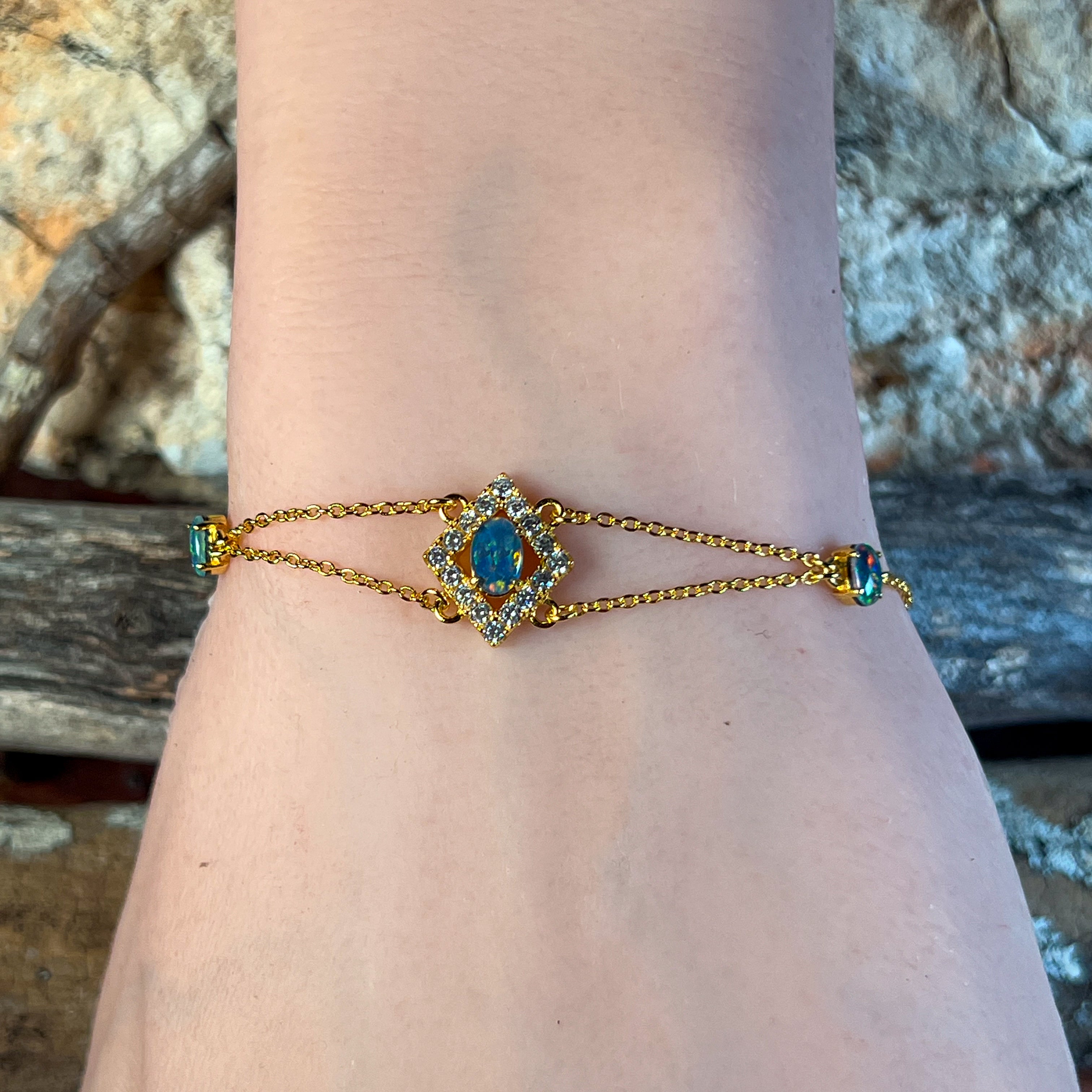 Gold Plated Silver Opal doublet freeform 3 stone bracelet
