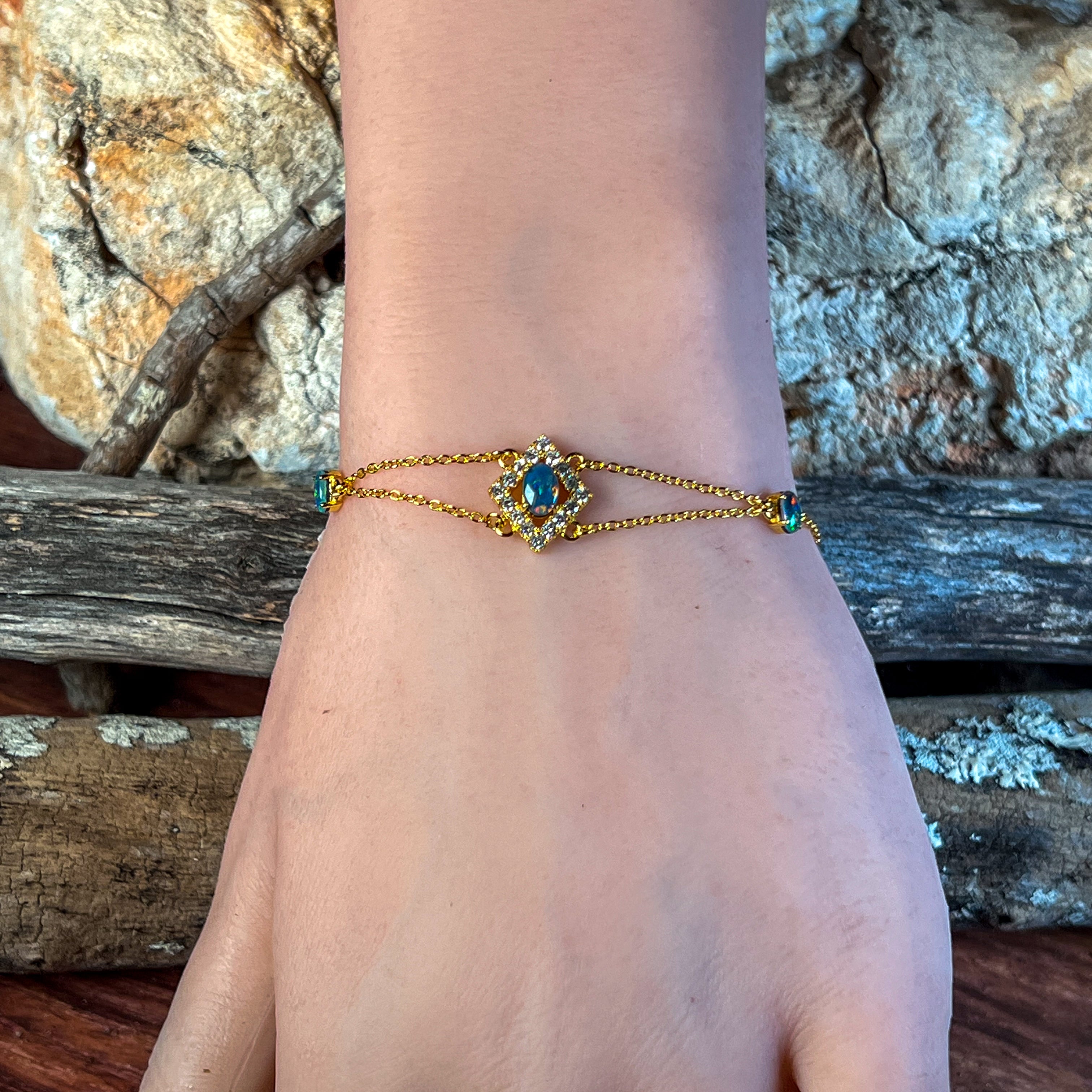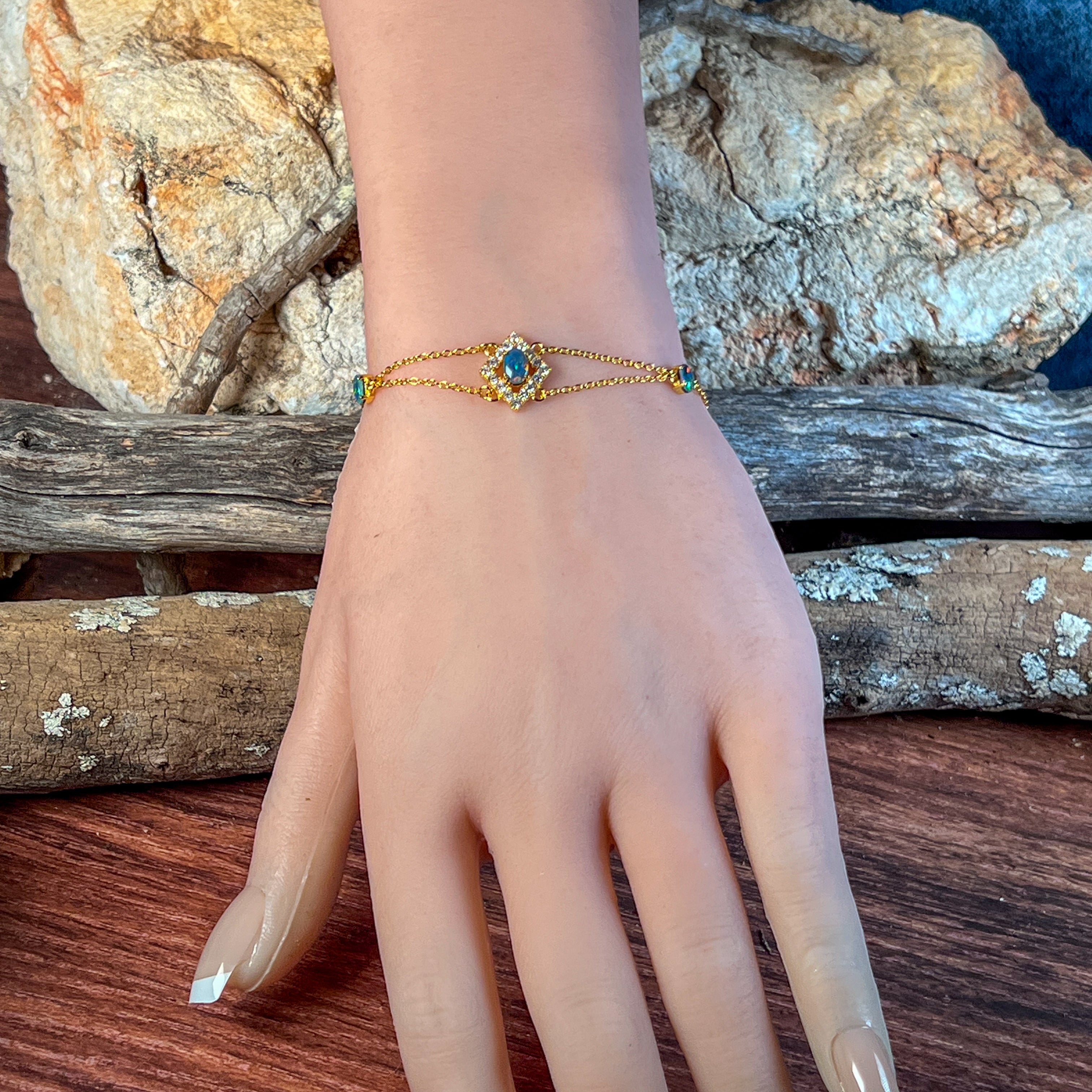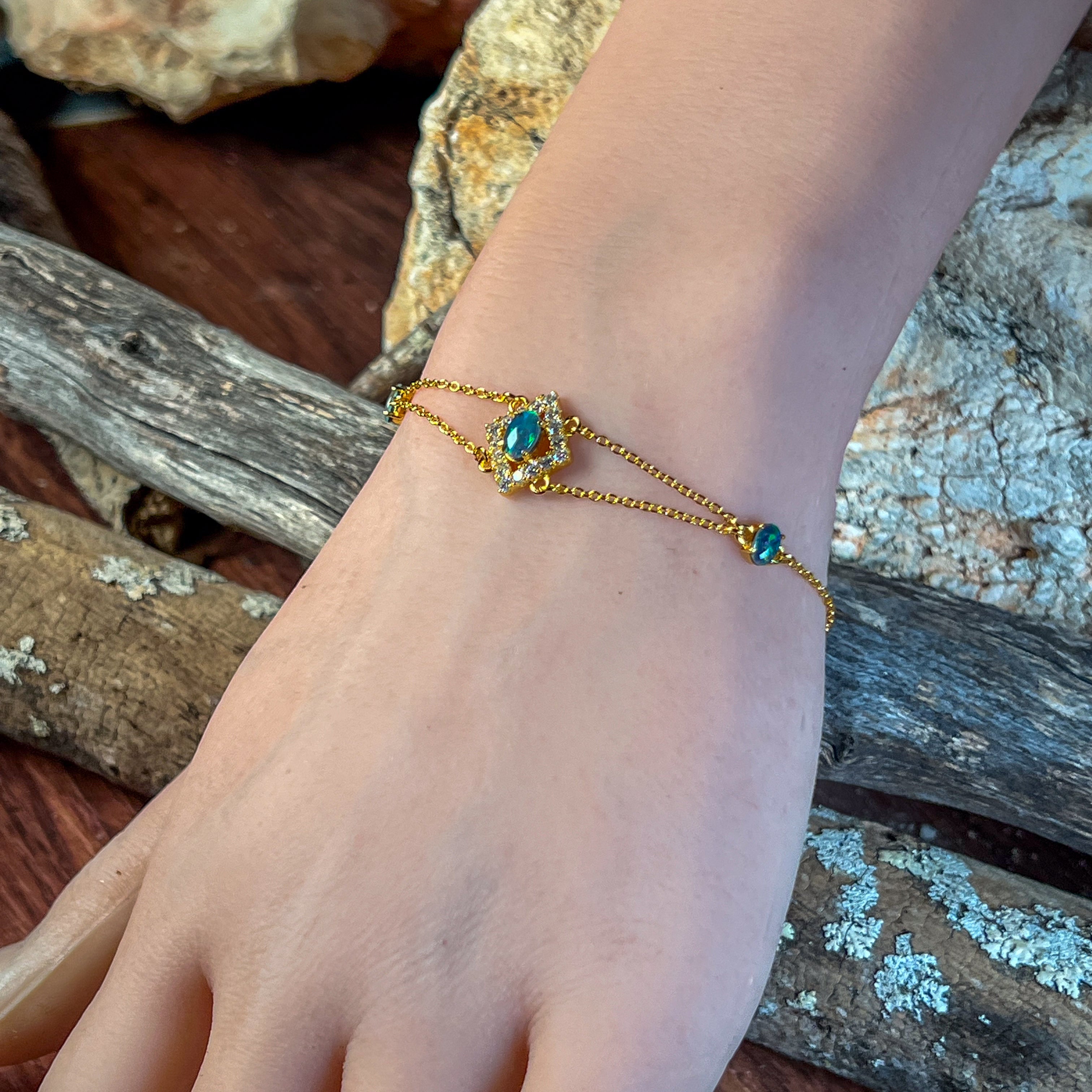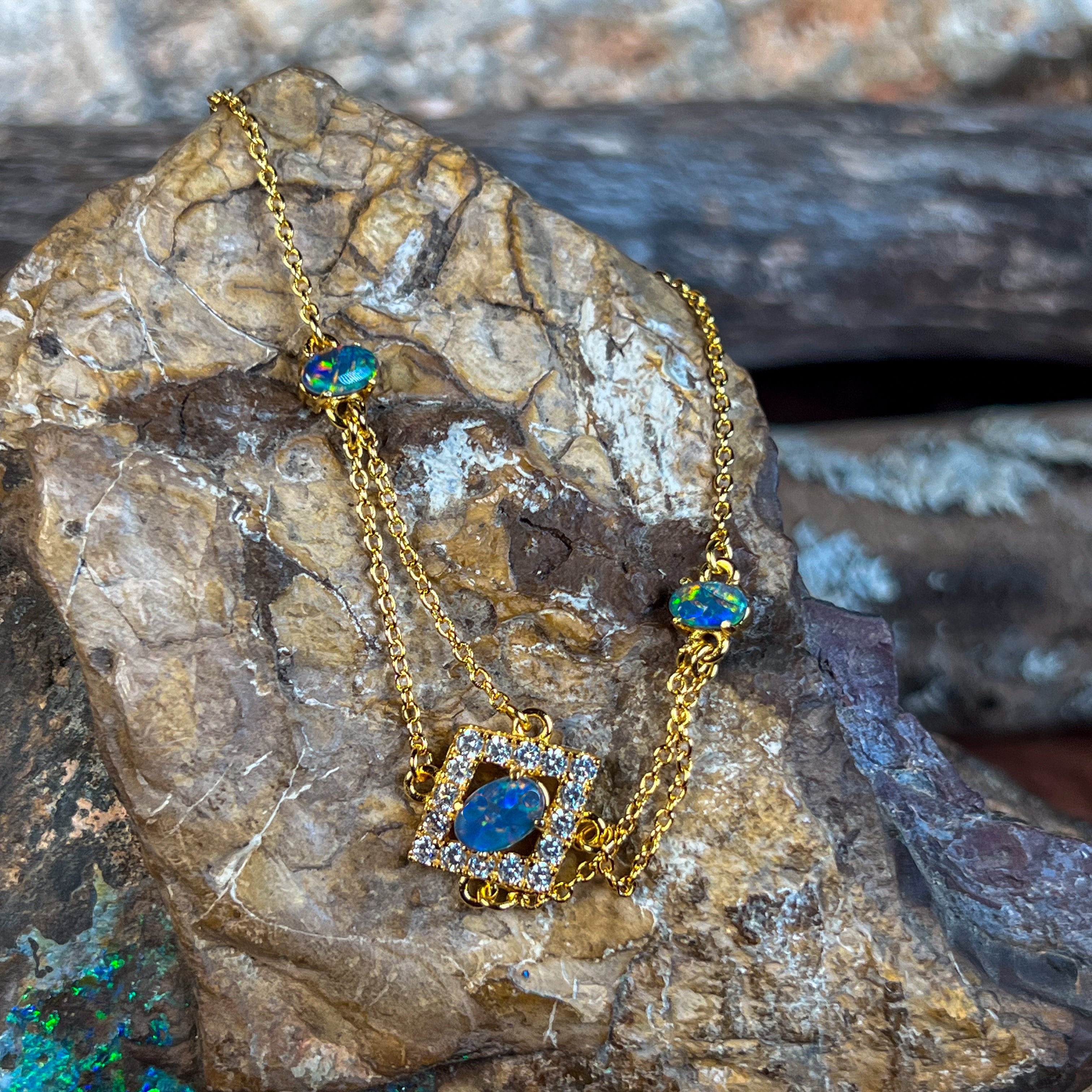 Gold Plated Silver Opal doublet freeform 3 stone bracelet