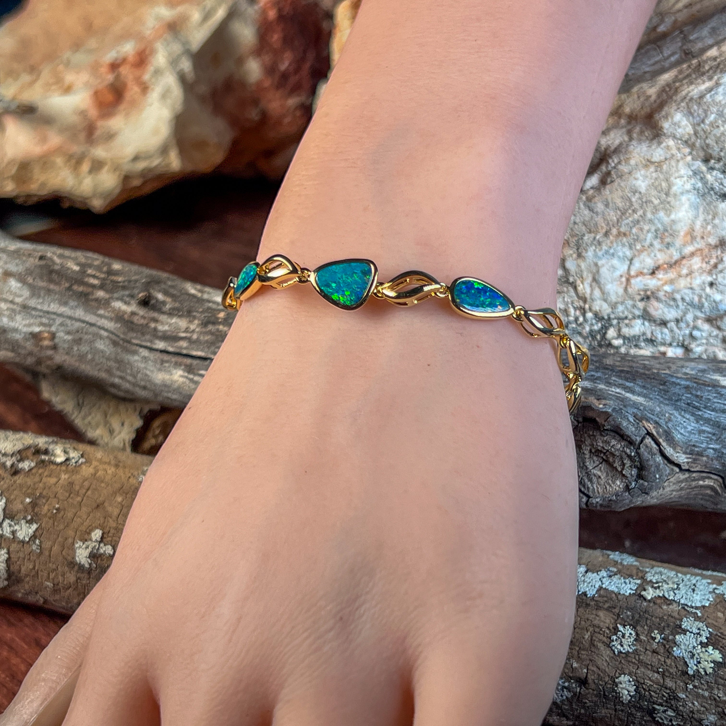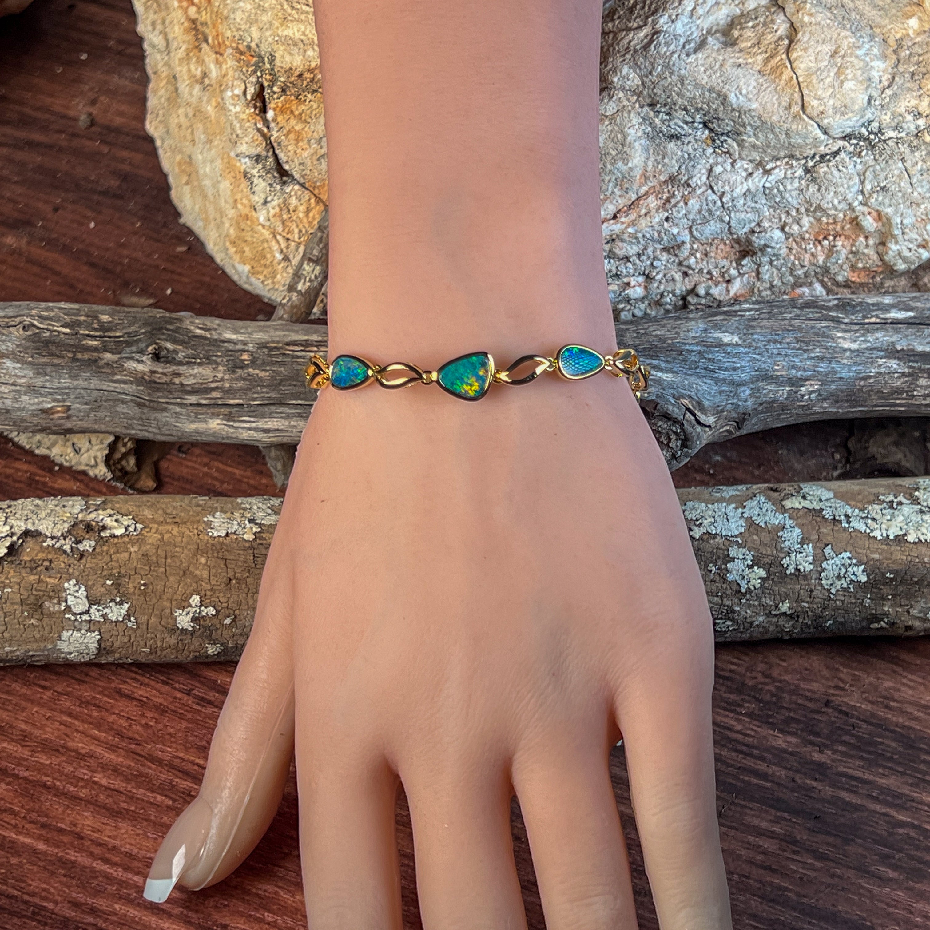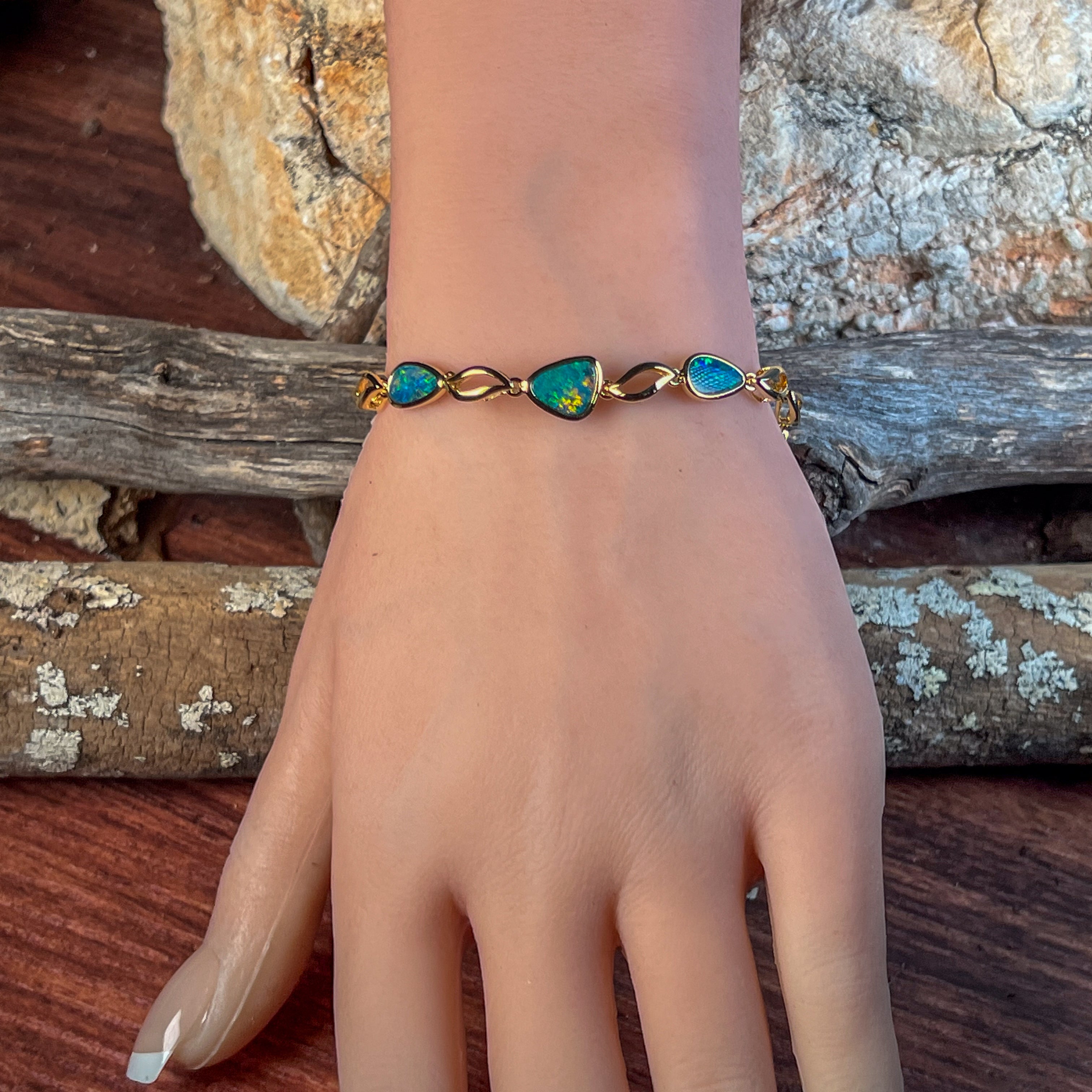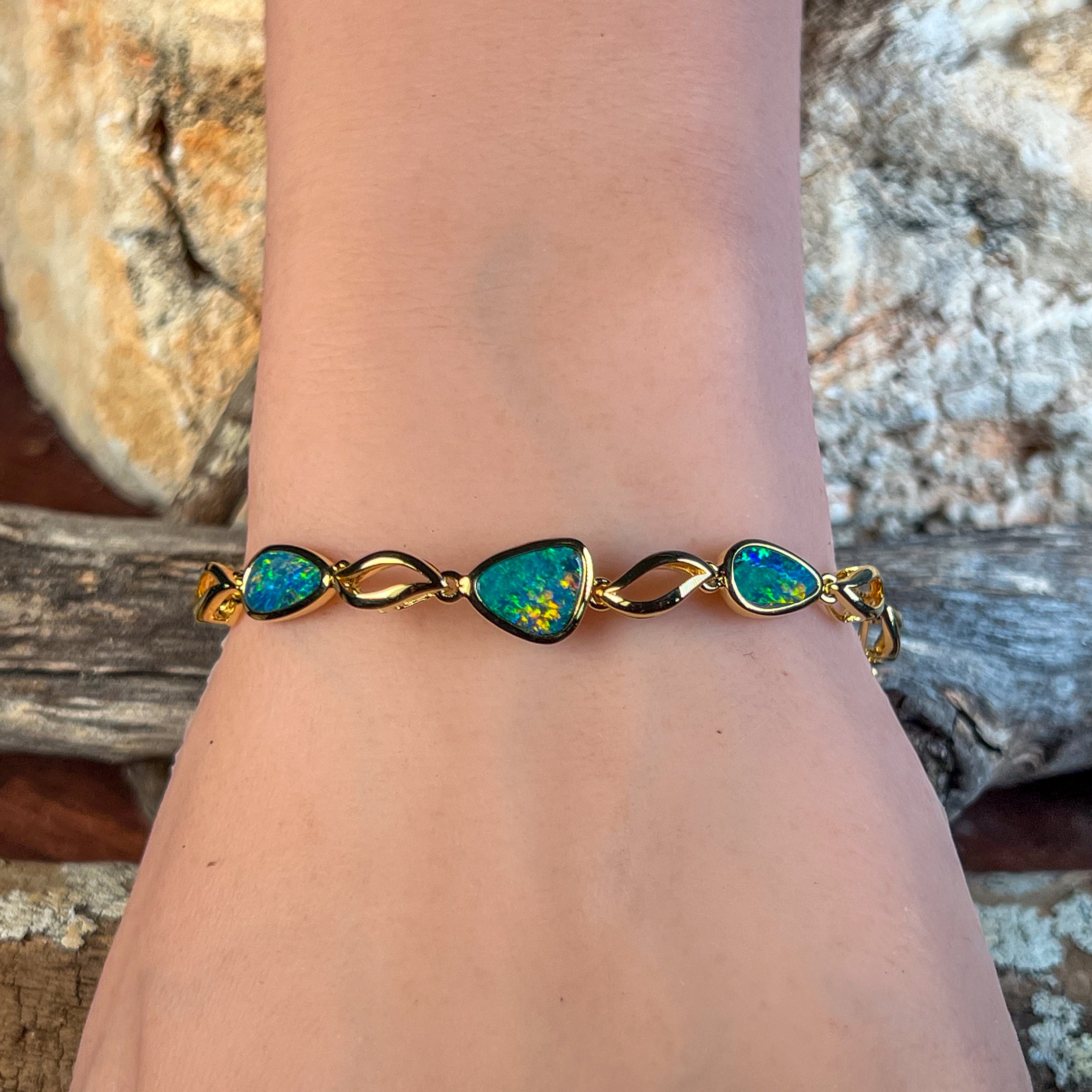 Gold plated silver infinity style bracelet with 8x6mm Opal triplets