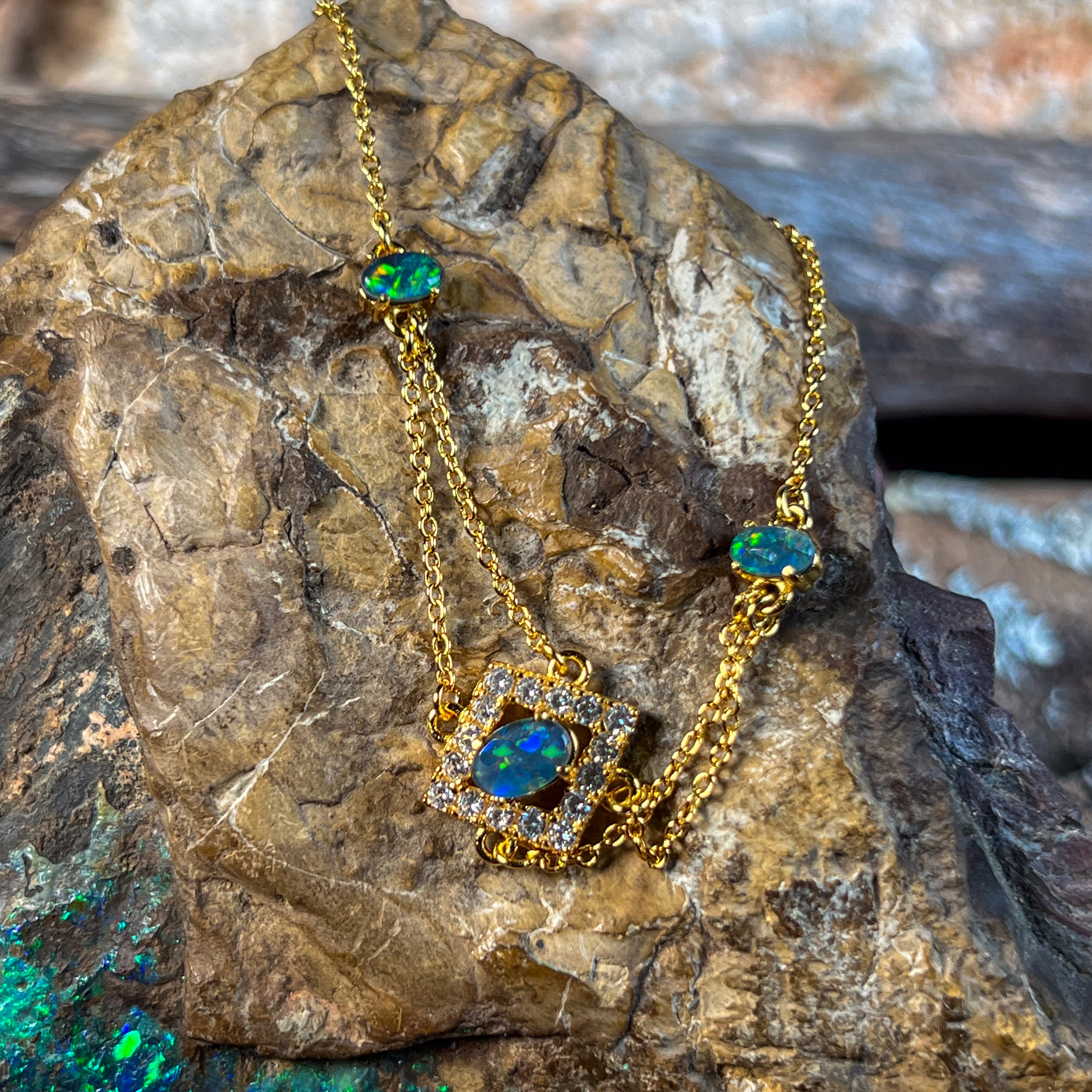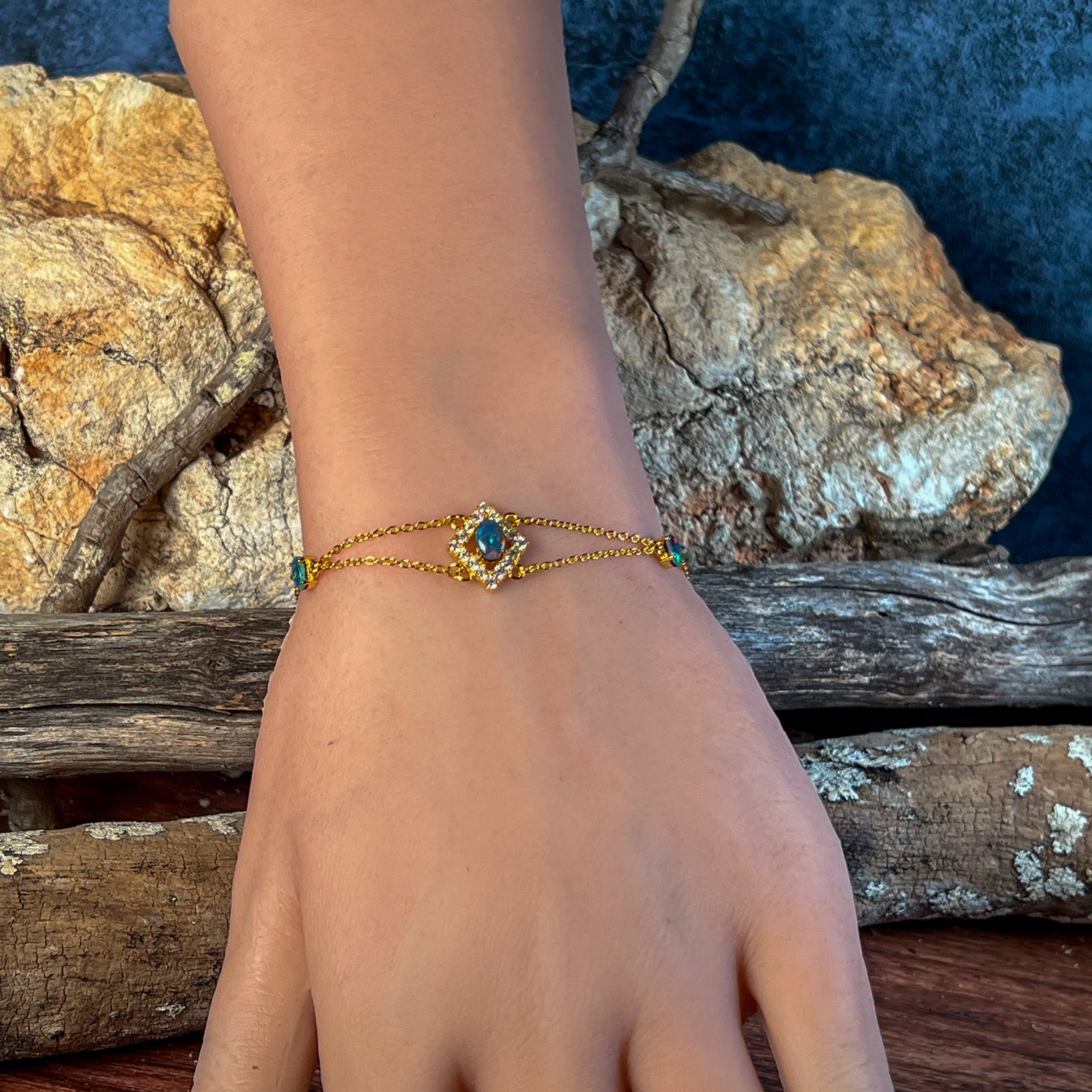 Sterling Silver gold plated 3mm opal triplet minimalist bracelet