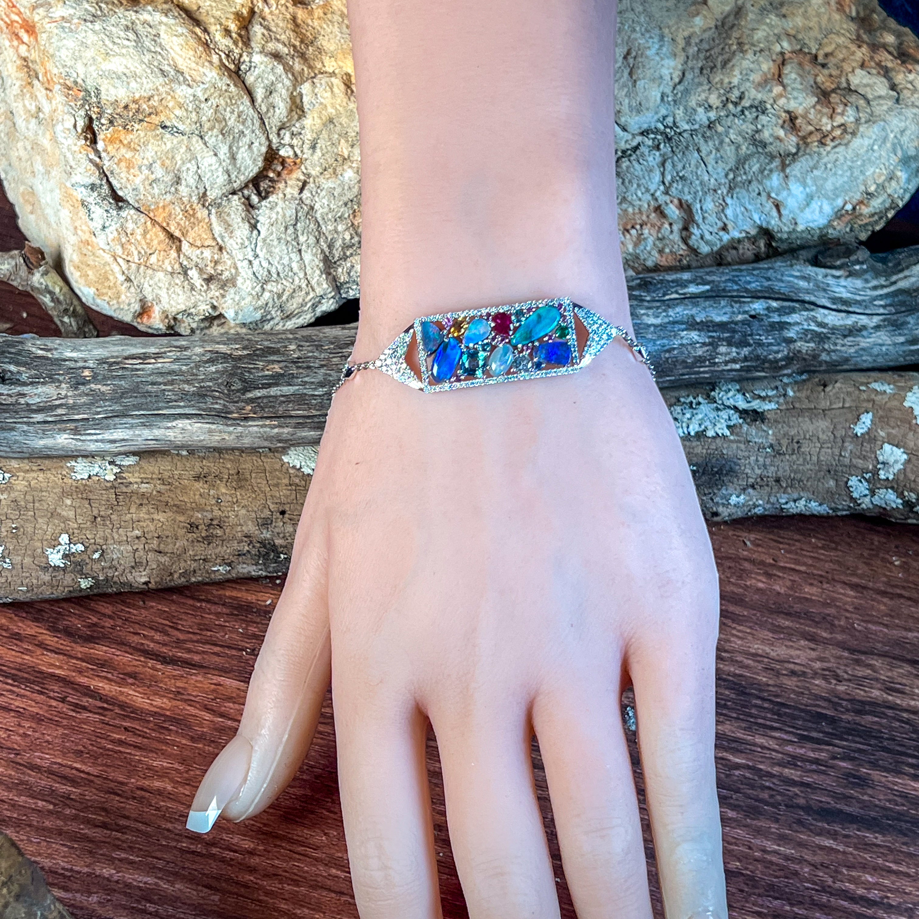 Sterling Silver Opal doublet freeform 3 stone bracelet