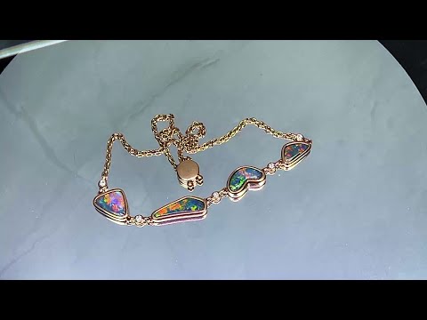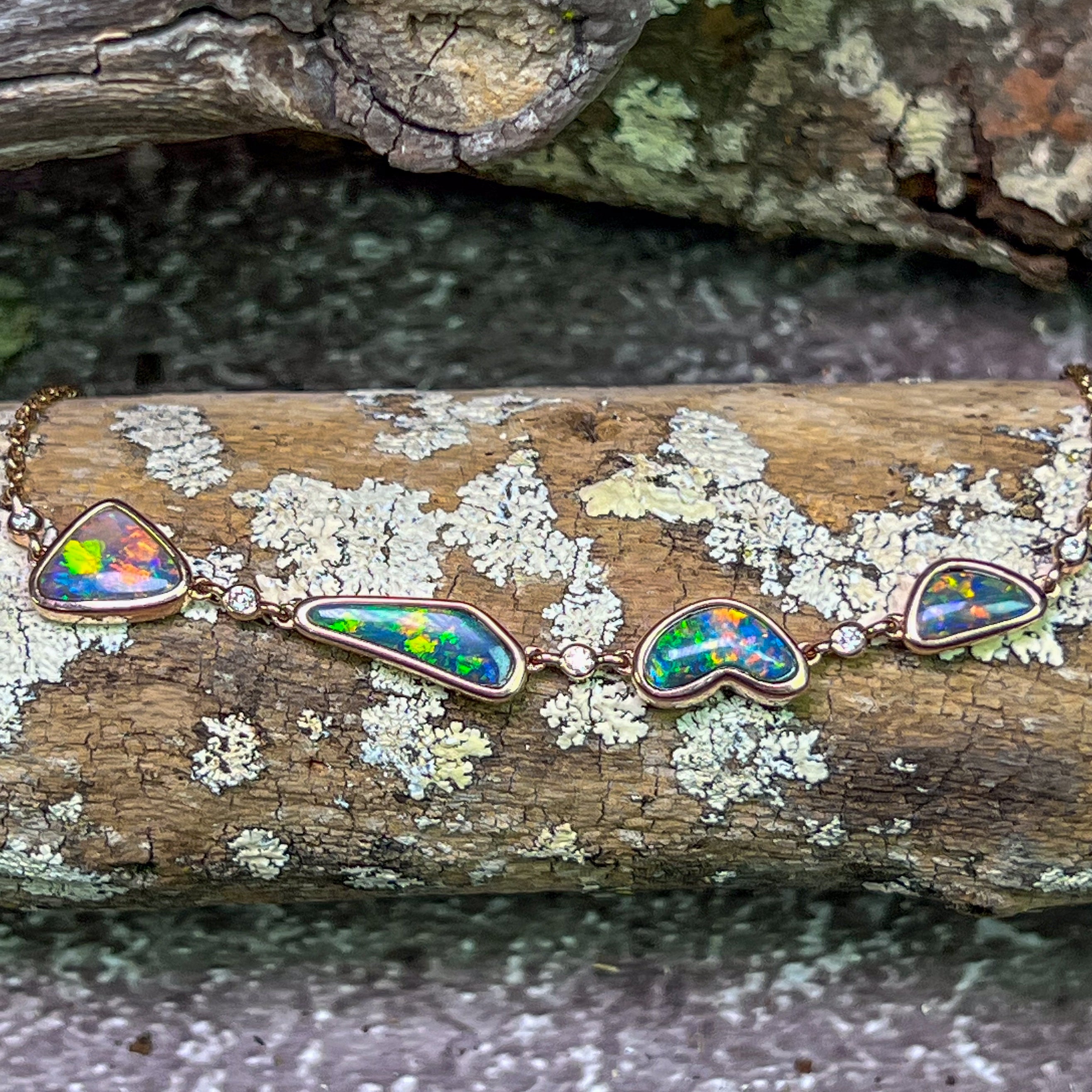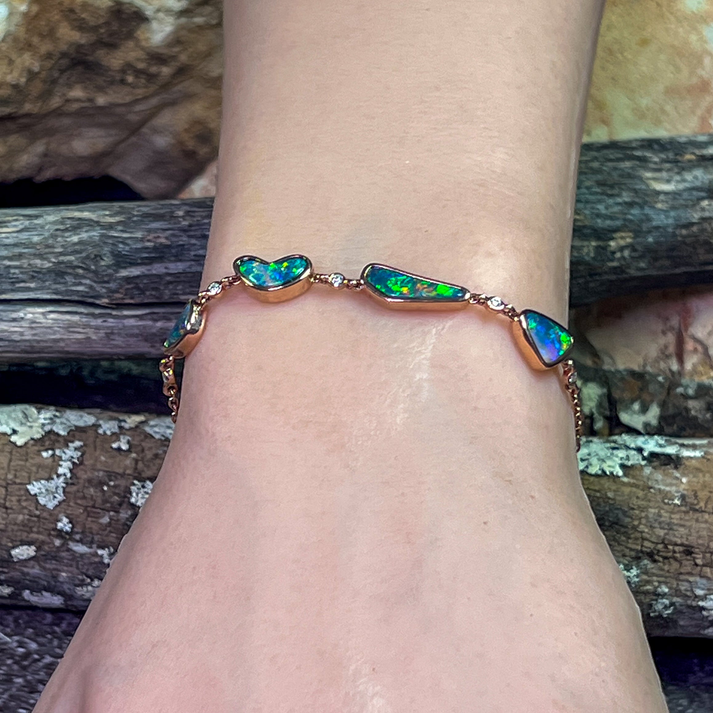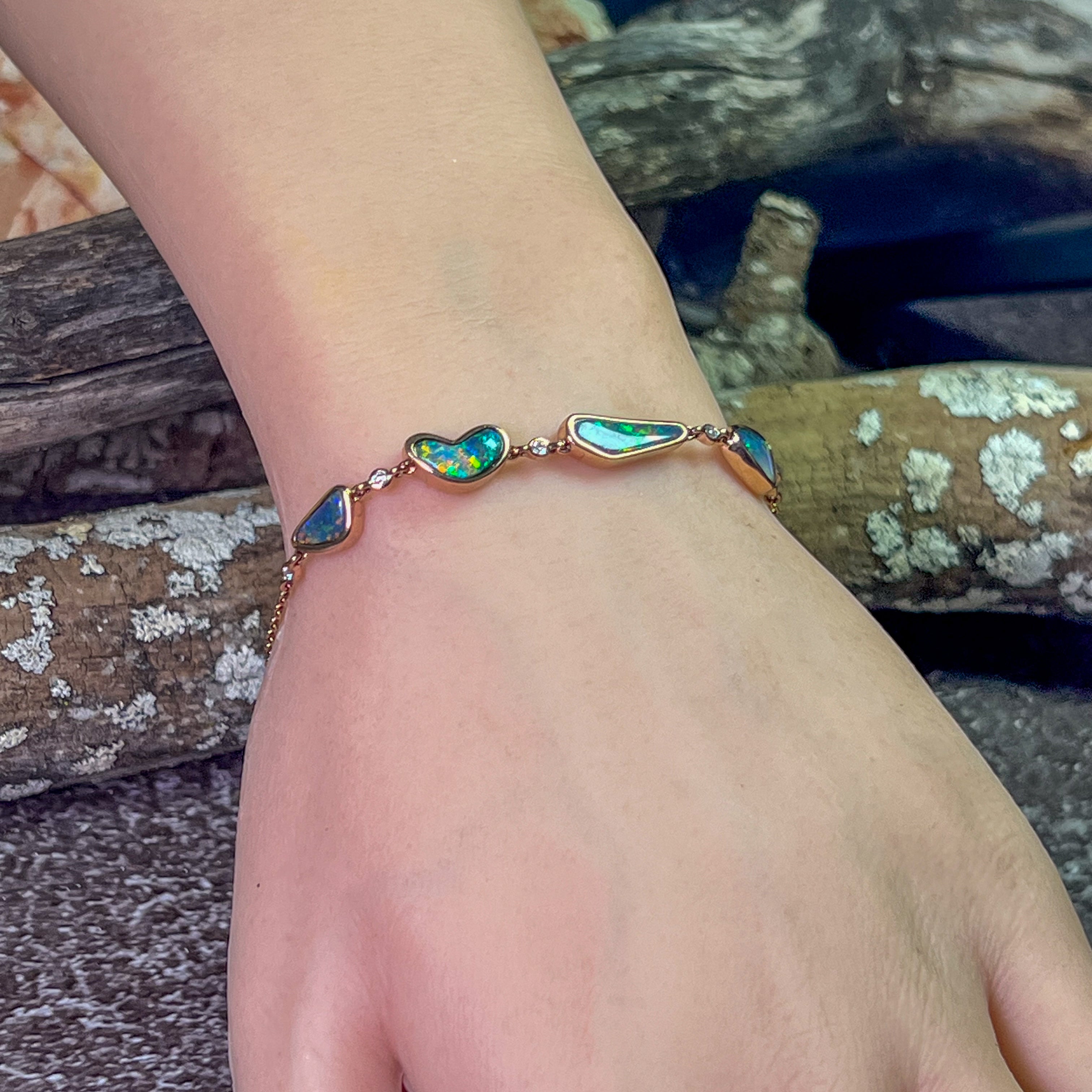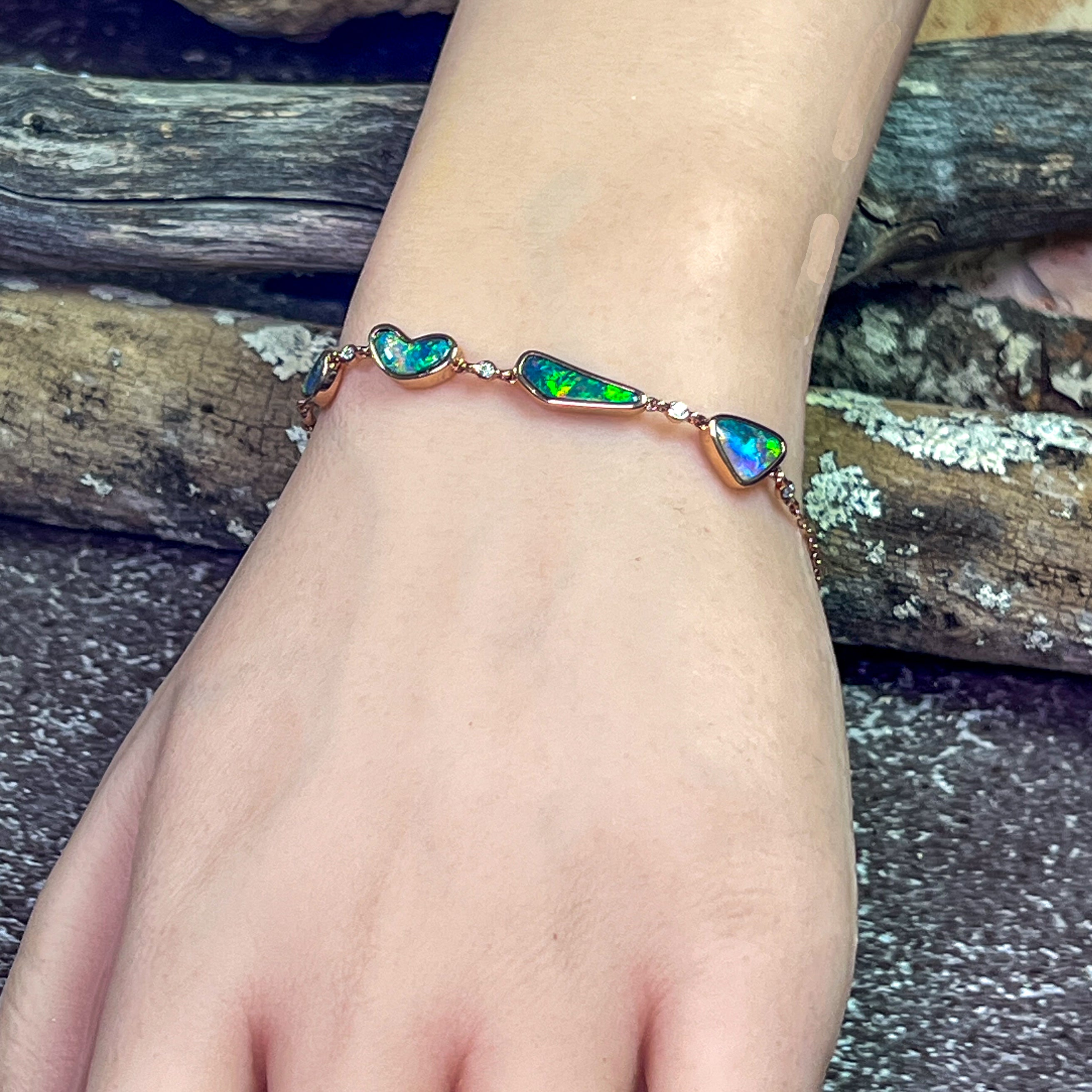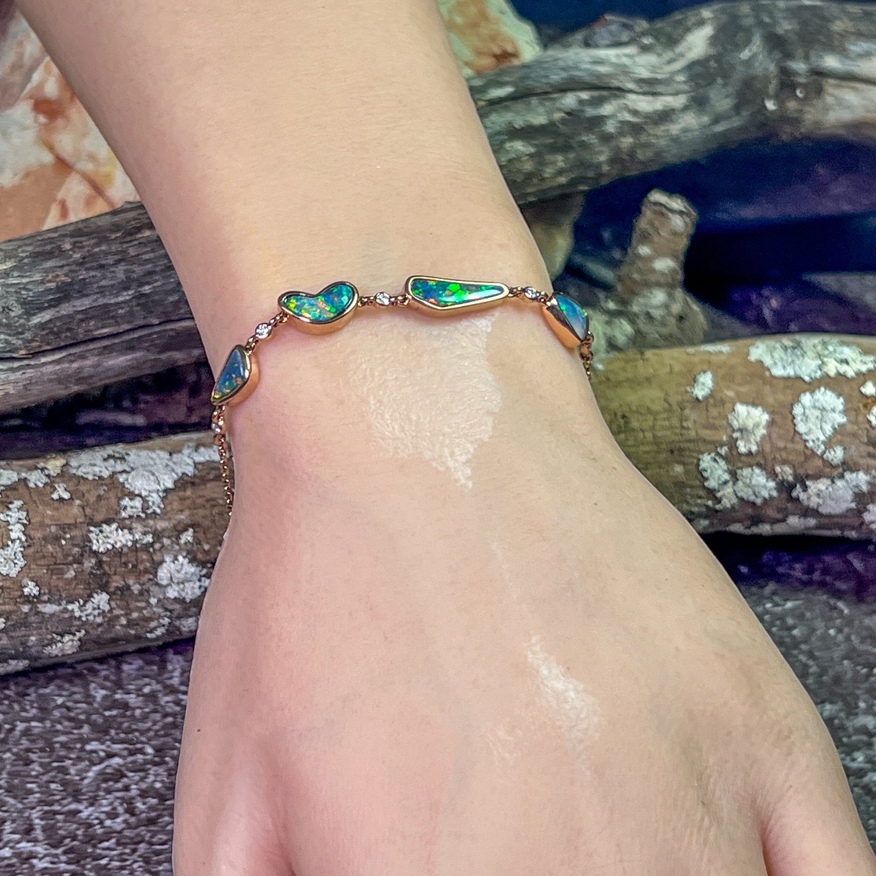 14kt Rose Gold Bracelet 4 Freeform Black Opal and diamond bracelet