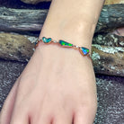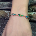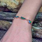 Add a touch of luxury with this exquisite 14kt Rose Gold Bracelet. Featuring four freeform Black Opal stones and dazzling diamonds, this birthstone bracelet is a must-have for any fine jewellery collection. Elevate your look with this elegant and exclusive piece.