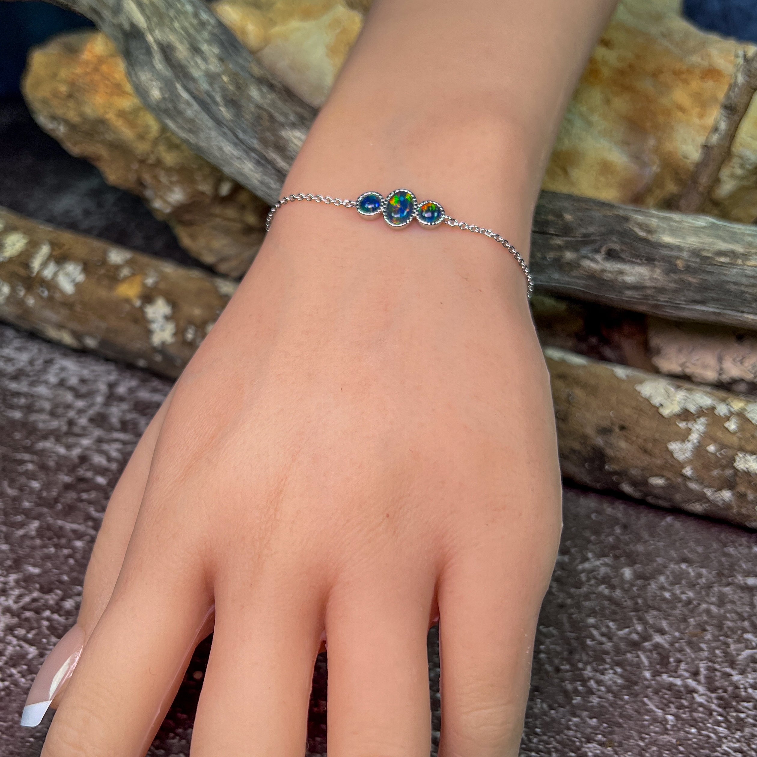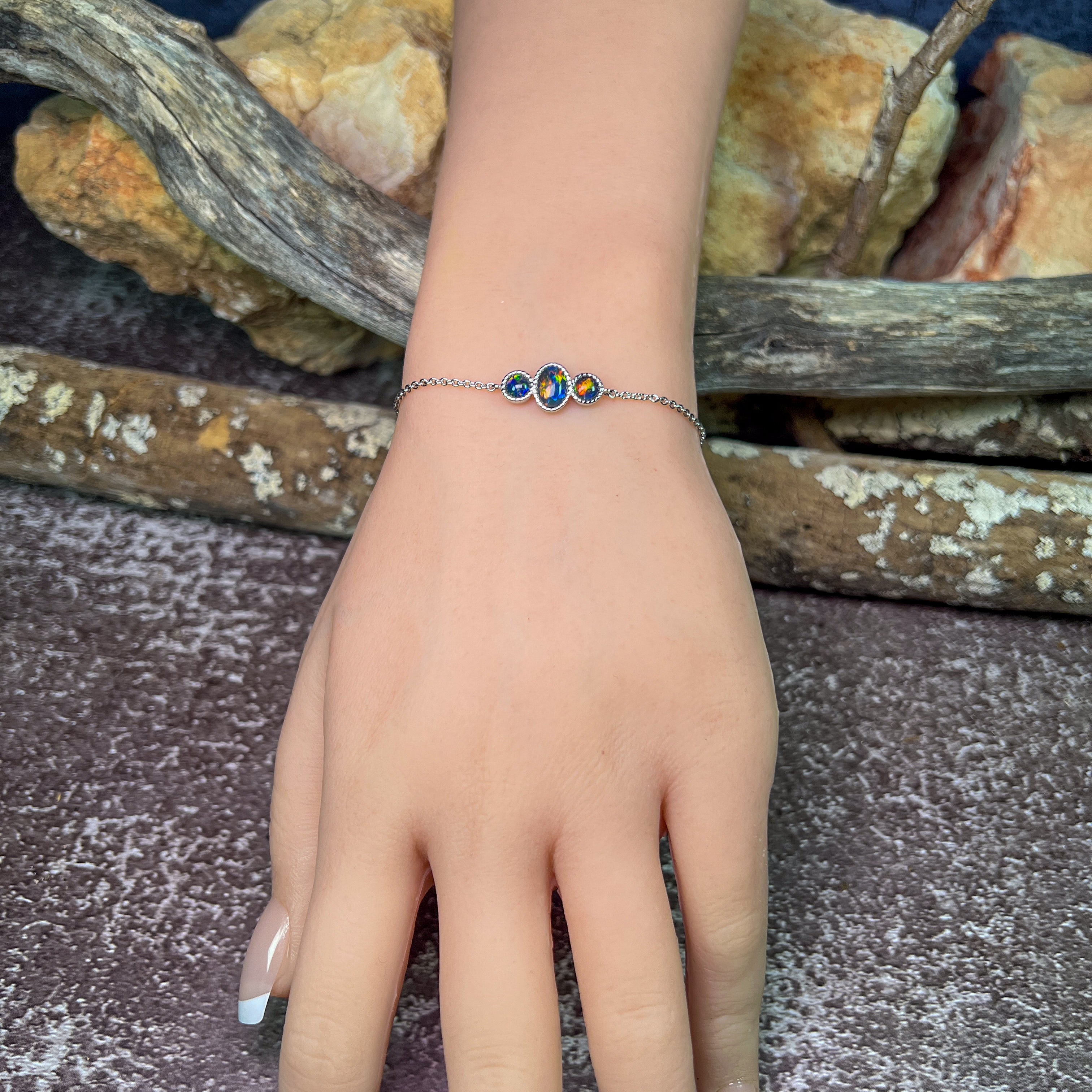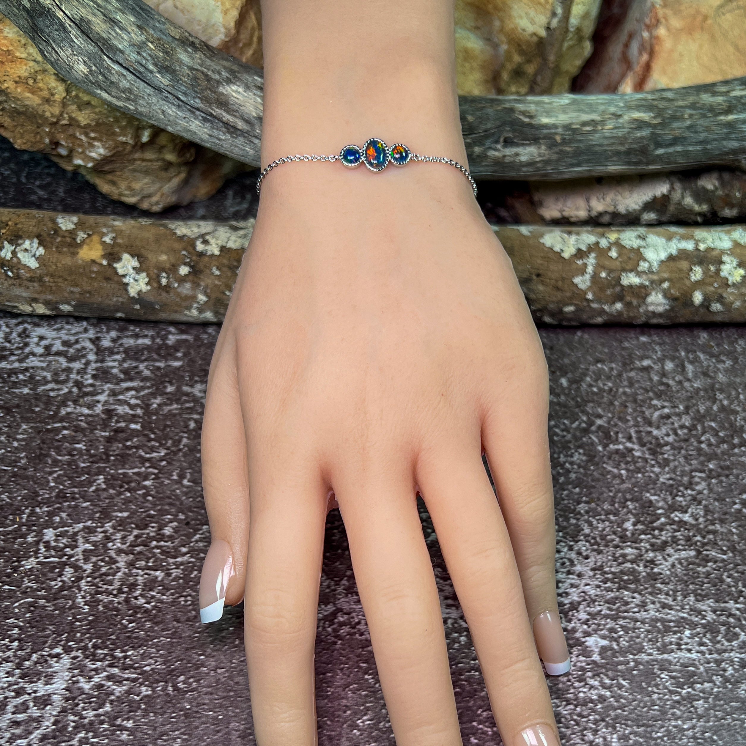 Sterling Silver 3 Opal triplet stone bracelet