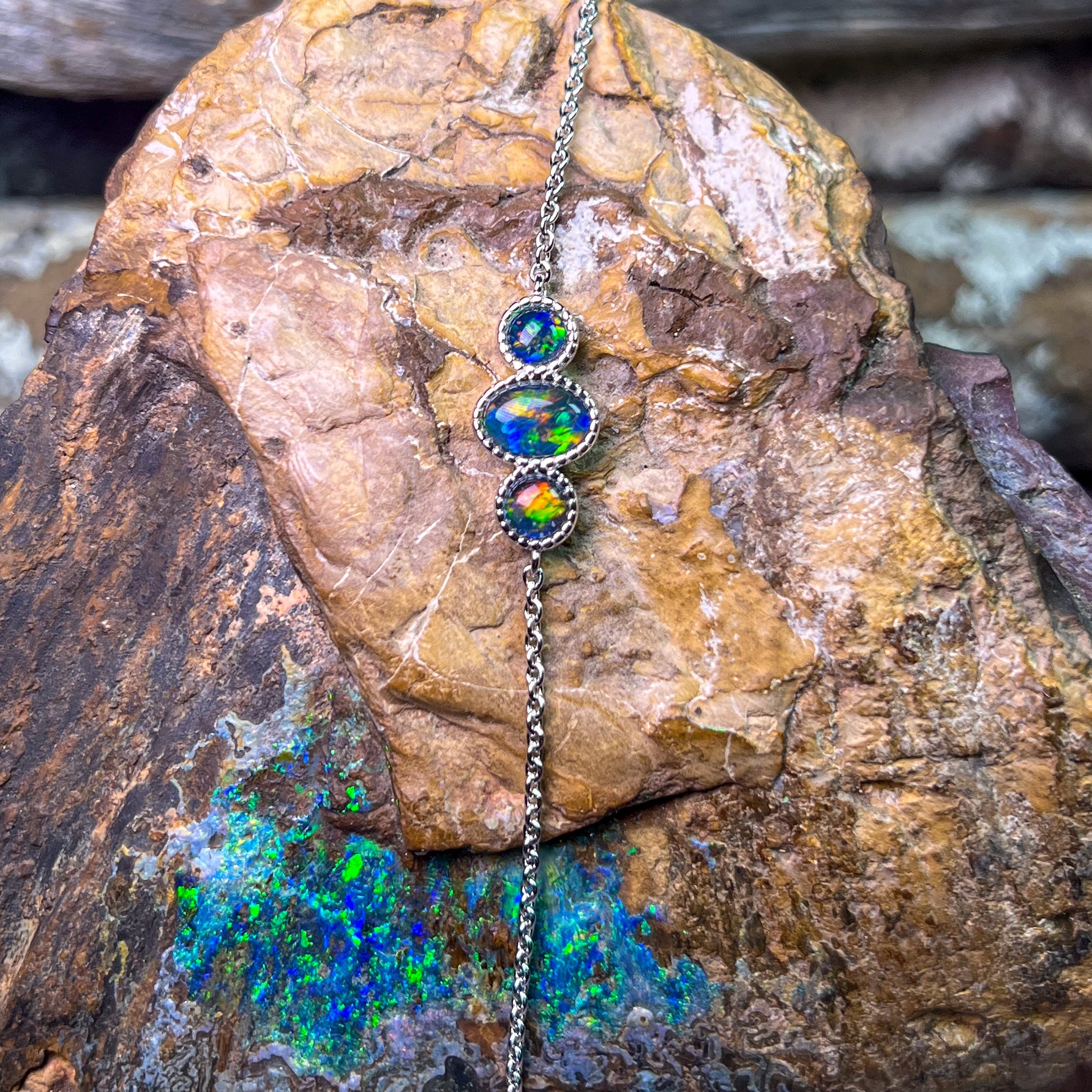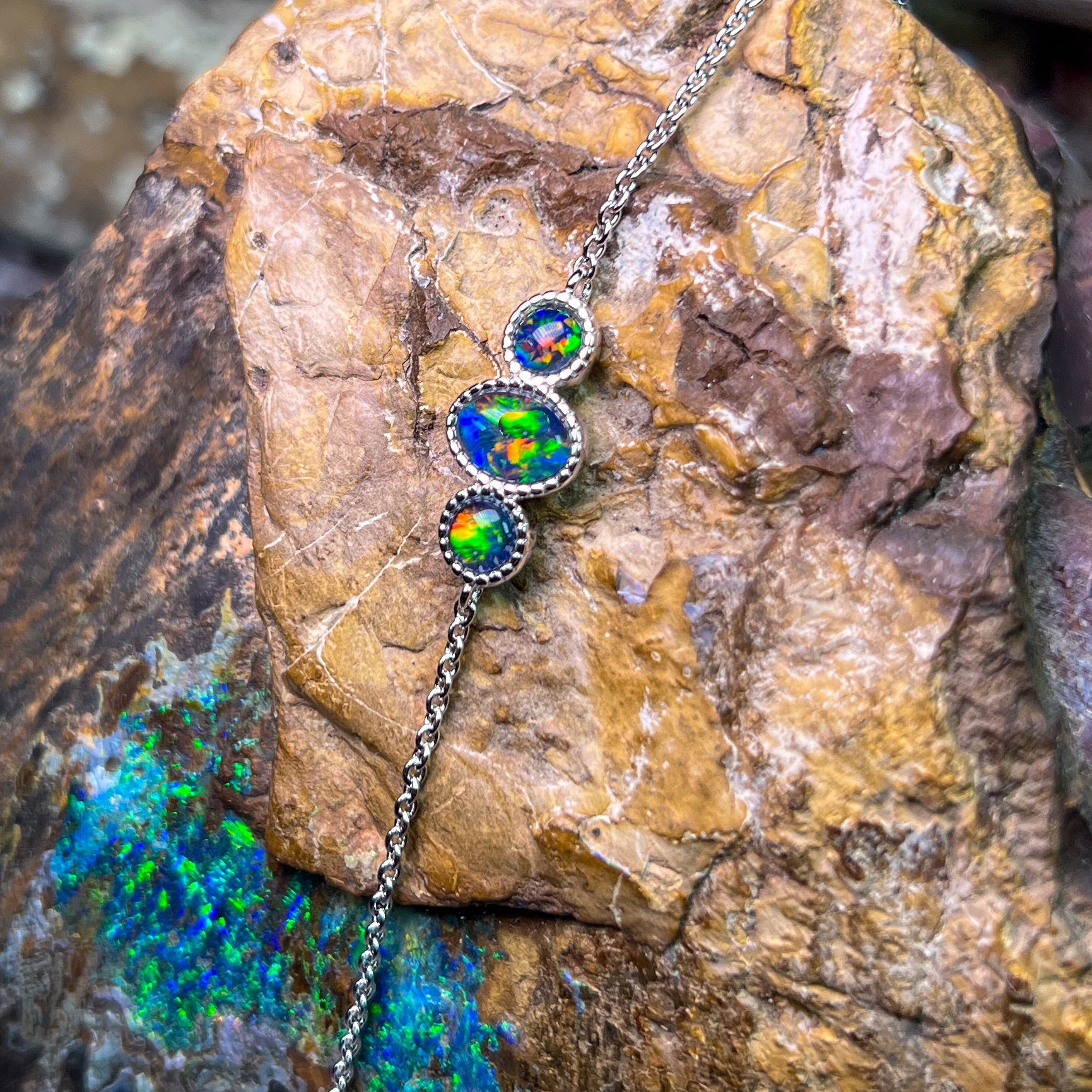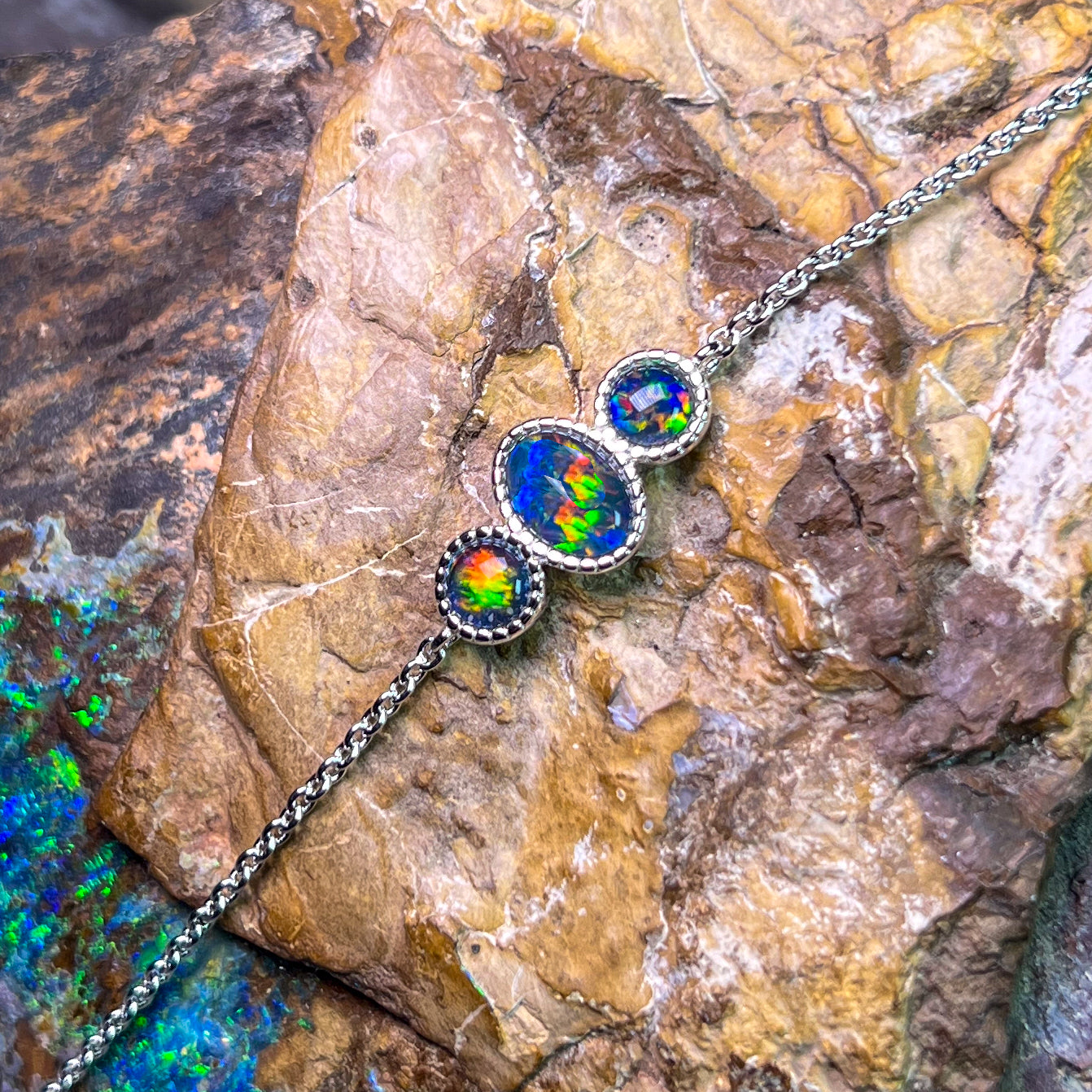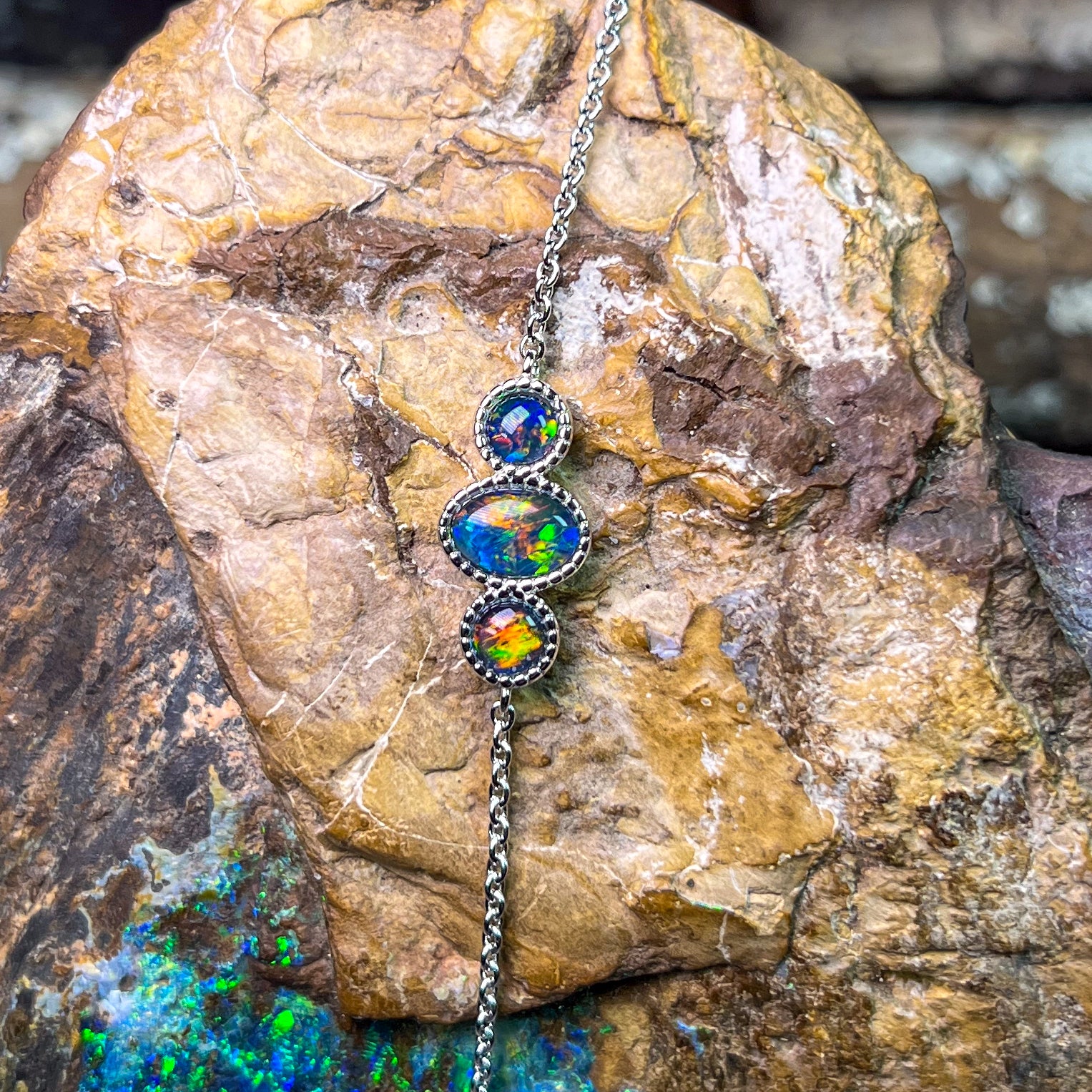 Sterling Silver 3 Opal triplet stone bracelet