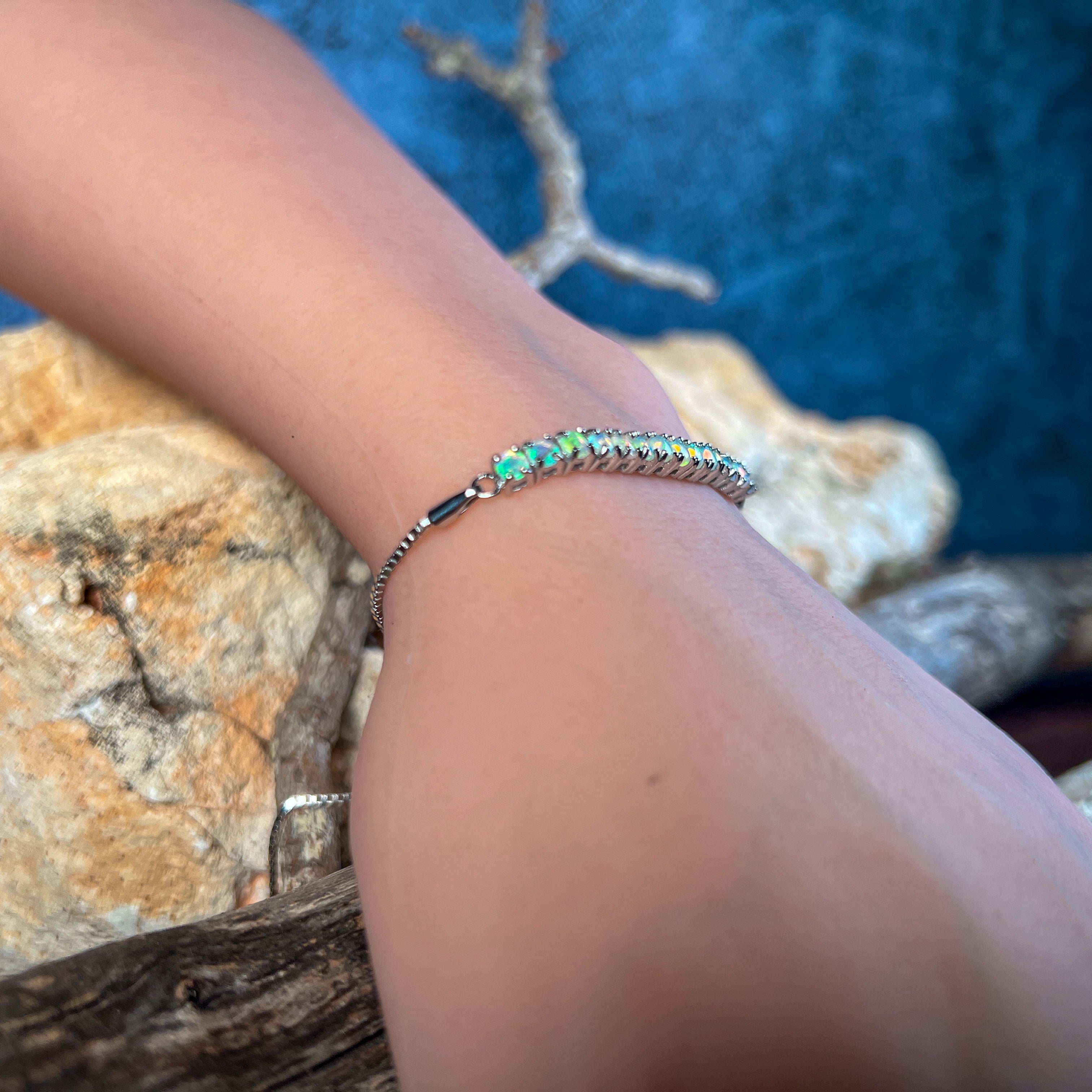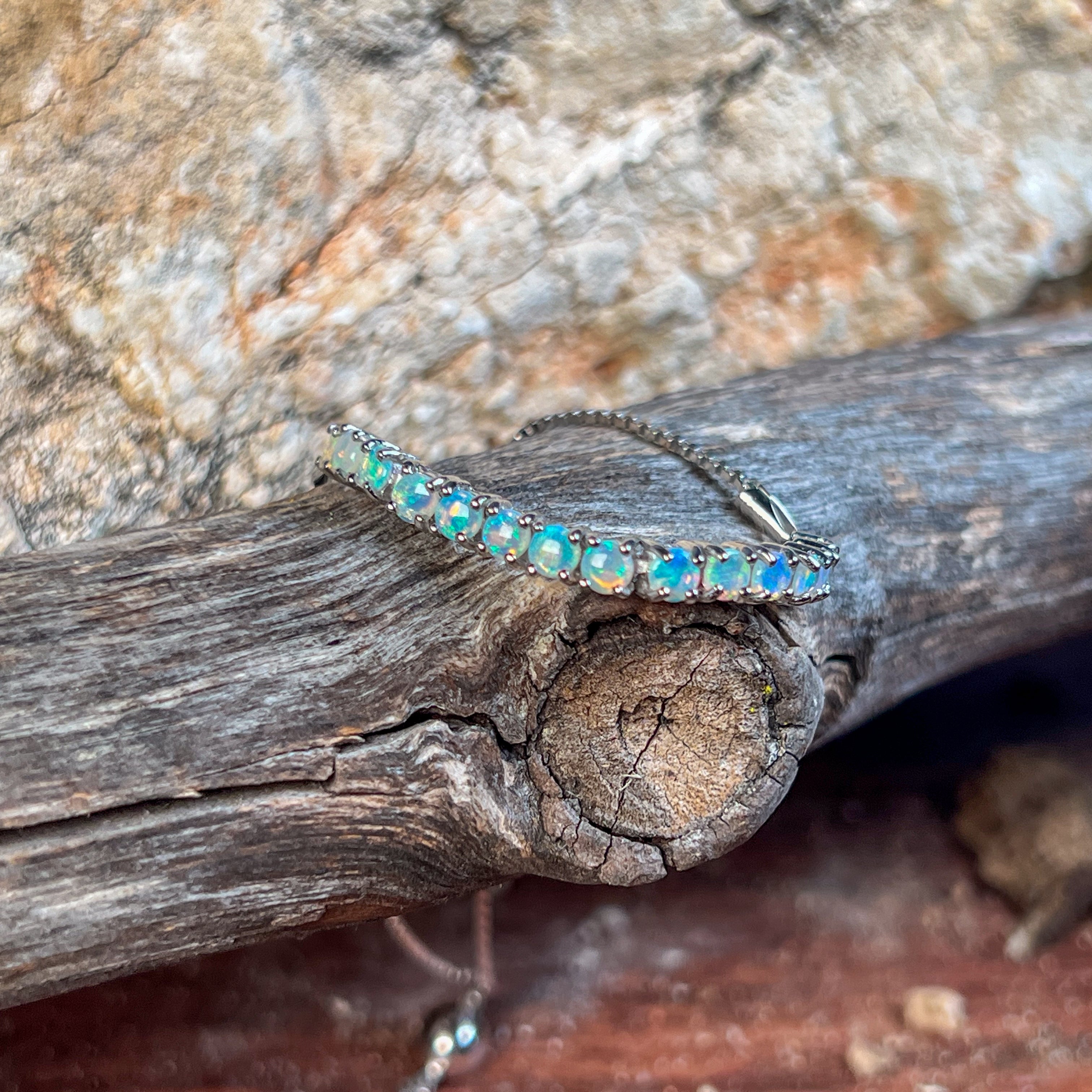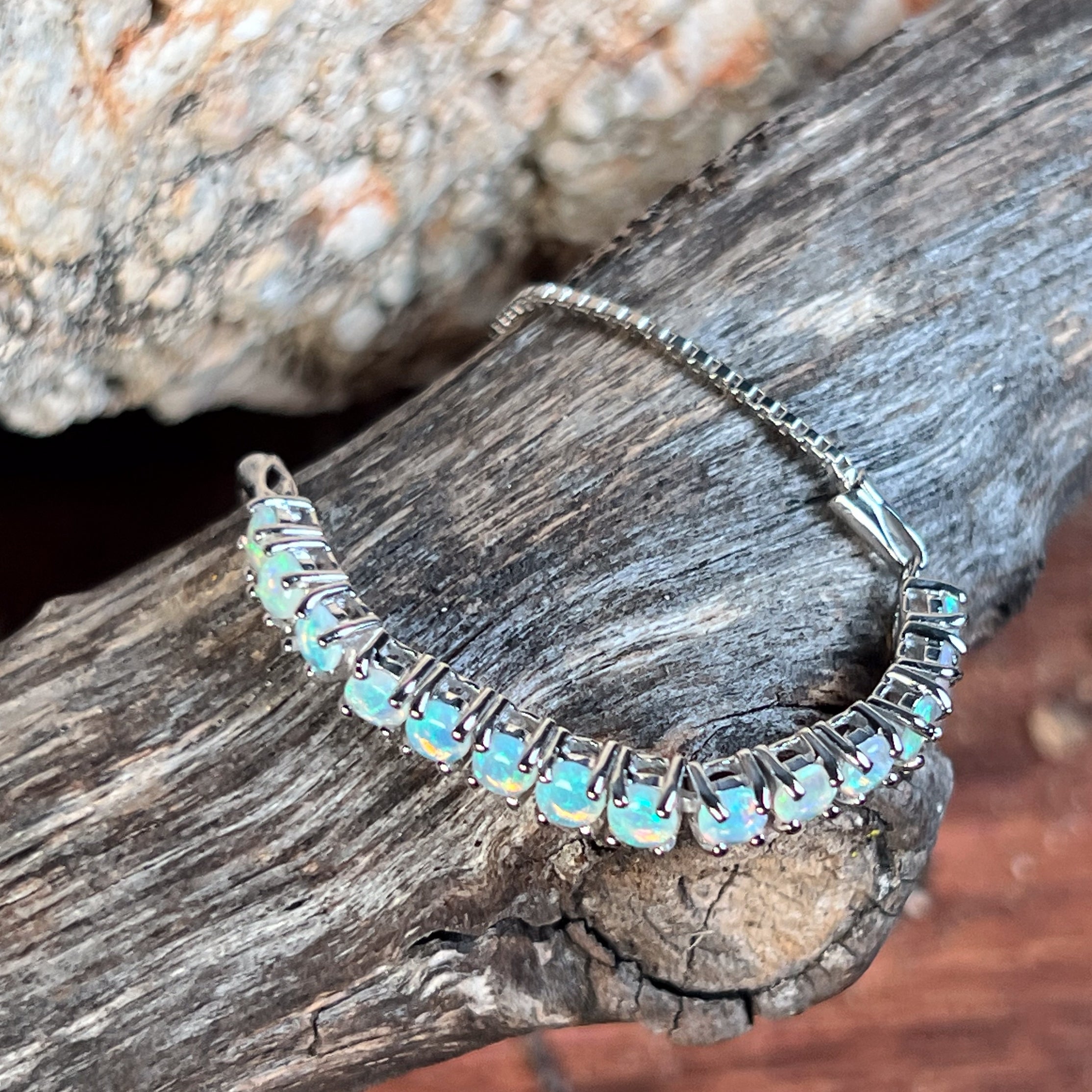 Sterling Silver adjustable Opal 3.5mm tennis bracelet style