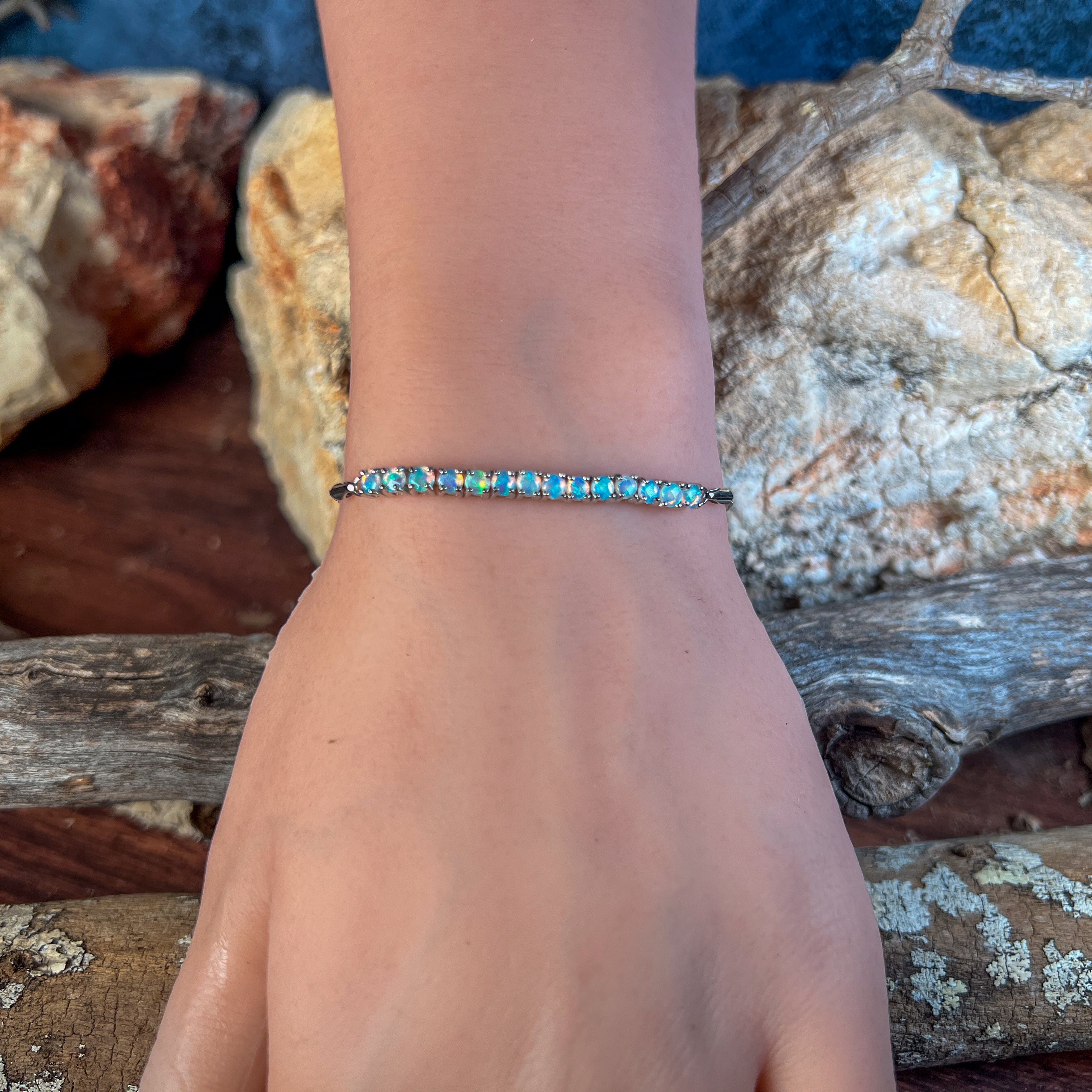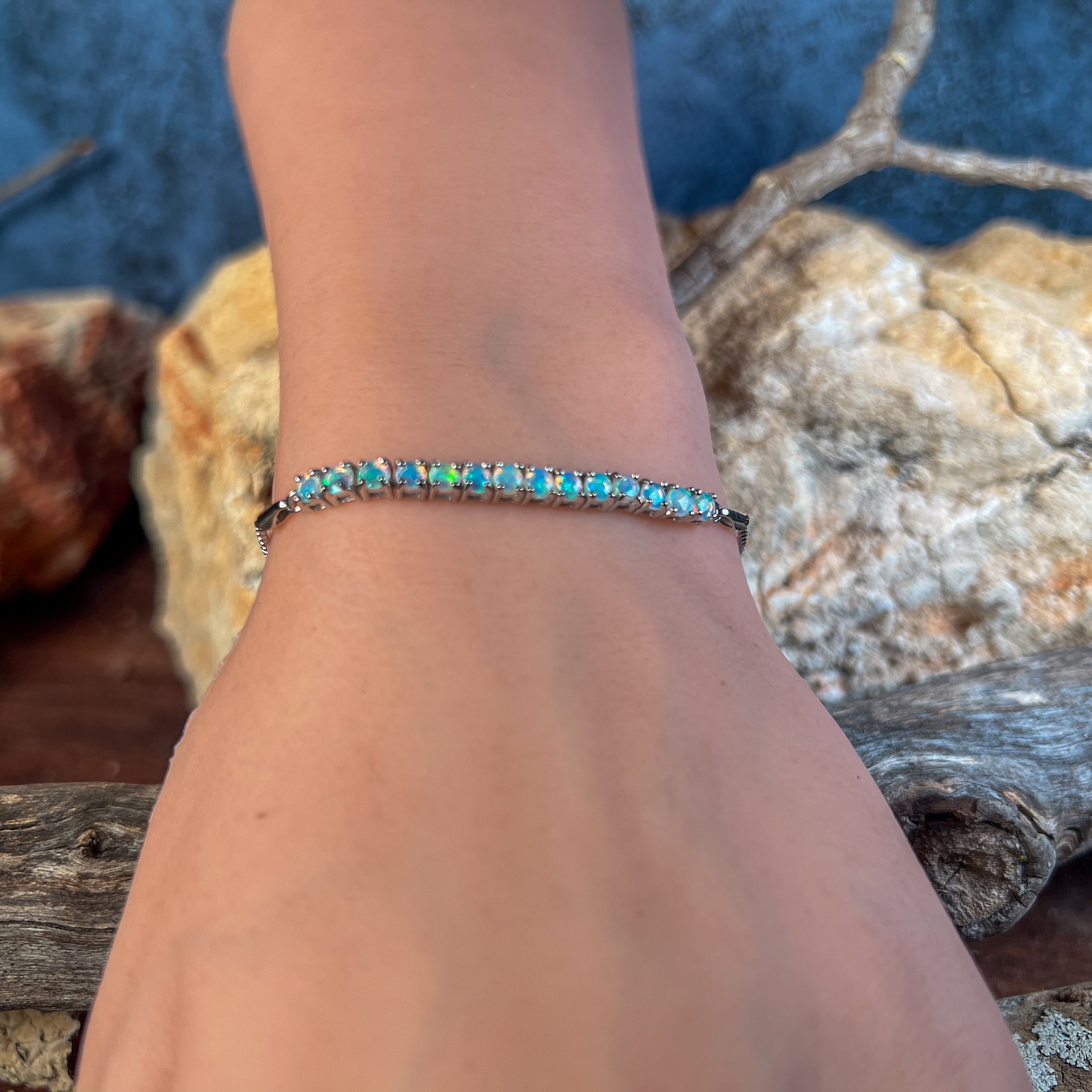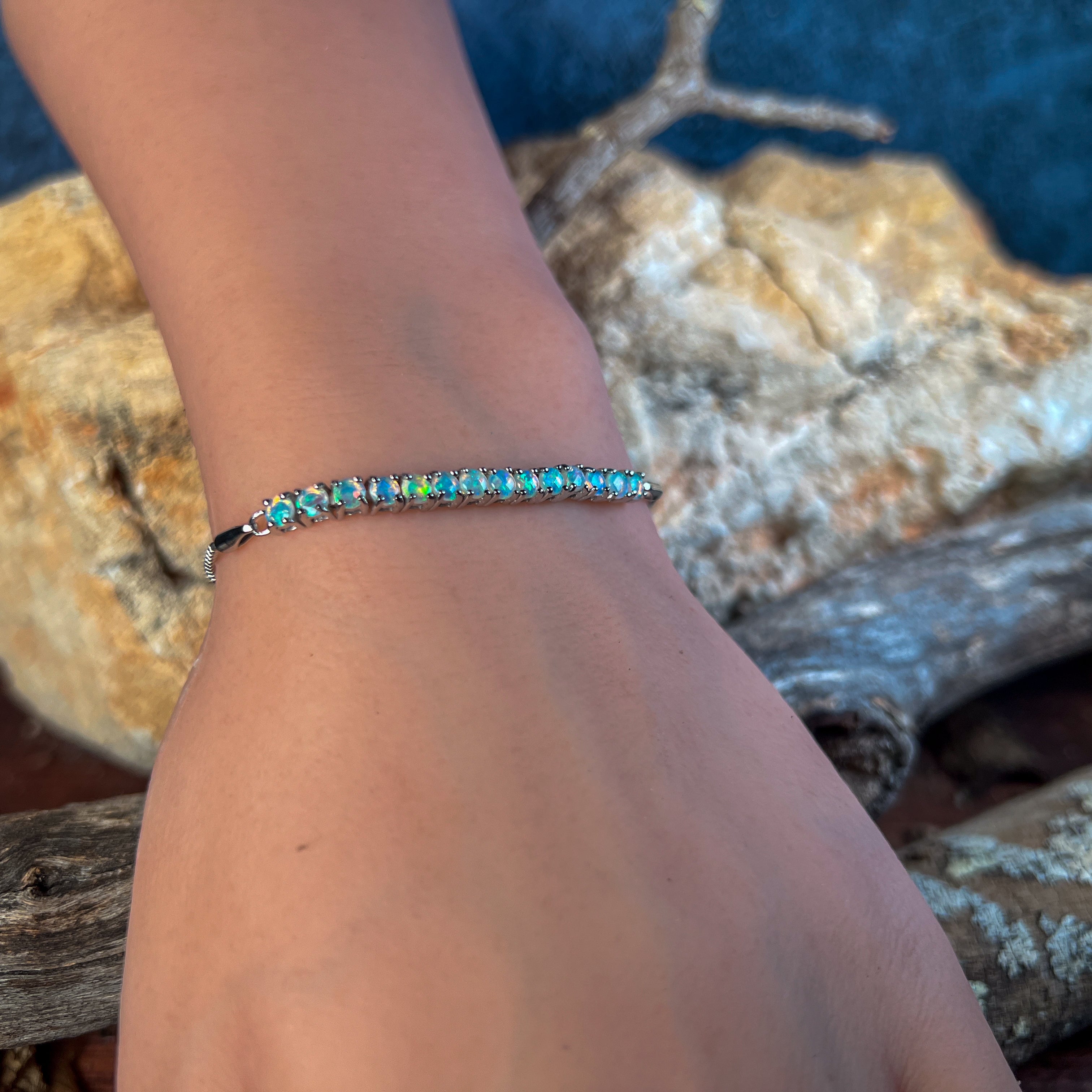 Sterling Silver adjustable Opal 3.5mm tennis bracelet style