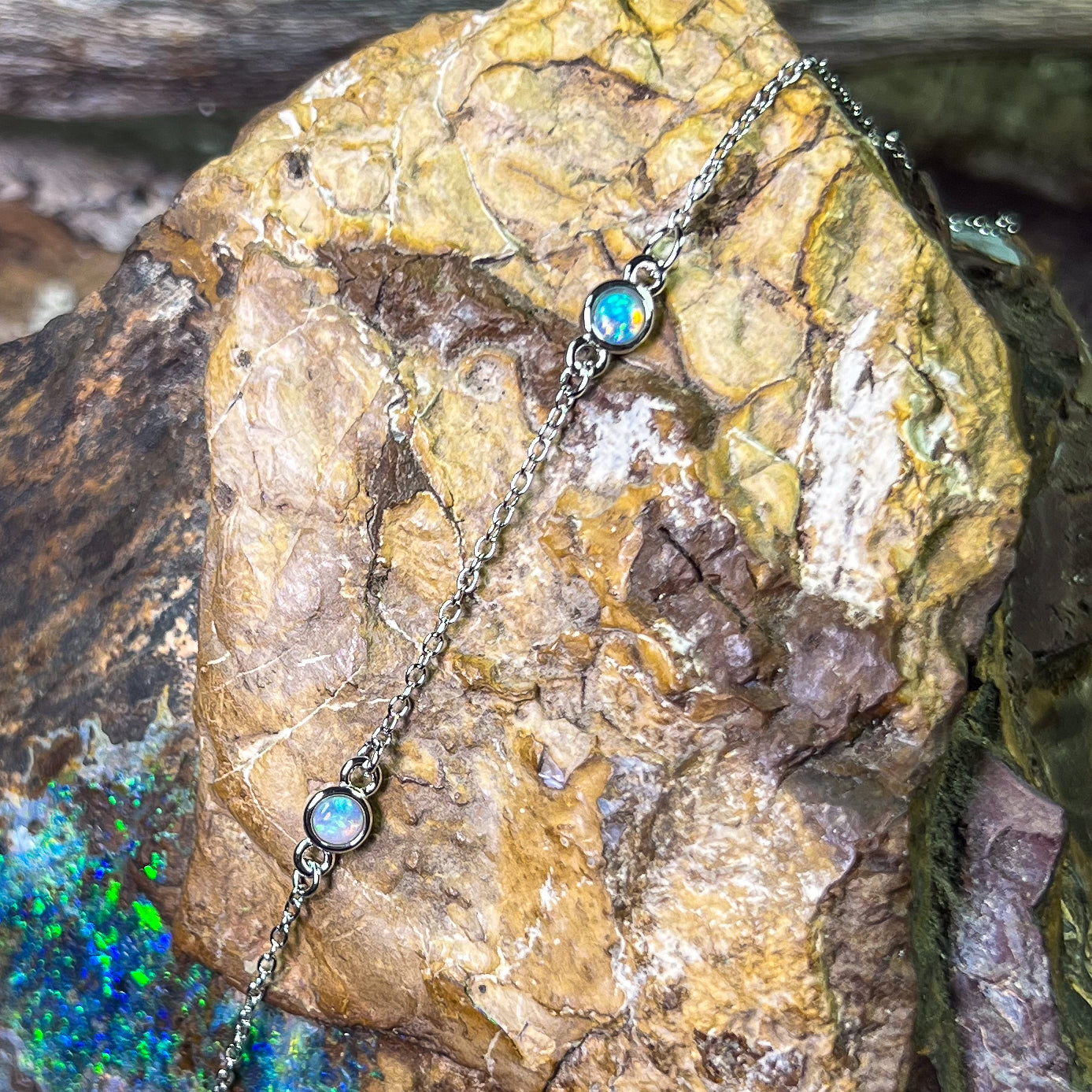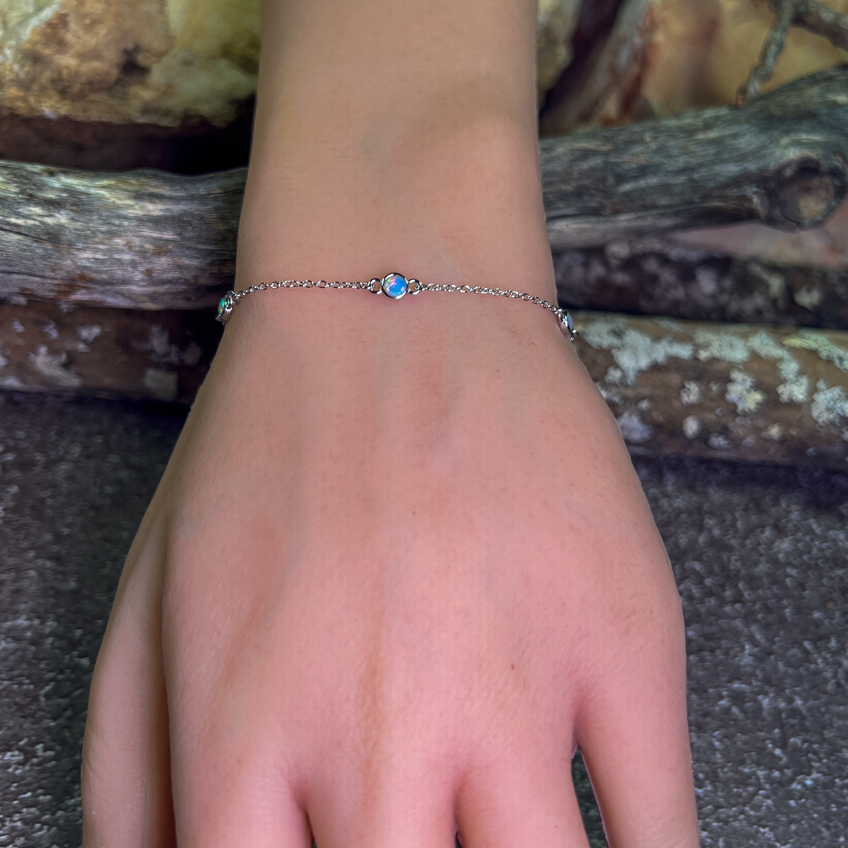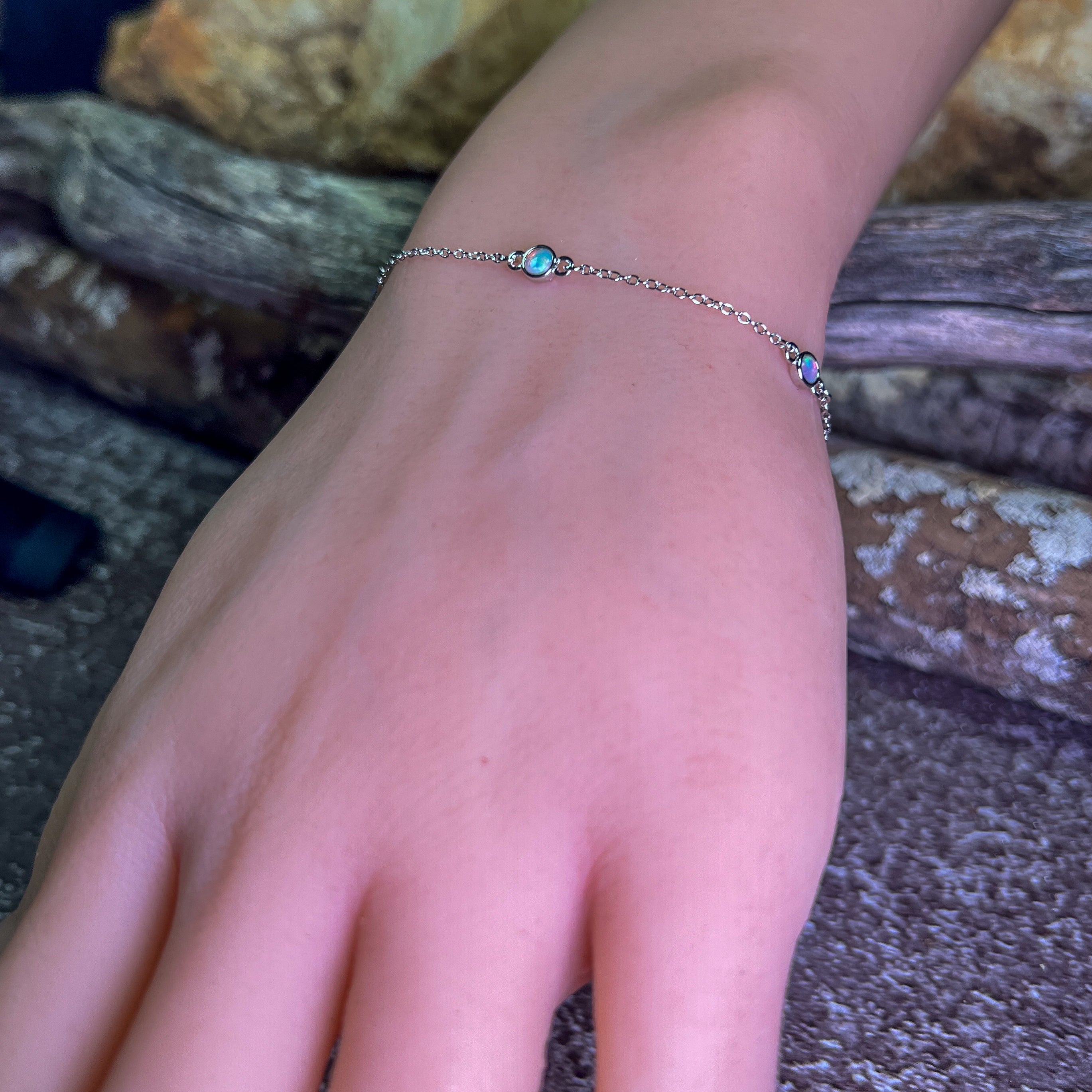 Sterling Silver minimalist 5 Crystal Opal 3.5mm bracelet