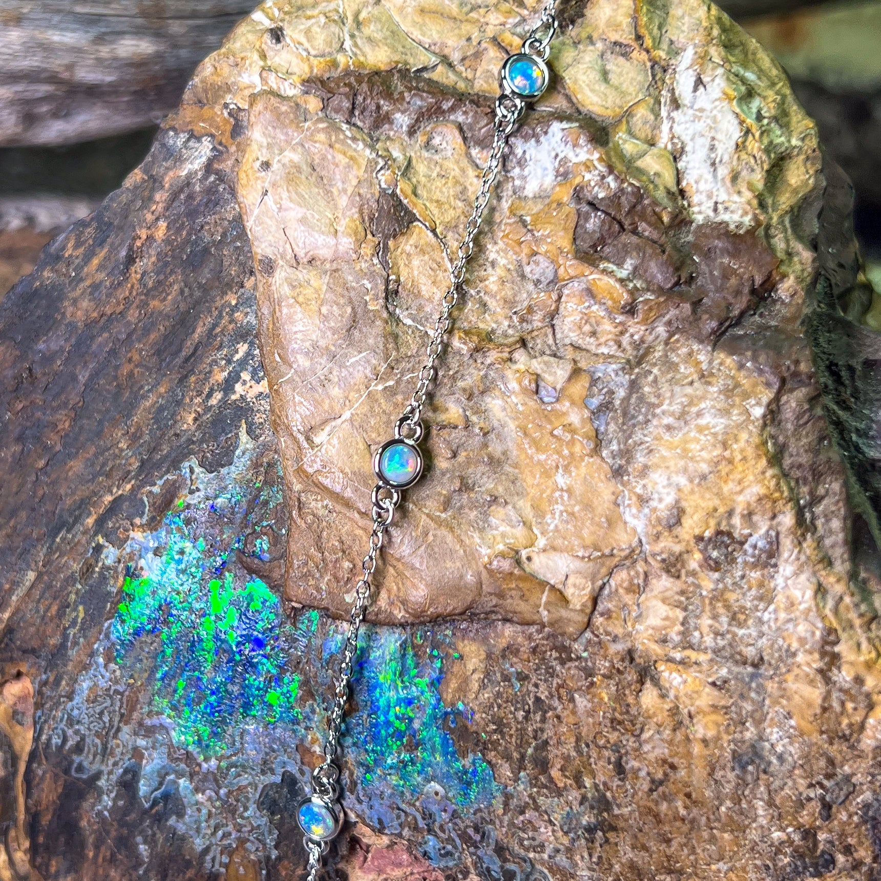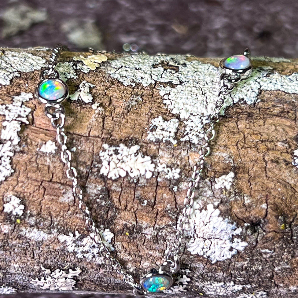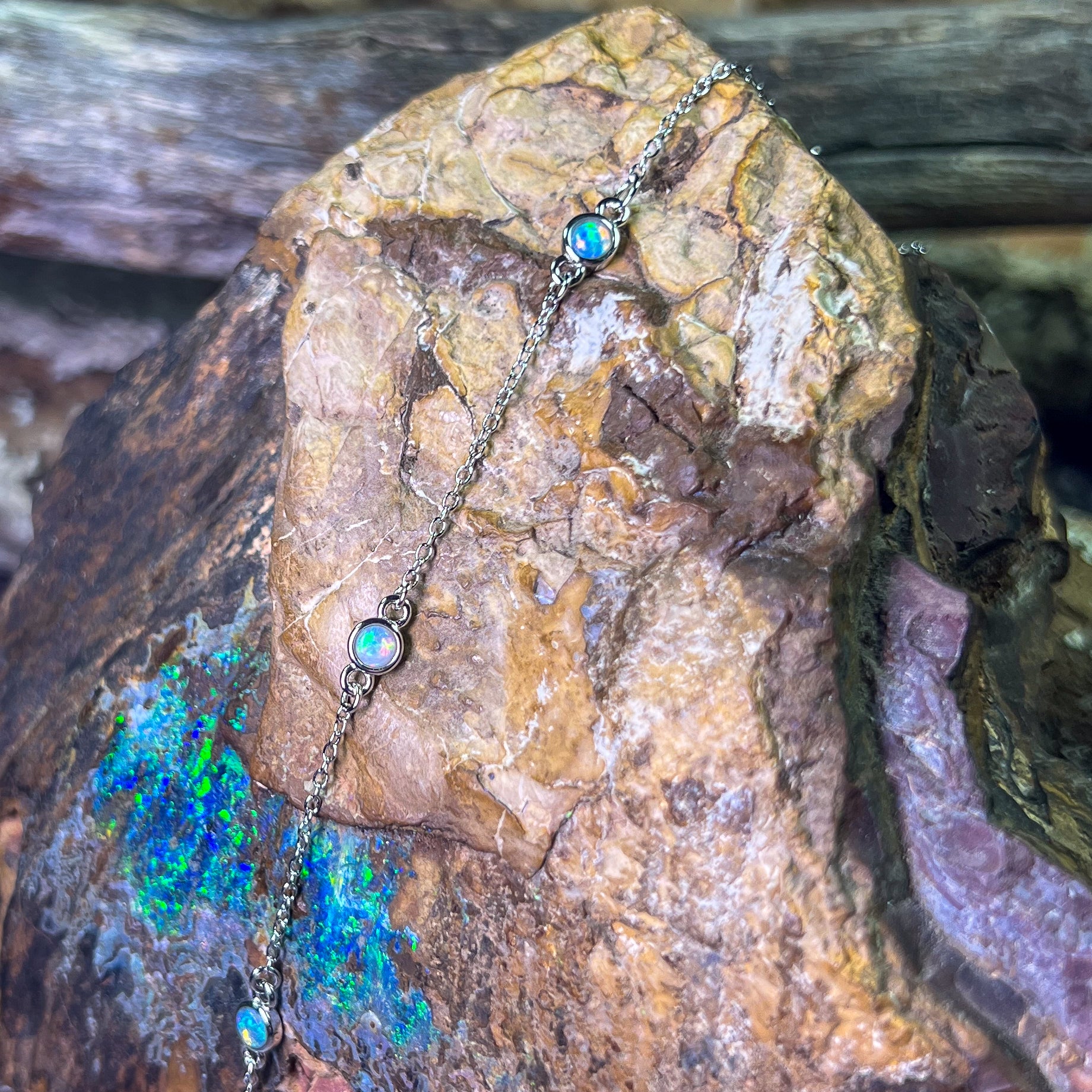 Sterling Silver minimalist 5 Crystal Opal 3.5mm bracelet