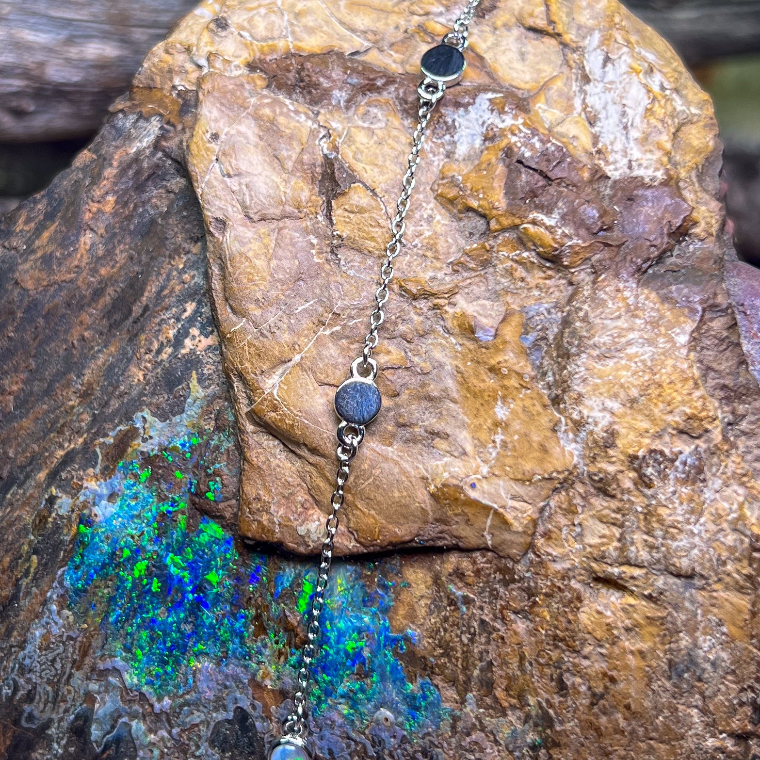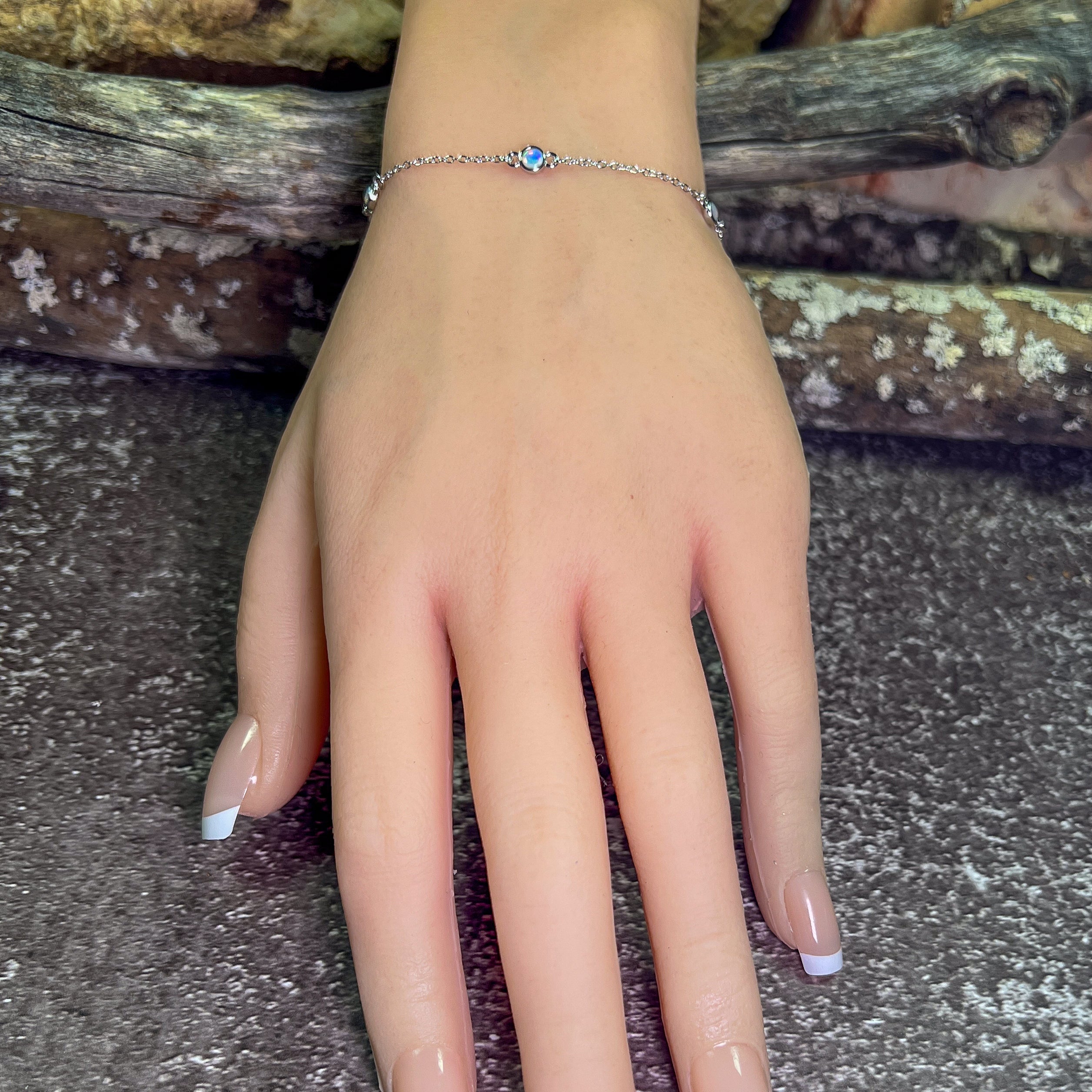 Get your wrist game on fleek with this Sterling Silver minimalist bracelet, adorned with 5 iridescent Crystal Opal stones measuring 3.5mm. Its dainty design is perfect for everyday wear, adding a touch of elegance and whimsy to any outfit. (And hello, perfect gift for your BFF!)