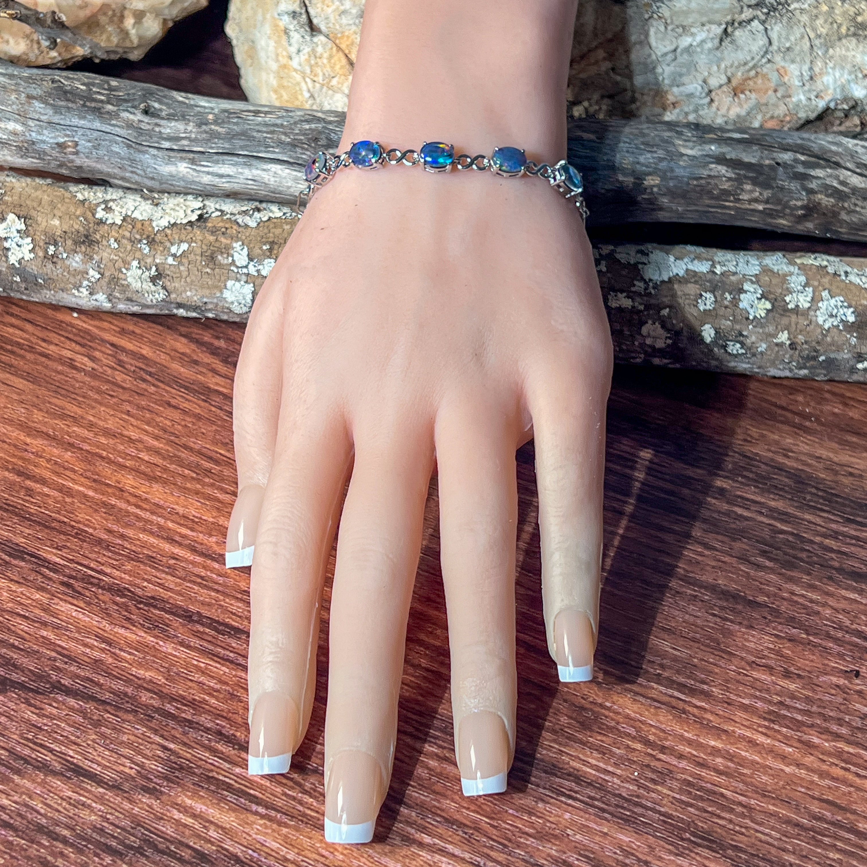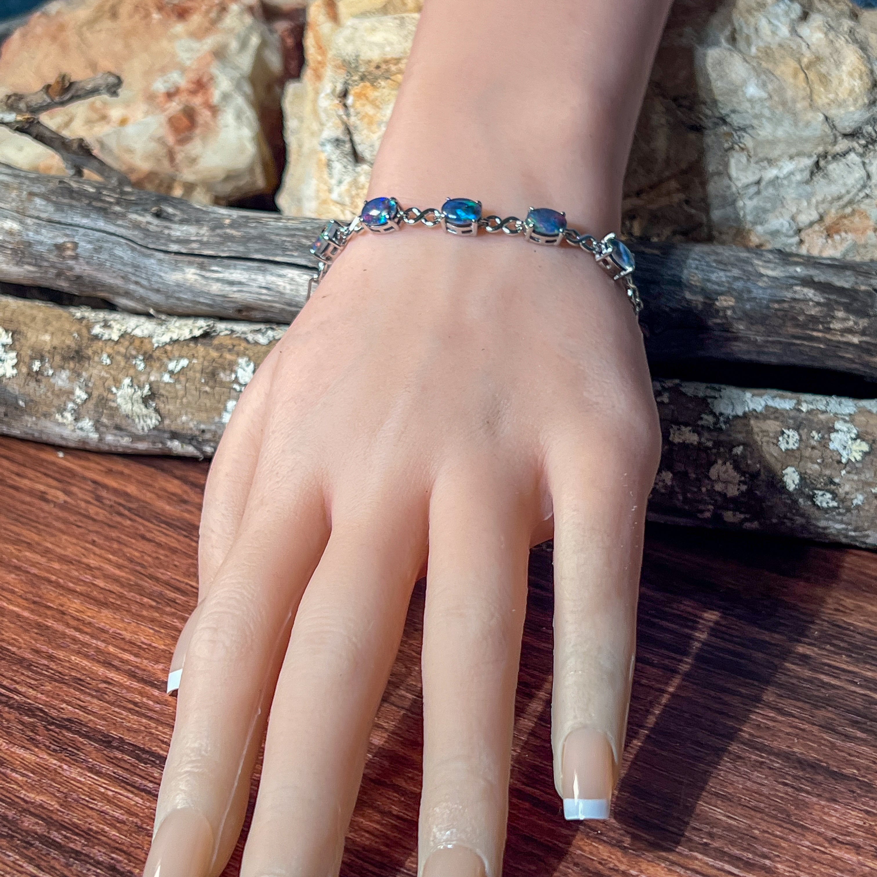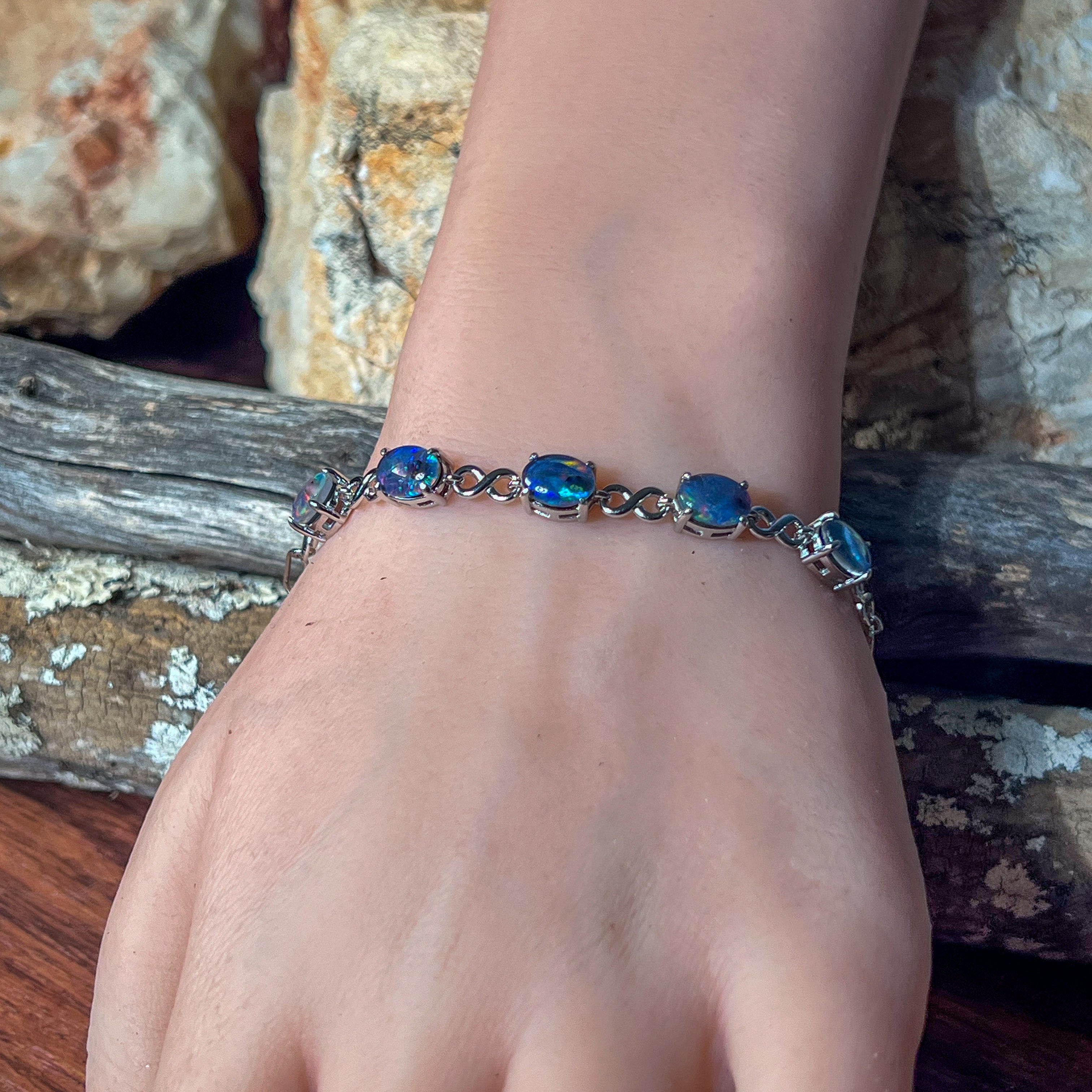 Sterling Silver Opal triplet 8x6mm infinity design bracelet