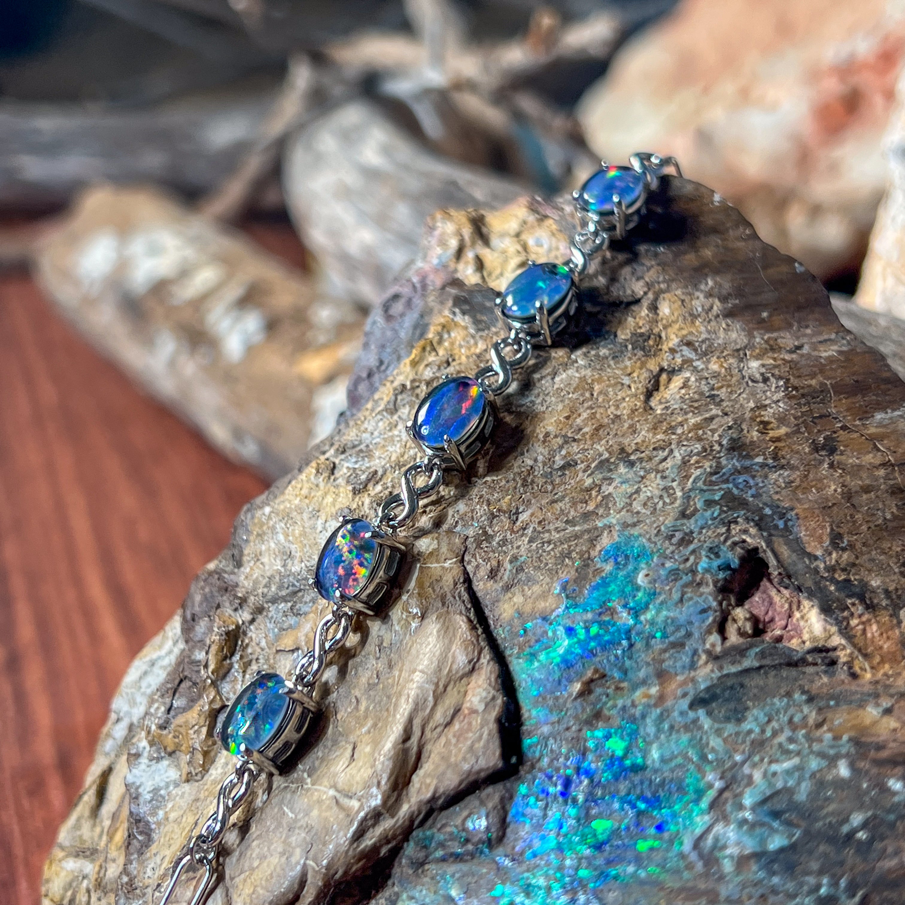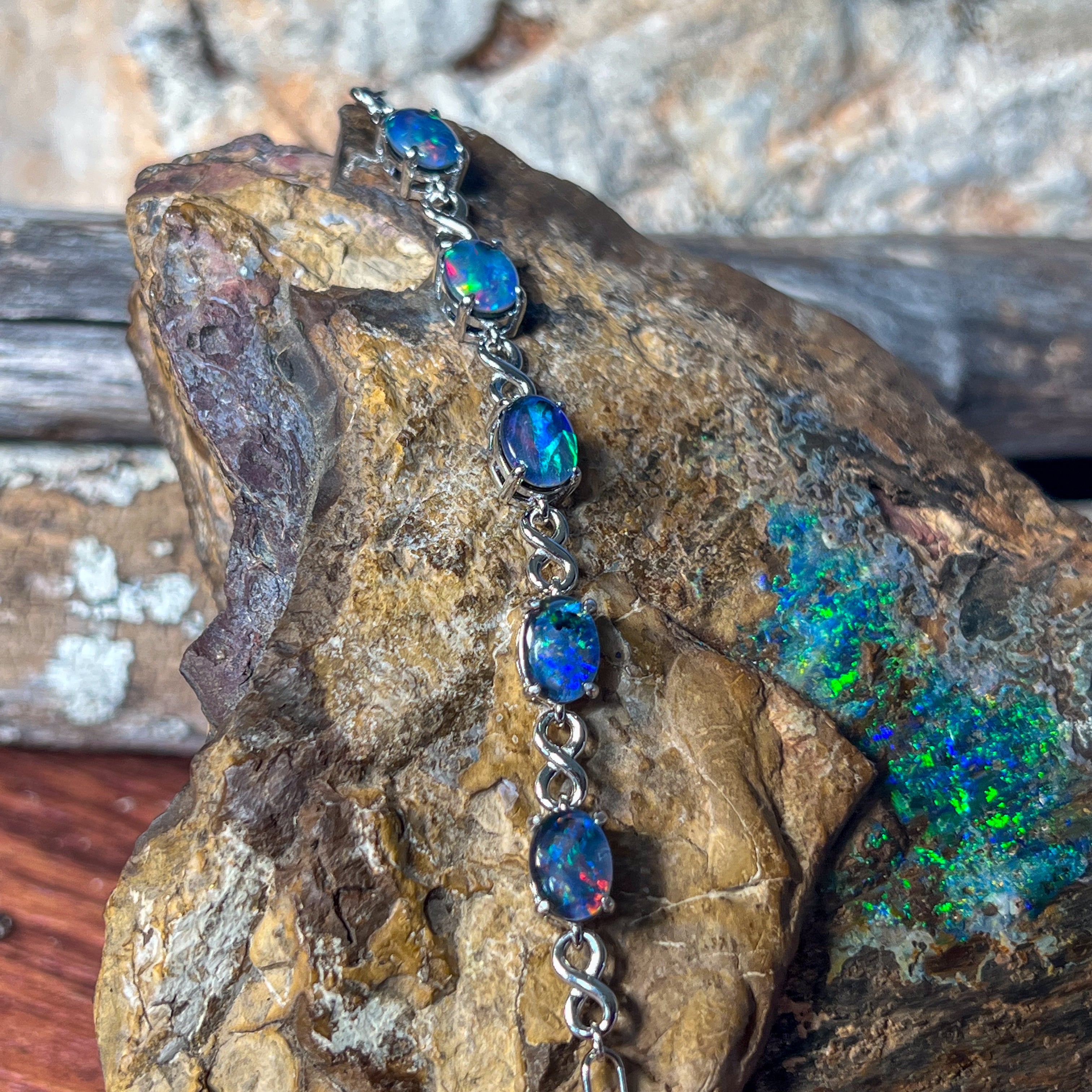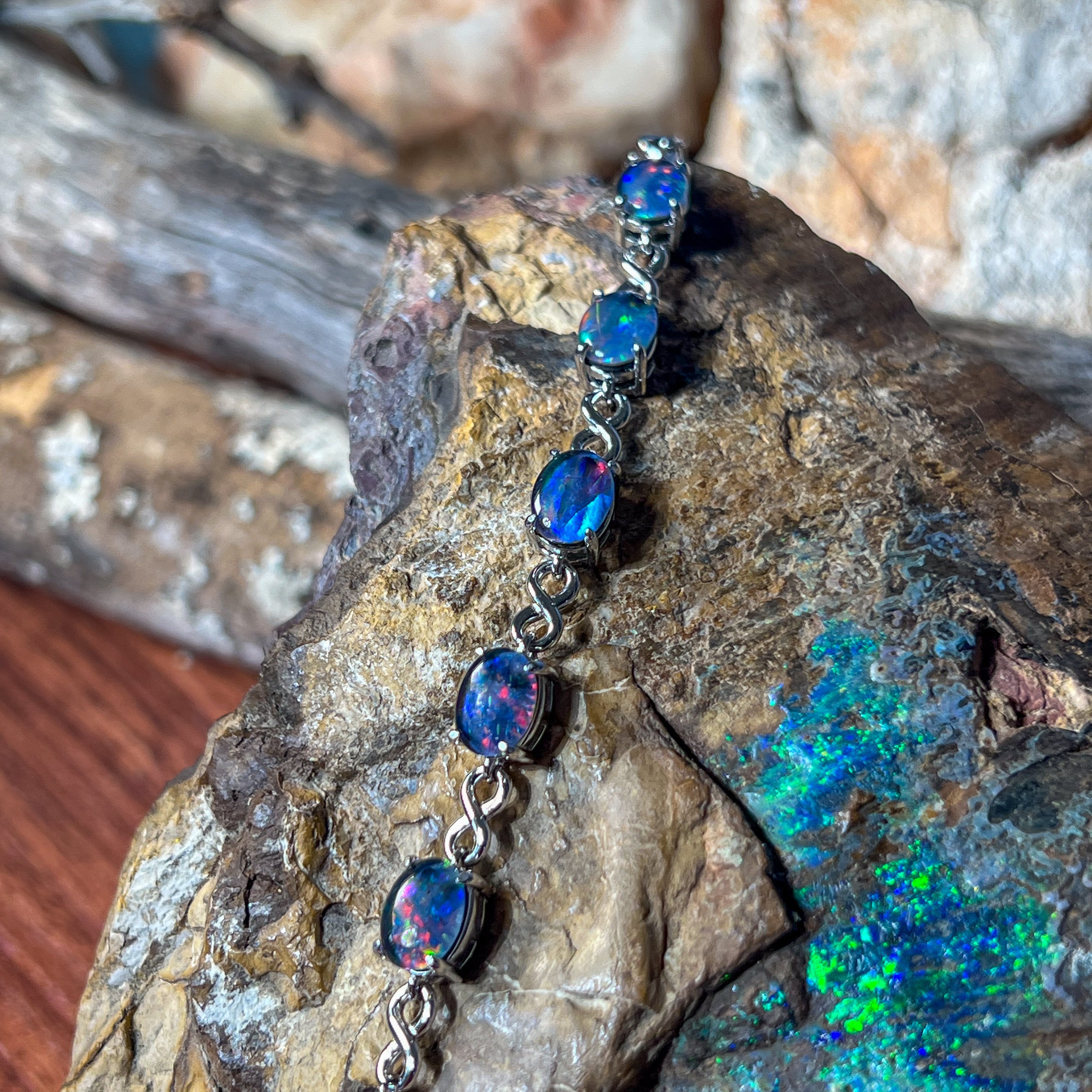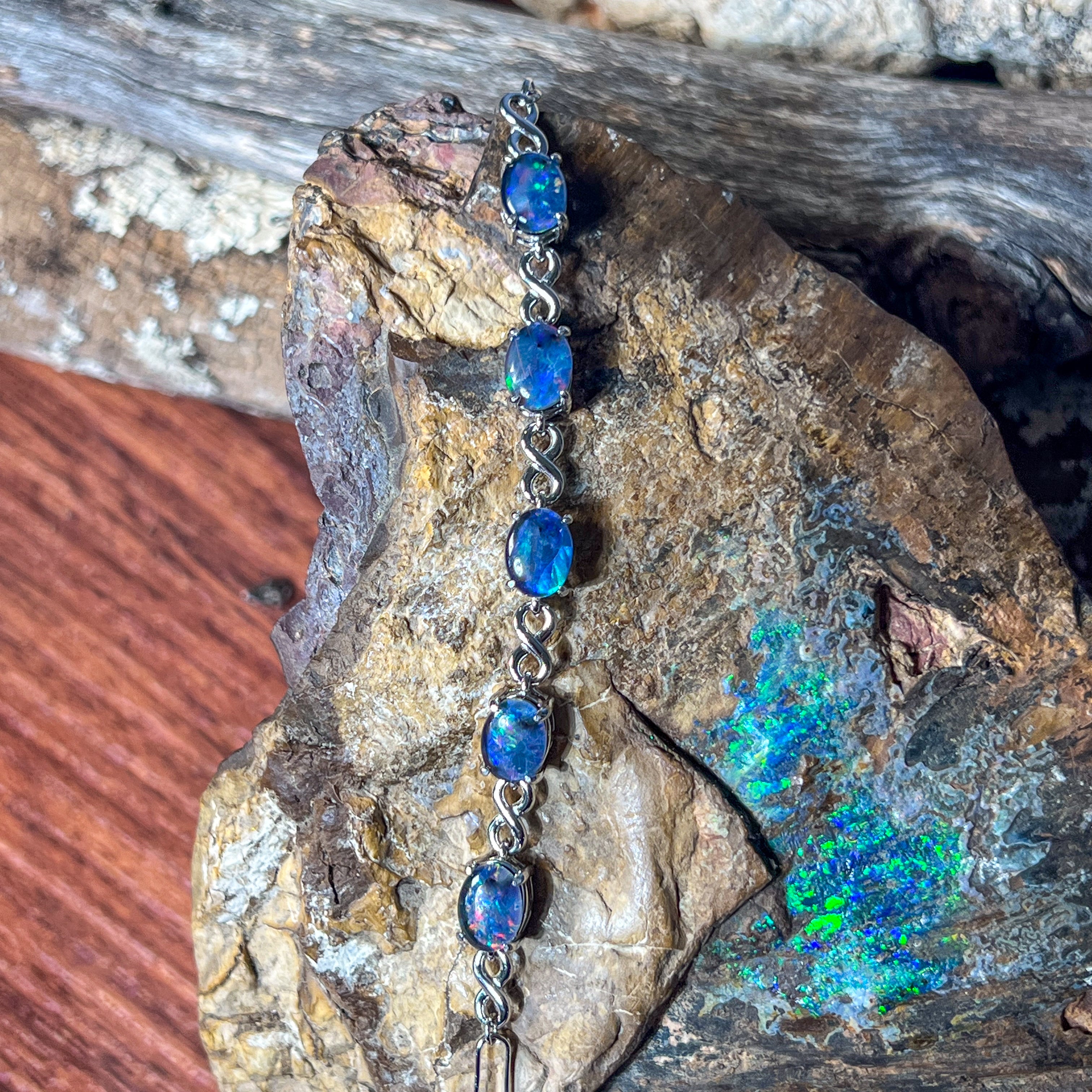 Sterling Silver Opal triplet 8x6mm infinity design bracelet