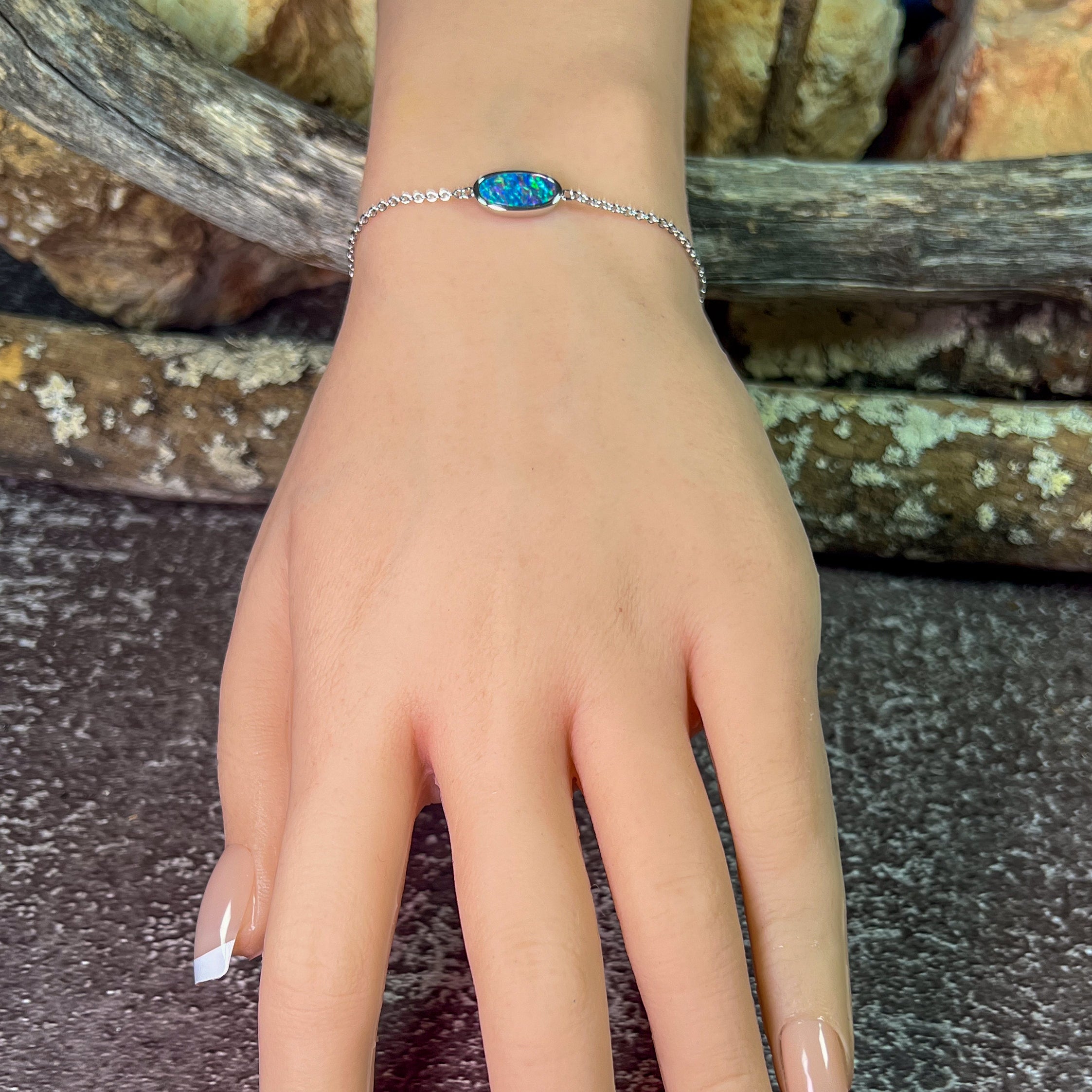 Experience the stunning beauty of our Sterling Silver Oval Opal doublet bracelet. Featuring a solitaire oval design, this 12x6mm bracelet is crafted with quality sterling silver for a luxurious touch. Adorn your wrist with the brilliance and elegance of this opal doublet piece.