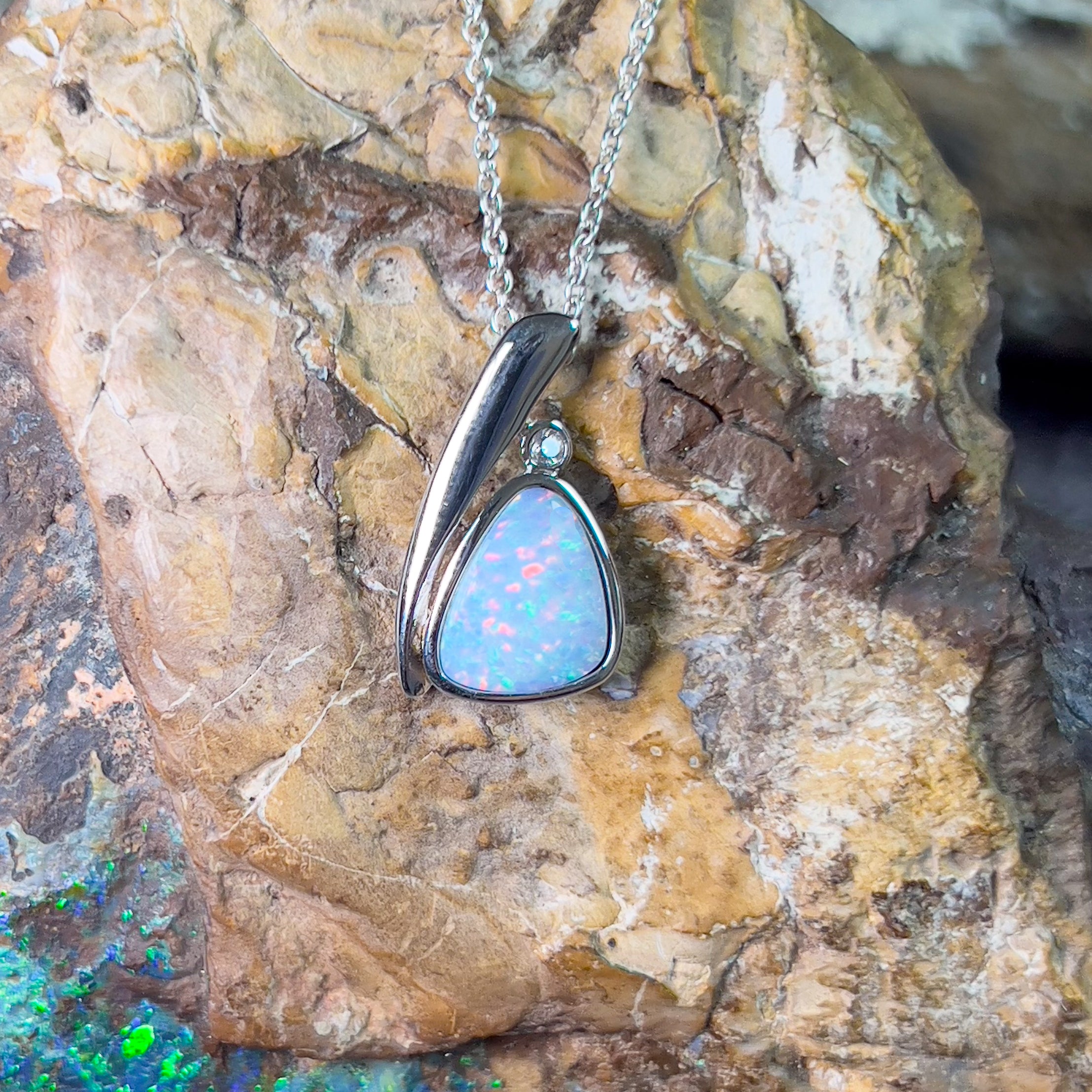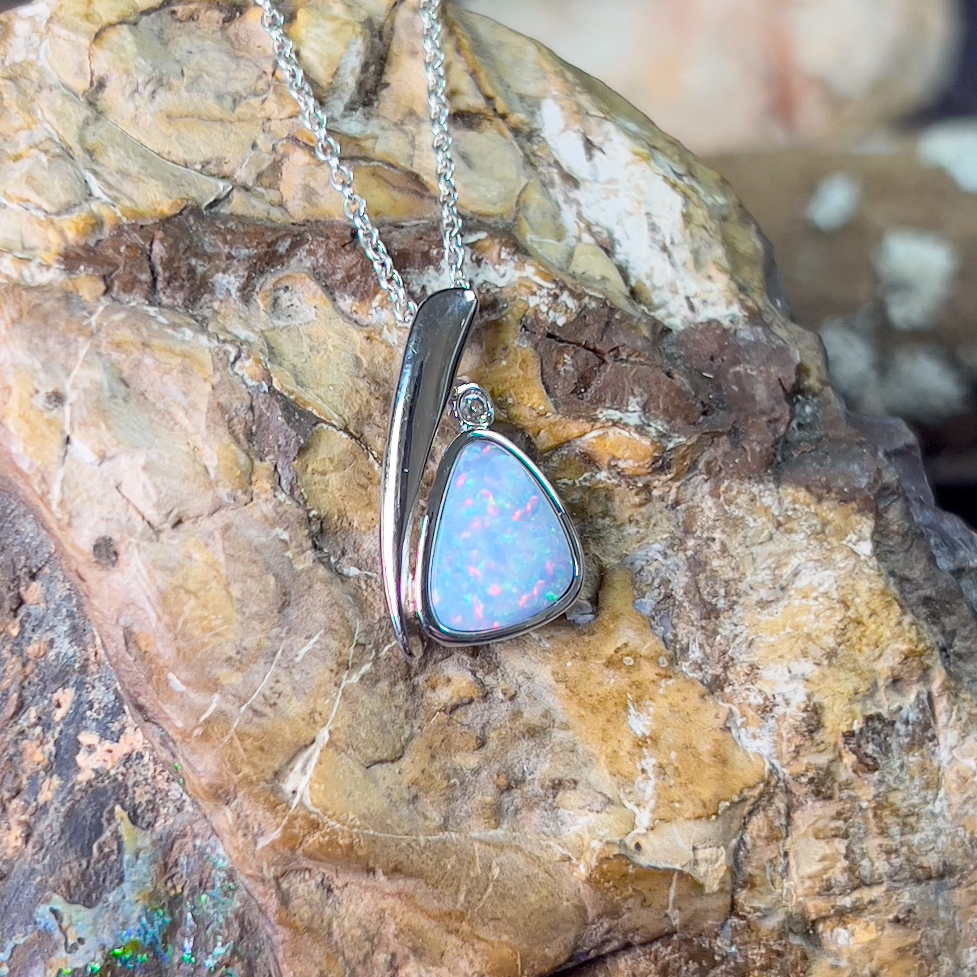 This stunning Sterling Silver Light Blue Opal doublet pendant features a beautiful light baby blue color that will add a touch of elegance to any outfit. The light blue hue of the pendant is mesmerizing and will draw attention to the wearer, making it a perfect addition to any jewelry collection.