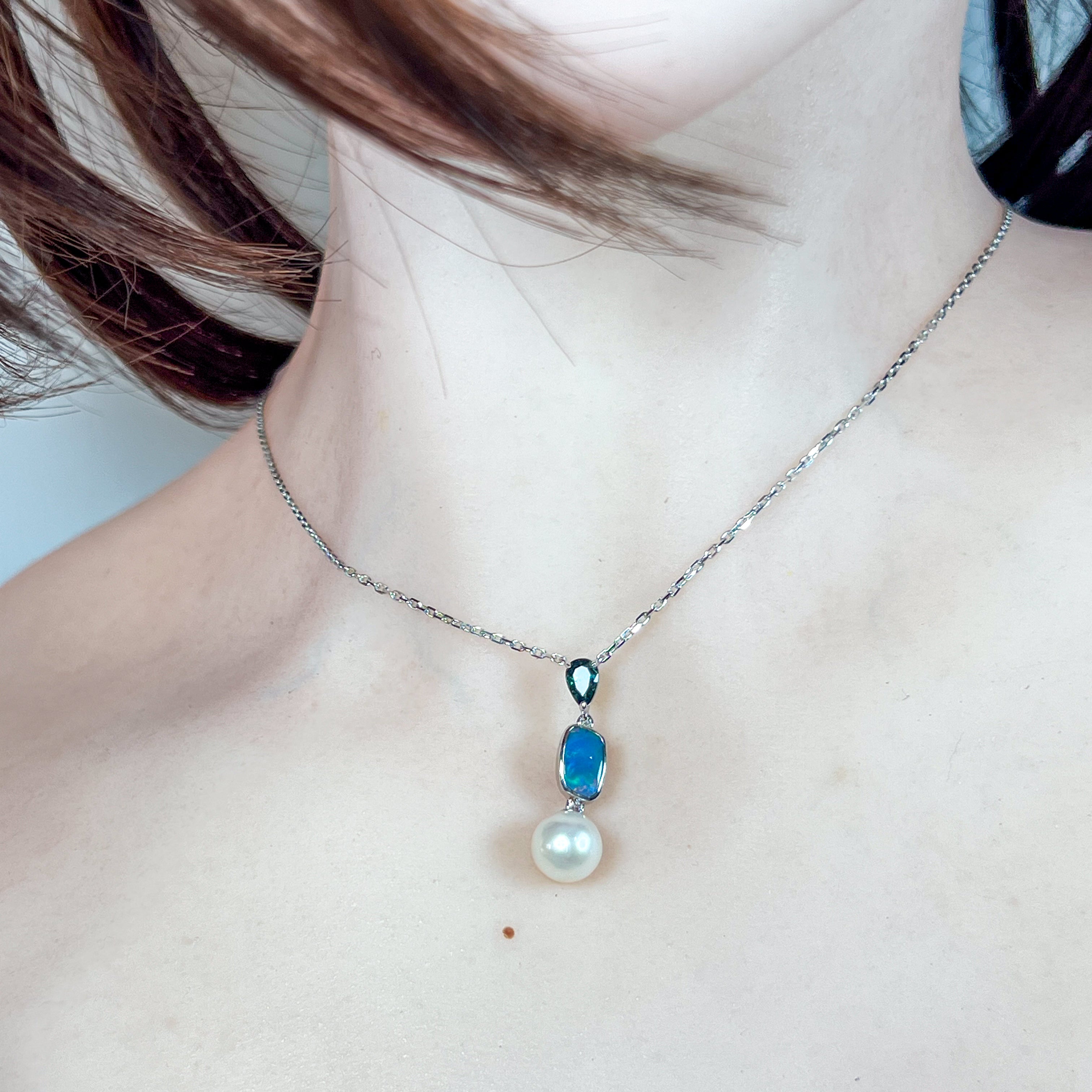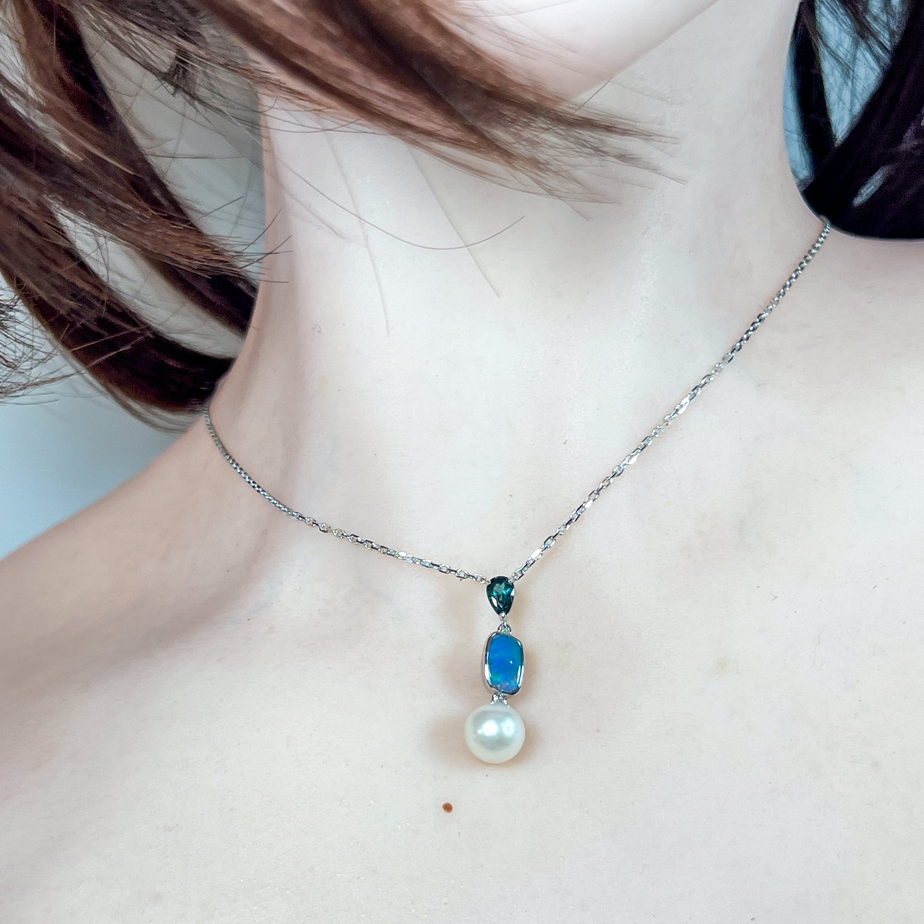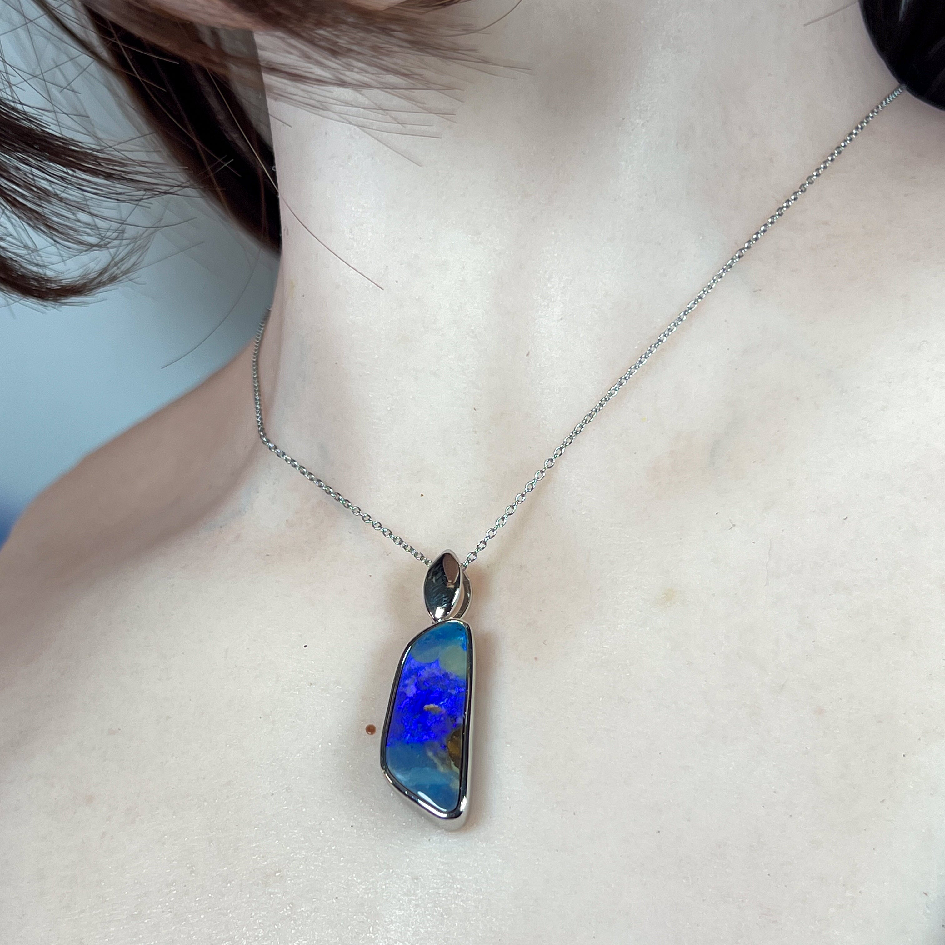 For example, an opal gold necklace is an excellent choice to highlight your neckline. If you have a high neckline, choose an opal gold necklace with a long pendant, such as Masterpiece Jewellery's 18-KT White Gold Pendant with Boulder Opal and Diamonds.