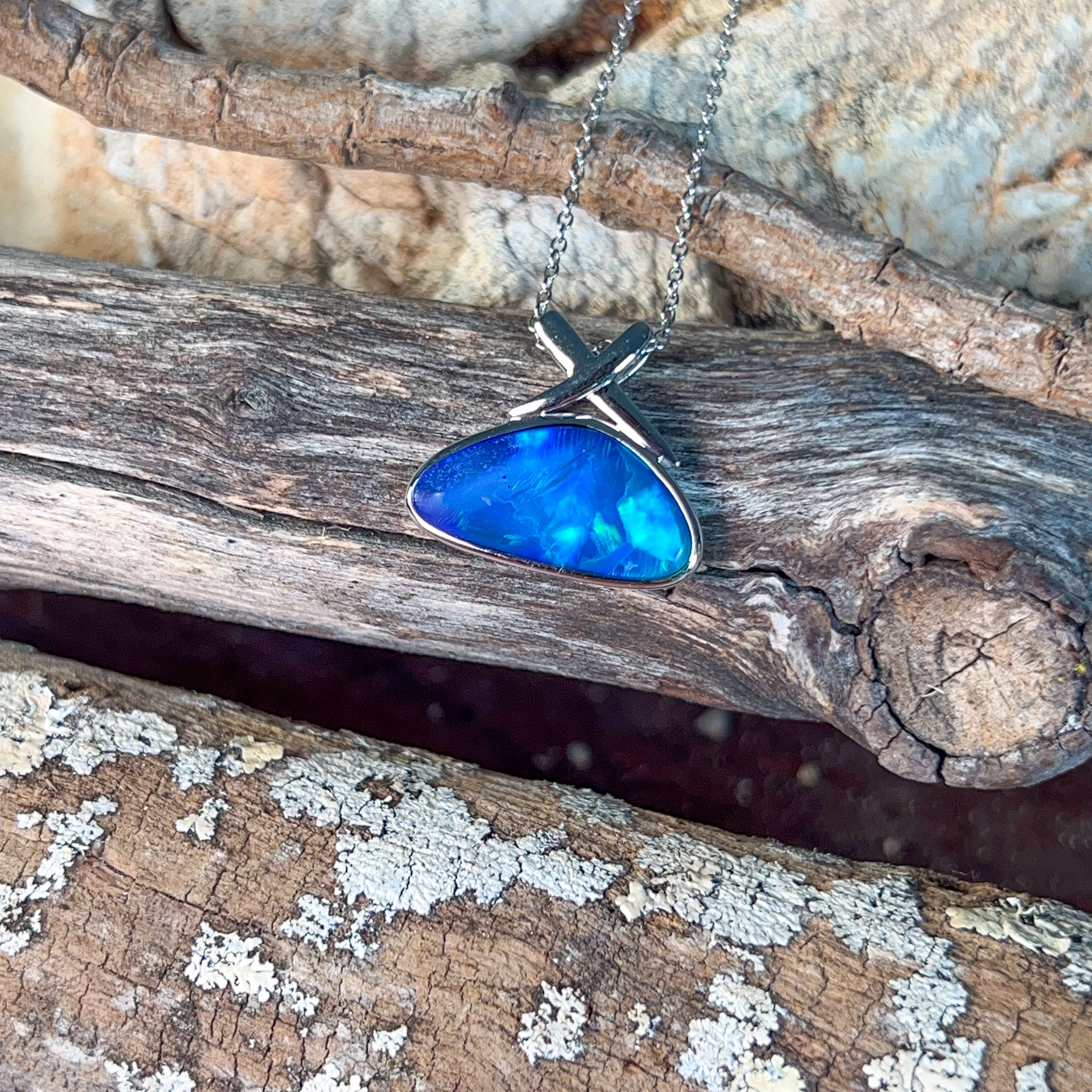 14kt White Gold Blue Green Opal doublet 4.45ct Pendant